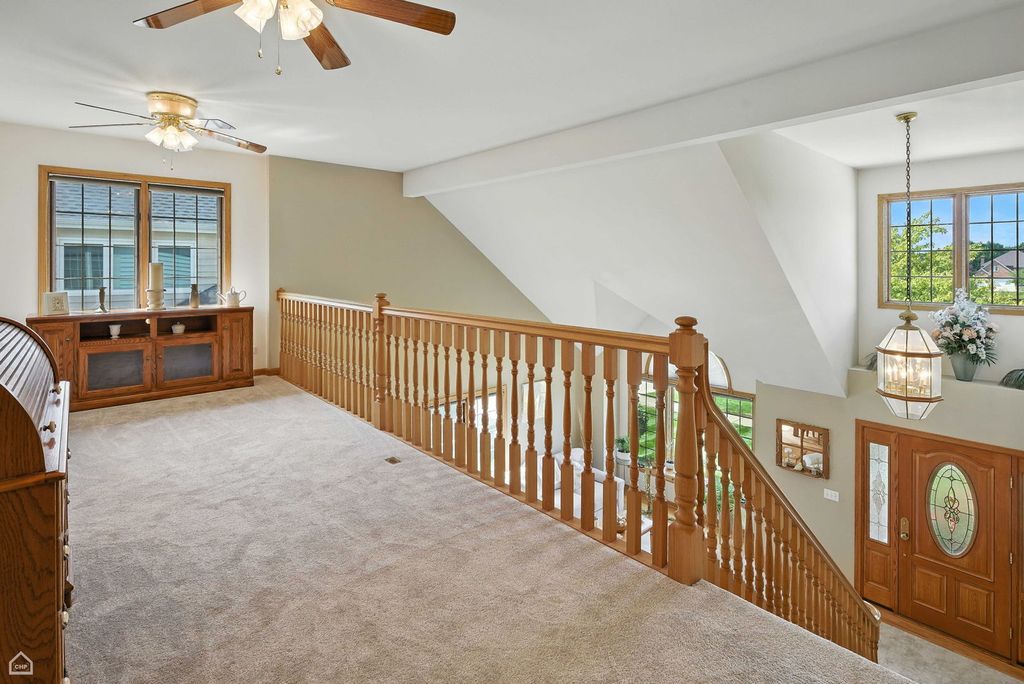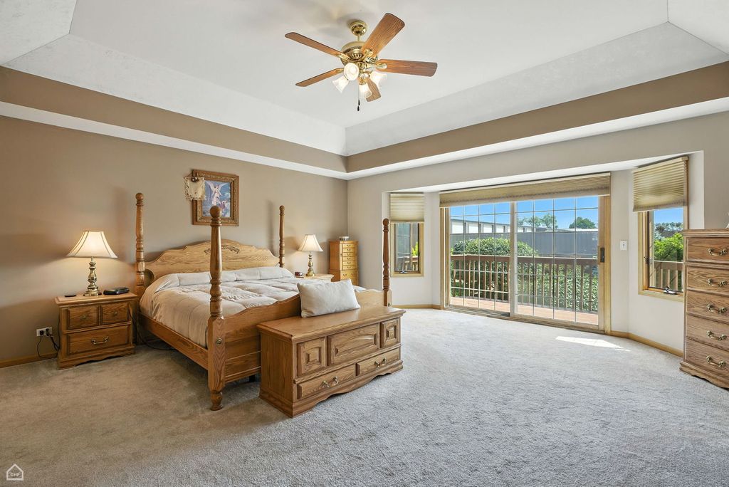 Waterfront home combines a classic feel with modern luxury and gorgeous views. Perfectly maintained home sits on beautifully manicured lot allowing for opportunities inside and out. Close to downtown Roselle, MD-W Metra, restaurants, shopping, schools and more. This remarkable home features a wide open and upgraded kitchen across from a spacious and bright family room with Valor fireplace. The main floor contains the 5th bedroom/office, new carpeting throughout, tall bright windows and a perfect space to host, work or relax. 4 bedrooms branch off the upstairs foyer/loft area with 2 bedrooms boasting a beautiful waterfront view. The master bedroom has elements of a spa with double sinks, vanity, jet tub, sky light, balcony and a remodeled walk in closet with cedar planked walls. The basement is huge and screams recreation. The basement hosts a billiard table, full bar, living room area and full bath while still allowing for ample storage. THE GARAGE! This fully finished and heated 3 car garage has charcoal ceramic floors, pine walls and lots of space. Lastly, the exterior offers full irrigation system, speaker system, security system, landscaping lighting, manicured yard, brick paver patio and privacy. This home will sell fast!