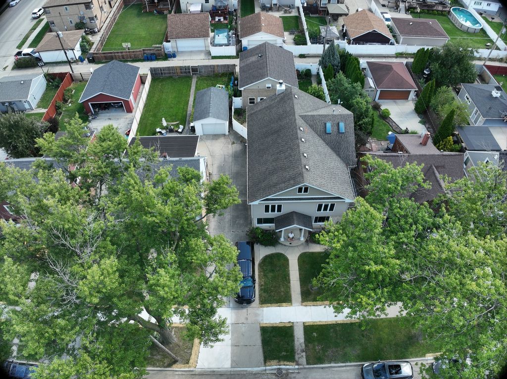 Welcome to this impressive two-story home, strategically located on an oversized lot (40x120) just blocks away from downtown! As you enter, you're welcomed by a charming foyer and a beautifully crafted oak staircase, setting an inviting tone for your exploration. The main level is designed for both comfort and functionality, featuring a spacious living room and a large dining room, perfect for hosting gatherings with family and friends. The open-concept kitchen highlights custom cabinets, quartz countertops, and stainless steel appliances, seamlessly connecting to the great room, which includes a cozy fireplace. The family room boasts large windows that provide a lovely view of the meticulously landscaped backyard, enhancing the overall ambiance. Step outside from the kitchen to the impressive 37x20 paved deck area, an ideal space for outdoor relaxation and entertaining while enjoying the beauty of the yard. On the second level, you'll find all four bedrooms and two full bathrooms, including a generously sized master bedroom that features an en-suite bathroom and his-and-hers walk-in closets. The finished basement adds a valuable touch, showcasing a sizable 23x21 recreation room, perfect for entertainment and leisure, along with a large laundry/utility room for ample storage. Additionally, the third level features a spacious, unfinished attic that offers endless possibilities for your remodeling ideas. This property further benefits from an oversized 2.5-car garage with 8-foot overhead doors and an additional attic for extra storage needs. For modern convenience, the home is equipped with smart technology lighting and two separate HVAC zoning systems, one for the upper level and another for the lower level. Situated in the highly sought-after Lyden School District, this home not only provides a comfortable living space but also offers an exceptional lifestyle, just moments away from the vibrant shops and restaurants of downtown Franklin Park. This property truly embodies the essence of fulfilling suburban living with easy access to the Chicago experience.