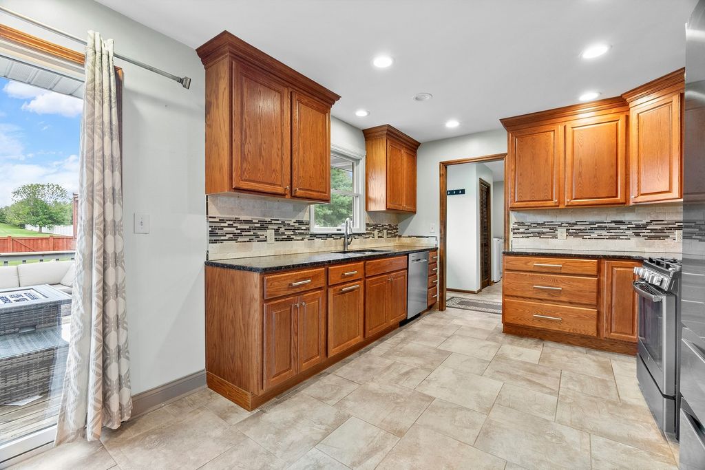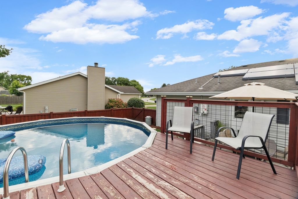 Get ready to fall in love! This highly updated and charming ranch home with a large yard overlooks an expansive open space, providing you the perfect non-obstructed backdrop! Once inside, the care and many updates stand out, starting with the family room that was recently painted. The large family room flows into the kitchen, making for easy entertainment access! Enjoy prepping and cooking in the many spaces this kitchen provides with an abundance of newer cabinetry with pull out drawers, huge island, and granite countertops. Continue down the hall and find the spacious master bedroom complete with a private fully remodeled bathroom! The 2 additional generously sized bedrooms sit next to another updated full bathroom! Large laundry room is conveniently located near the kitchen and provides secondary access to the exterior, which will not disappoint! Fully fenced yard with several areas to entertain, along with a newer HEATED pool and lounging deck to relax and enjoy the summer days. 2 car garage with cabinetry. Located on a quiet tree tree-lined street! Award-winning school districts. Truly move-in ready!