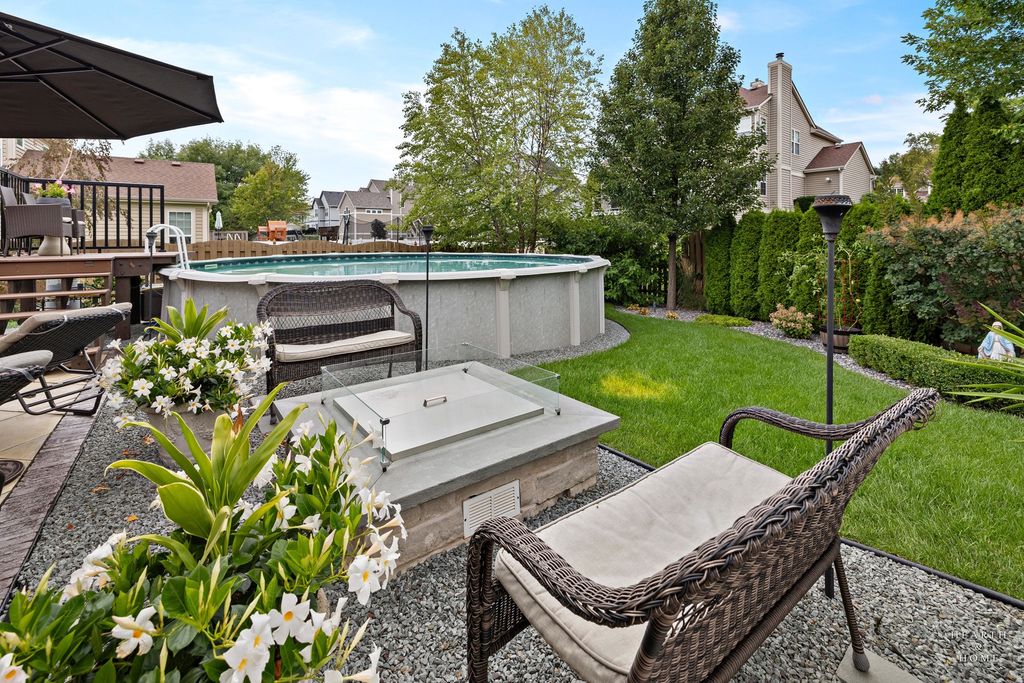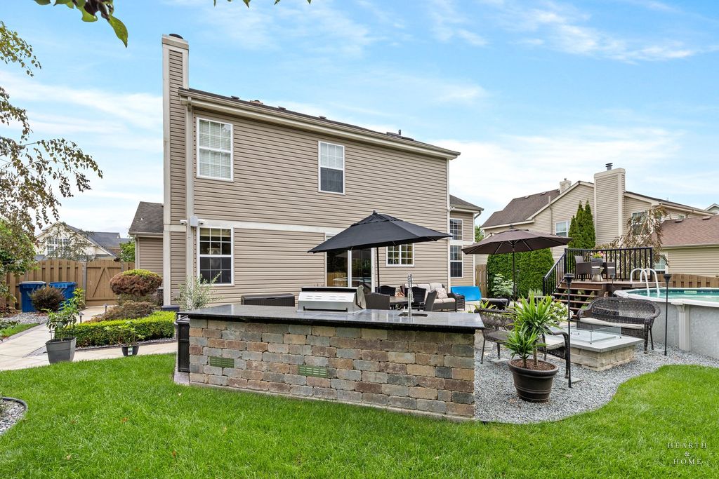 This home doesn't whisper luxury-it screams it. Step inside and get hit with cathedral ceilings, sleek recessed lighting, and floors laid in porcelain and granite that are as tough as they are beautiful. The kitchen? A chef's playground. Jenn-Air stovetop and oven, Viking microwave, granite counters, custom backsplash, and a built-in wine fridge-it's not just cooking, it's a lifestyle. Kick back by the gas fireplace or know your castle is locked down tight with a full security system. Then step outside, where the real party begins: a travertine patio, a brick-laid outdoor kitchen with grill and wine fridge, and gas lines running to your grill and fire pit so you never run out of fire or flavor. The private backyard is wrapped in mature landscaping, while the above-ground pool brings the summer vibes all season long. And the kicker? You're just one block from the elementary school. Convenience meets pure high end luxury. This isn't just a home-it's a statement.