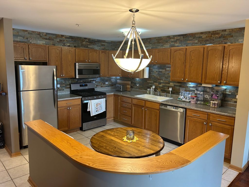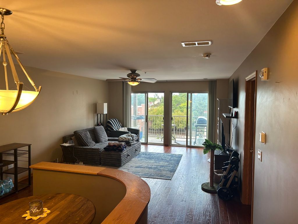 FANTASTIC OPPORTUNITY TO OWN A BEAUTIFUL UPDATED MOVE IN READY UNIT IN DOWNTOWN ROSELLE! HUGE KITCHEN FEATURING NEWER STAINLESS STEEL APPLIANCES, GRANITE COUNTERTOPS & CUSTOM TILE BACKSPLASH. GLEAMING HEATED HARDWOOD FLOORING THROUGHOUT THE ENTIRE UNIT. GIGANTIC LIVING ROOM DINING ROOM COMBINATION WITH AWESOME VIEWS FROM YOUR FOURTH FLOOR BALCONY. LARGE BEDROOM WITH WALK IN CLOSET & 6 PANEL DOORS THROUGHOUT. IN UNIT LAUNDRY ROOM WITH UTILITY SINK HOA INCLUDES HEAT, WATER, TRASH & PARKING, VERY RARE BONUS OF 2 HEATED GARAGE SPACES, SEPERATE STORAGE UNIT. RECENTLY REPLACED DISHWASHER & AC UNIT. ELEVATOR BUILDING. AFFORDABLE, MAINTENANCE FREE AND GREAT LOCATION, ALL ADDS UP TO THE PERFECT HOME WALK to TRAIN, COFFEE SHOP & DINING.