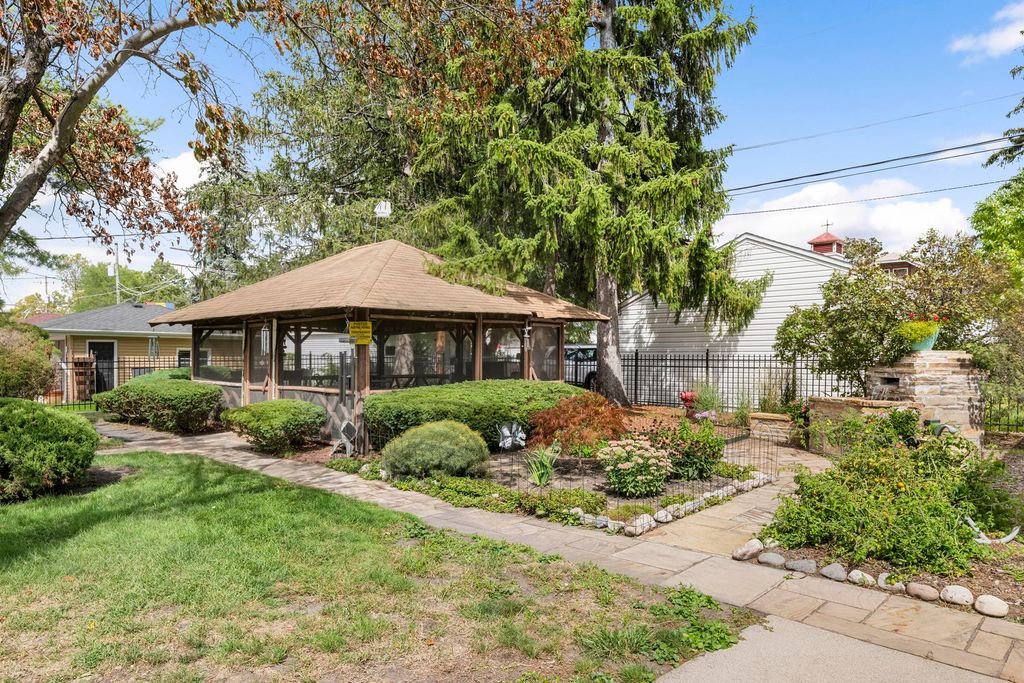 One of a kind Tutor Estate on Oversized 83 x180 DOUBLE LOT in Desirable Norwood Park pocket. Vintage charm meets true Chicago character in this 3 BDRM, 3.5 BA home (featuring 2025, 2024 remodels on Main Floor). Newly remodeled foyer leads to Jumbo Living Room with Wood Burning Fireplace and detached Dining. 1st floor Kitchen and Breakfast Nook lead to Rear Family Room/Den and French Door Walkout to newly stained Deck. 2nd floor is abundant with STORAGE and space, including separate Walk-In/Cedar Closets and potential for 4th bedroom conversion or creative Home Flex Space. Functioning ELEVATOR provides access to three levels of living including Sprawling Finished Basement with Wet Bar, Eat-in Kitchen, and MORE storage. The only thing more impressive than the 3500 square feet of indoor living space, is the fully gated backyard RETREAT. Complete with a massive side concrete driveway, 2 car brick garage, screened-in detached club house style patio - this backyard is a true wonder. Additional stand out details include the iconic green tile clay roof, and EXPANSIVE gardens with water features. Walking distance to EVERYTHING including Metra, parks, library, dining, and top rated Onahan Elementary School. This combination of location, convenience, privacy, and charm do not come along often.
