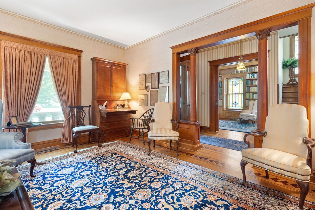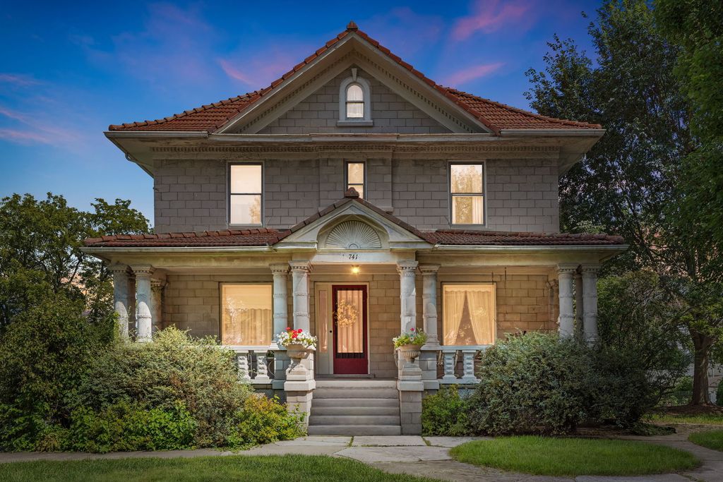 Welcome to one of Beecher's most distinctive properties - 741 Dunbar. This historical home was built in 1908 by Civil War veteran August Ehrhardt. It sits on six village lots (1 acre) with mature native trees, and custom landscaping. The four-story concrete block home features a red tile roof, with quality materials throughout. The four-story barn with shake-shingle roof is topped with a vintage weather vane (both have lightning rods). The detached studio has electricity, carpeting, and baseboard heat. During the time of the current owners, the foundation has been reinforced with steel beams, the concrete front porch has been replaced, and the original tile roof has been restored. Floor to ceiling book shelves have been installed in the library. The home has solid hardwood floors on both lower and upper floors. Three decorative borders surround the downstairs hardwood floors. Sliding, pocket doors are located in the dining room and library. All hardware on doors, windows, and cabinets is solid brass. The front and back stairs meet on a landing which has a large (56"x 65") stained glass window dedicated to the Grand Army of the Republic (GAR). Another stained-glass window is located in the library. It was installed in 1980 and replicates the original. The foyer and front hallway retains the original gas ceiling lights with Carmel glass have been electrified. The foyer's original mosaic floor has been restored, and the walls are covered with embossed leather. The dining room contains a large oak China cupboard with a plate glass mirror and south bay window. Four large bedrooms are located on the upper floor, each with large walk-in closets. The spacious hallway has a large closet with cedar lined drawers. The upstairs bathroom contains the original claw-and-ball foot ceramic bathtub, and the original sink and stool. The large carpeted office located in the basement features built-in book shelves, excellent lighting, and all hook-ups for computer, printer, etc. Available for sale for the first time in 50 years, what the current owners love most about the property. * History - Strong American and Beecher significance * Well Built - sound sturdy construction that embraces you in all weather. * Quiet part of town - Set back from the street with two corner lots * Trees/landscaping: Personally curated landscaping featuring young and older native trees.