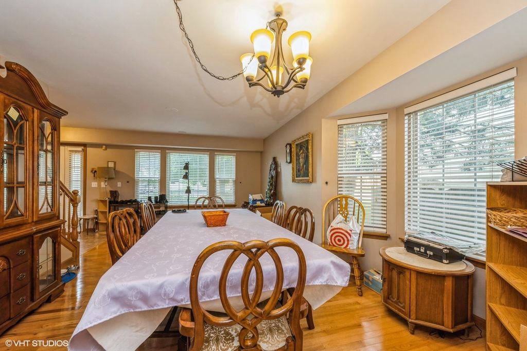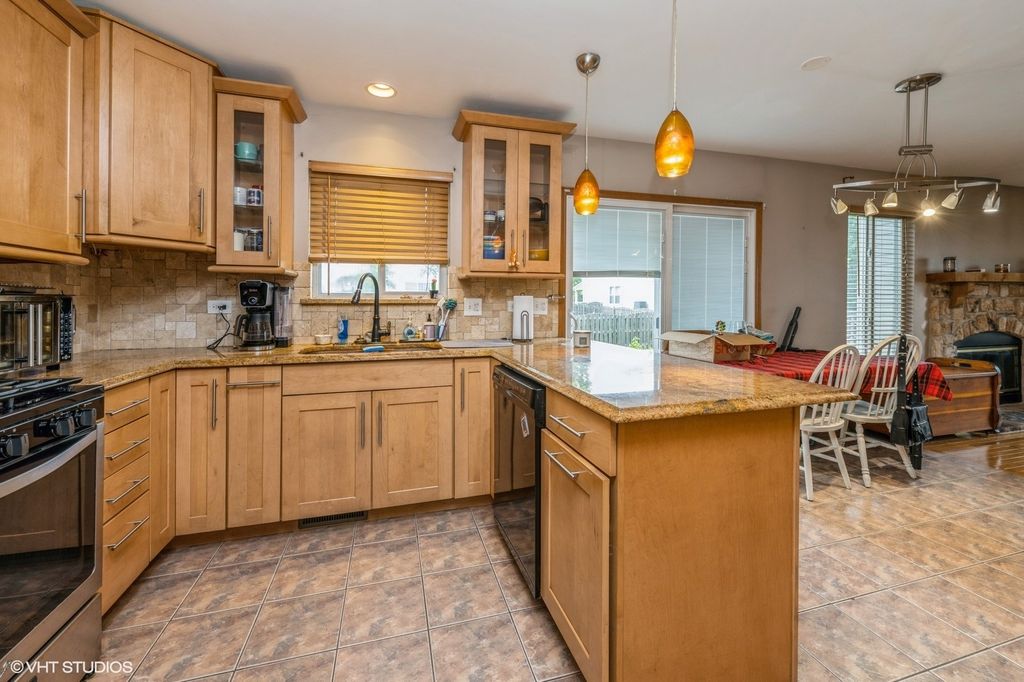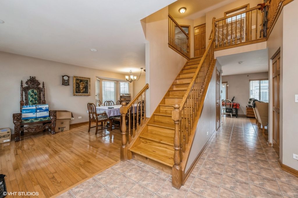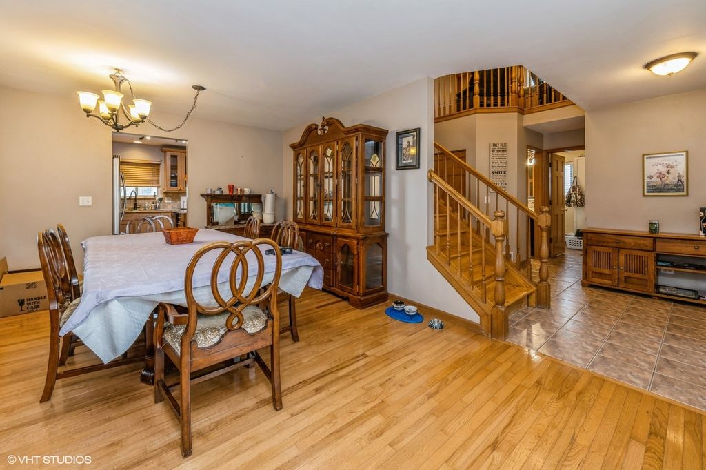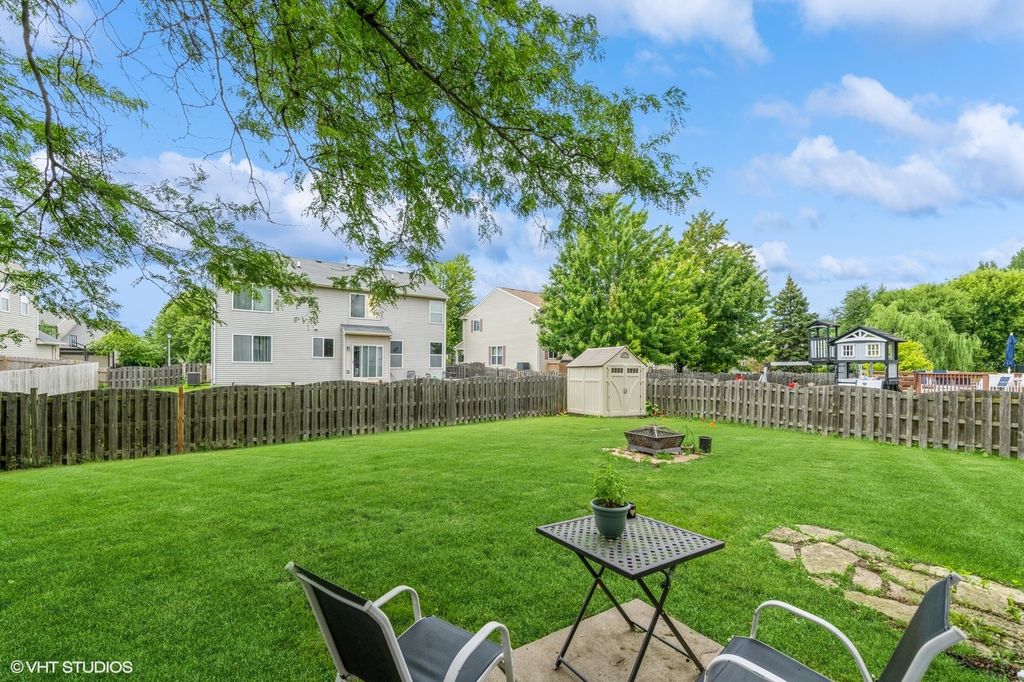 Located in Huntley's established Southwind neighborhood, 10036 Ashley Court offers solid living space in a community that helped launch Huntley's early residential growth. This two-story home sits close to everything: Northwestern Medicine's campus, health clubs, schools, and expressway access are all just minutes away. Inside, a generous foyer leads to an oak staircase and hardwood floors that run through the living and dining areas. The kitchen features maple cabinetry, solid surface counters, a mix of stainless and black appliances, and a wide breakfast bar with sliders to the backyard. The family room on the main level includes hardwood flooring and a natural stone accent wall. A first-floor laundry room adds convenience. Upstairs includes a large loft, easy to convert into a fourth bedroom plus two additional bedrooms and a hallway shared full bath. The master suite offers vaulted ceilings, a walk-in closet, and private full bath. The finished basement gives you a flexible layout with space for a guest room or office, a rec room, and another full bathroom. Recent updates include a new AC unit installed within the last two years and a full tear-off, first-layer roof replacement in 2015. The backyard features mature landscaping, a shed for storage, and plenty of green space. A practical home in a well-located Huntley subdivision. Ready for the next chapter!
