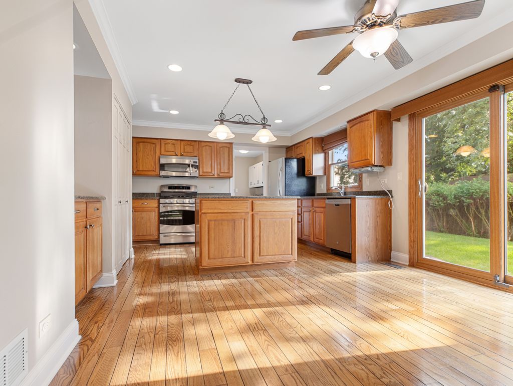 Welcome to this beautiful brick-front residence situated on a desirable corner lot. Featuring 4 spacious bedrooms and 3.5 baths, this home offers both comfort and space. The inviting family room boasts a wood-burning gas fireplace and gleaming wood floors that flow seamlessly into the kitchen, where you'll find stainless steel appliances, granite countertops, ample cabinetry and large pantry. The large primary suite includes an en suite bath with dual sinks, a walk-in closet, and plenty of natural light. Entertain with ease in the finished basement, complete with a wet bar, bonus room and an unfinished area for storage. Enjoy the outdoors with community amenities just steps away, including a playground, splash park, tennis courts, and a scenic walking path around the pond.