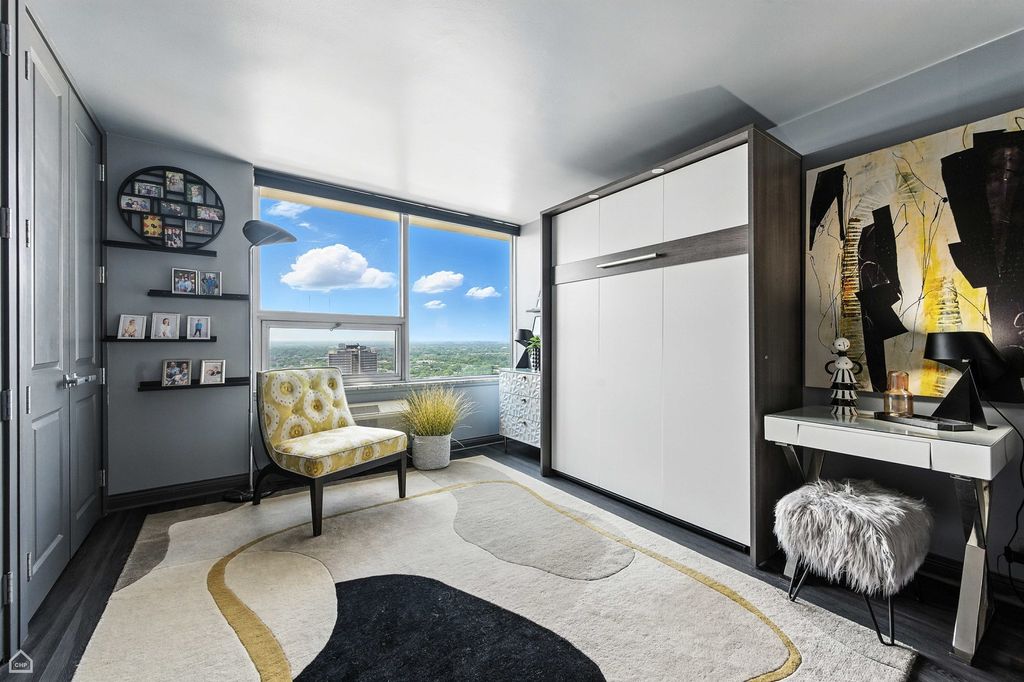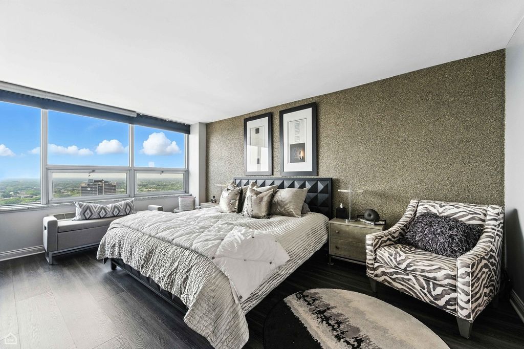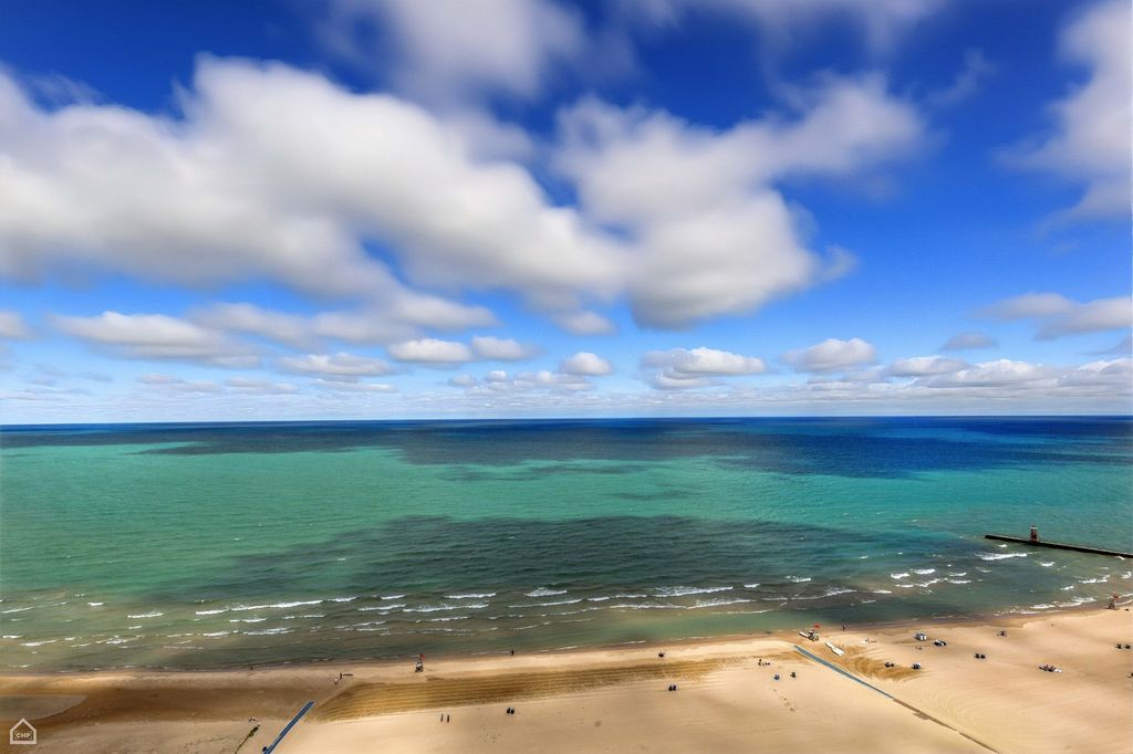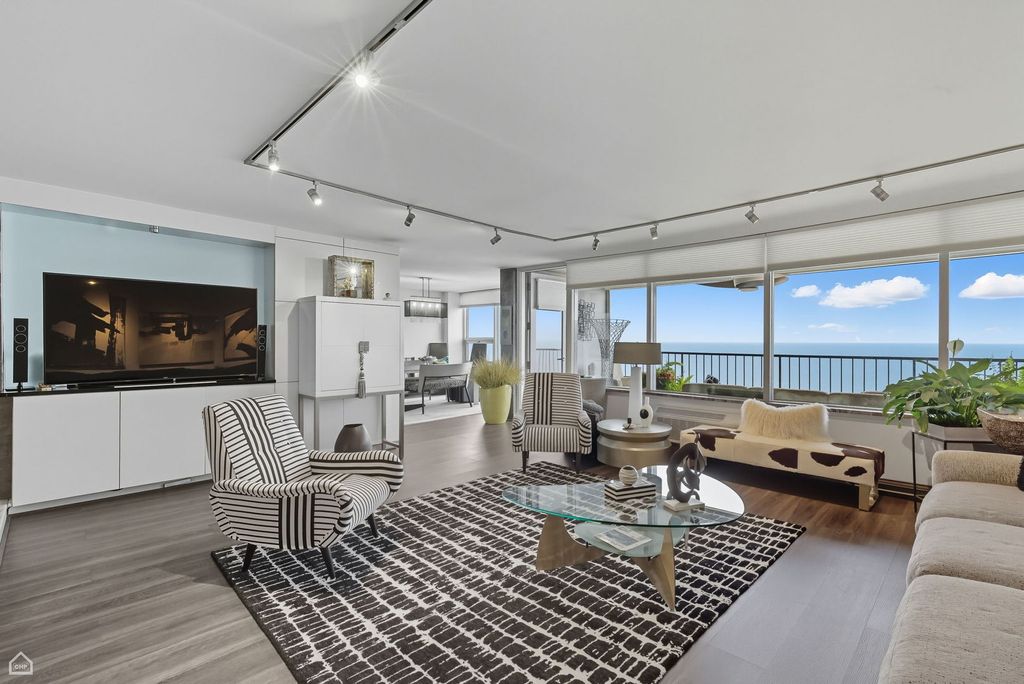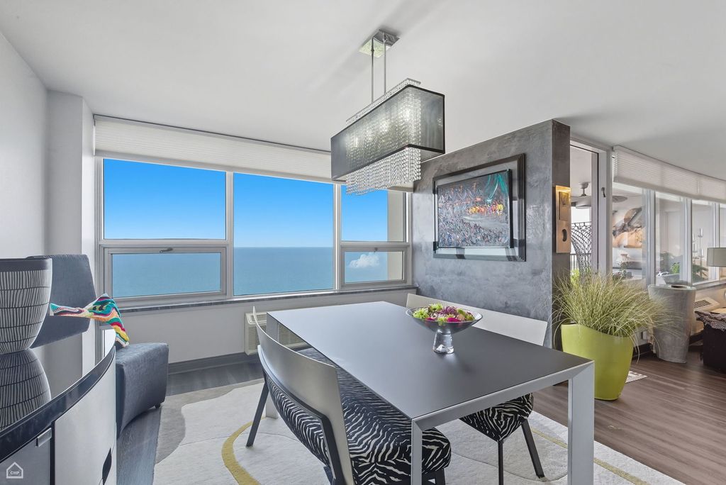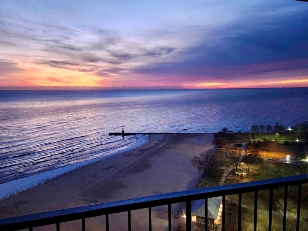 Welcome to one of the most unique homes on the lakefront - a rarely available D-Tier in the iconic Horizon House. This building sits parallel to the shoreline, giving you a front-row seat to sunrises over Lake Michigan and sunsets over the city. This spacious condo, approximately 2,000 sq. ft., features 3 bedrooms and 2 bathrooms and has been thoughtfully updated with a bold, designer touch. The open living space feels like a curated gallery, filled with light and personality. The kitchen is both stylish and functional, with glossy cabinetry, a waterfall-edge island, stainless steel appliances, and a statement backsplash that ties it all together. Step outside to the oversized, covered balcony with a retractable screen - it serves as more of an outdoor living room, complete with a ceiling fan, lush plants, and ample space to lounge. Inside, each room has its own unique vibe. The primary suite feels like a boutique hotel, featuring a renovated bathroom and plenty of closet space. The other two bedrooms offer flexibility for guests, an office, or a creative space - all with great natural light and stunning west views. You'll also appreciate the in-unit laundry room, equipped with a full-size washer and dryer, and a utility sink. Building amenities include a rooftop pool, two fitness rooms, on-site parking, 24-hour door staff, and direct access to the beach and lakefront trail right from the lobby. Plus, you're just blocks away from Mariano's, Whole Foods, the Red Line, and all the vibrant energy of Andersonville and Edgewater. Homes like this don't come around often- this one is truly something special.