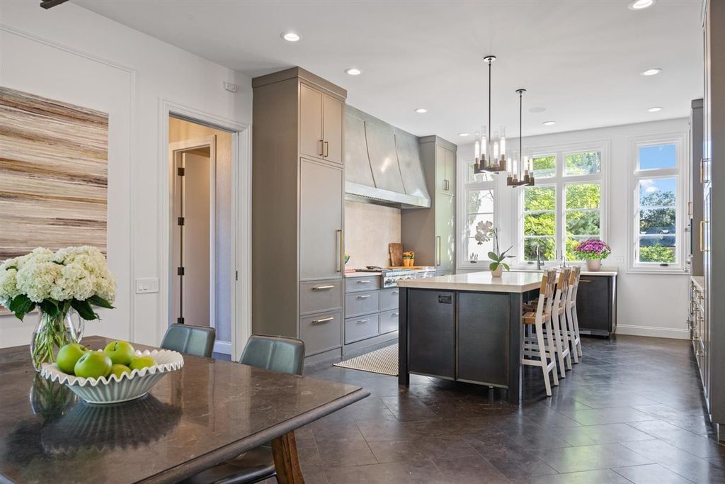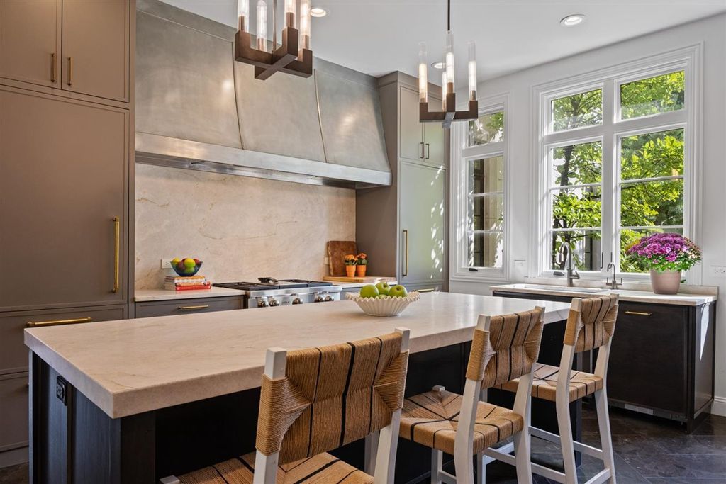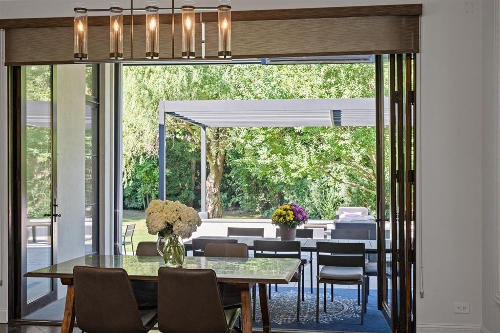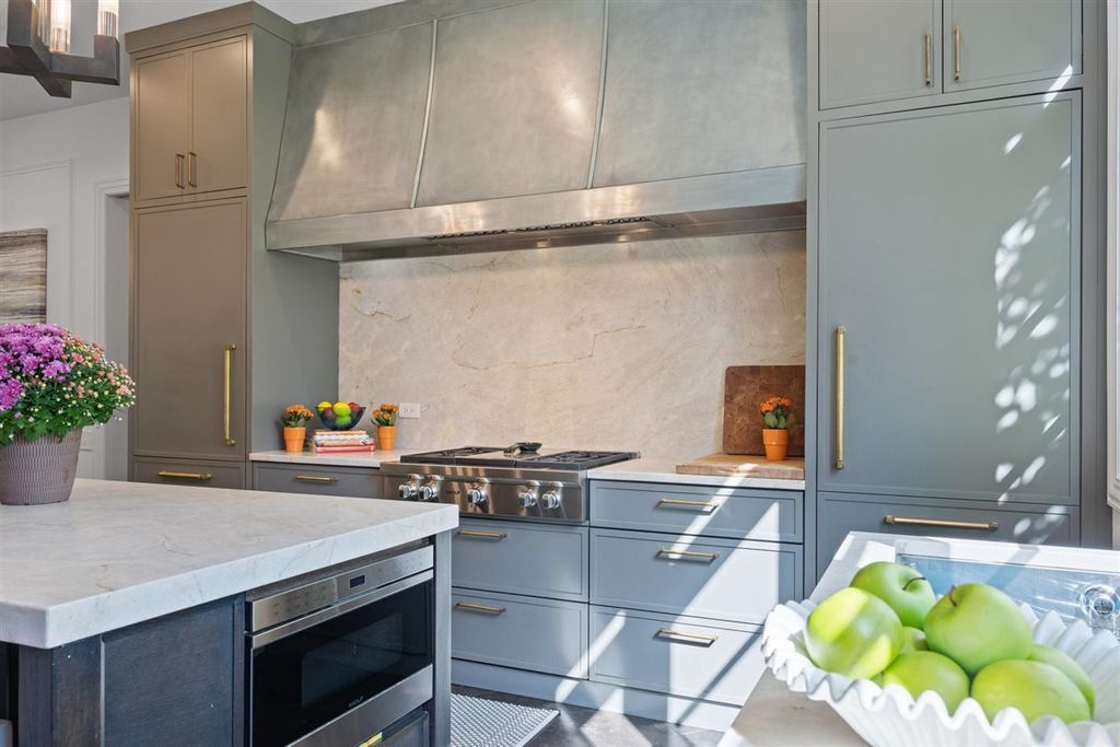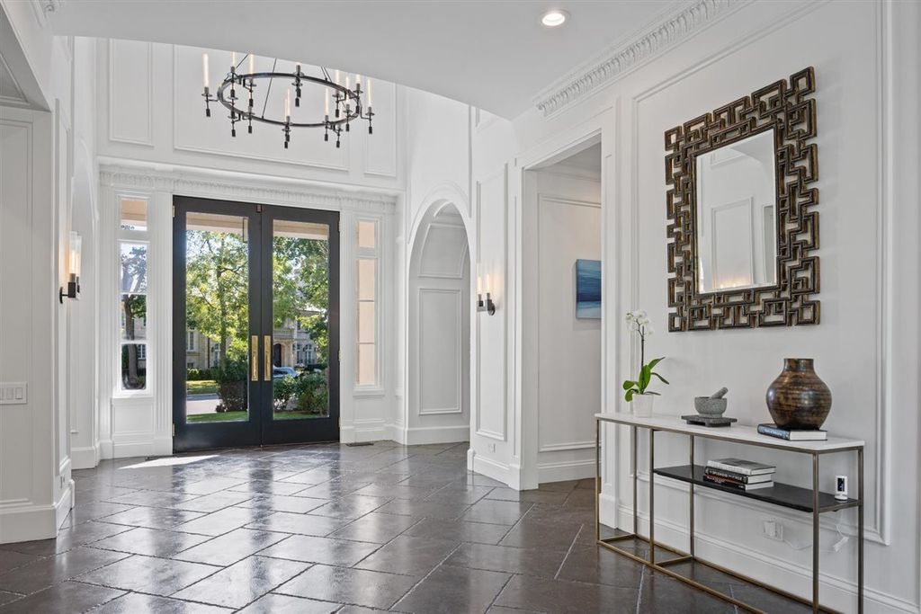 The real "key" to this East Glencoe stunner is its rare balance of fine architectural detail, luxurious lifestyle living, and unbeatable location where every day feels like a getaway with access to your own private association beach just down the block. Set high at the end of a coveted cul-de-sac with lake breezes, this stately white stucco Mediterranean home makes an unforgettable first impression. Crisp, clean lines, oversized black-inlay custom windows, and manicured landscaping hint at the curated sophistication inside. Step through grand glass doors into a dramatic two-story foyer, where 13.5-foot ceilings and walls of windows flood the home with natural light, creating an immediate sense of volume and calm sophistication. A Spanish pied-a-terre vibe flows throughout layered with character and craftsmanship: artisanal plaster trim, reclaimed wide-plank hardwood floors & full-height sliders that dissolve the boundary between indoors and out. Off the foyer, the formal living room offers the perfect spot for intimate fireside evenings, while the paneled office-wrapped in Farrow & Ball Hague Blue with bespoke built-ins-can easily flex into a first-floor bedroom thanks to an adjacent quartz-clad full bath. At the heart of the home a massive dining room bridges casual and formal living framed by arched millwork openings and oversized windows. Family room custom painted in serene monochromatic tones with Restoration Hardware style is anchored by a wall of French doors that open seamlessly to the newly designed backyard oasis-making indoor-outdoor entertaining effortless. The Chef's kitchen pairs beauty and function: dark grey custom cabinetry with Newport Brass hardware, a sculptural oversized range hood, high-end stainless appliances, and a large island with seating. Adjacent, the sunny breakfast room opens through a retractable Nano glass wall to a resort-level backyard featuring a built-in outdoor kitchen, dining pergola, cozy fire-pit lounge, and lush landscaping designed for year-round enjoyment. Practical luxury continues with a fully equipped mudroom featuring custom lockers, secondary laundry, a large walk-in pantry, powder room, and direct access to the attached three-car garage with electric-car charging. Upstairs volume and light continue along the extra-wide hallway leading to four spacious bedrooms. The primary suite is a sanctuary with dual walk-in closets and a Four Seasons-level marble bath wrapped in Calcutta Gold-complete with double vanity, soaking tub, steam shower, heated floors, and fixtures by Waterworks and Phylrich. A guest suite with private marble bath and walk-in closet sits nearby, while two additional bedrooms share a sophisticated Jack-and-Jill bath. A second laundry room adds daily convenience. The fully finished lower level offers endless recreation and entertainment with a full theater area, playroom, custom bar, and temperature-controlled wine cellar-plus a 5th bedroom with full bath for guests or live-in arrangements. Set on a half-acre of beautifully landscaped grounds, just one block from Harbor Street's keyed gate to your private beach, this residence captures the very best of North Shore living-award-winning New Trier schools, charming downtown nearby, and a 25-minute train ride to the city. Full of character yet aligned with every modern must-have, 320 Keystone stands apart for buyers who crave refined design, authenticity, and a touch of everyday magic-not another cookie-cutter new construction home.