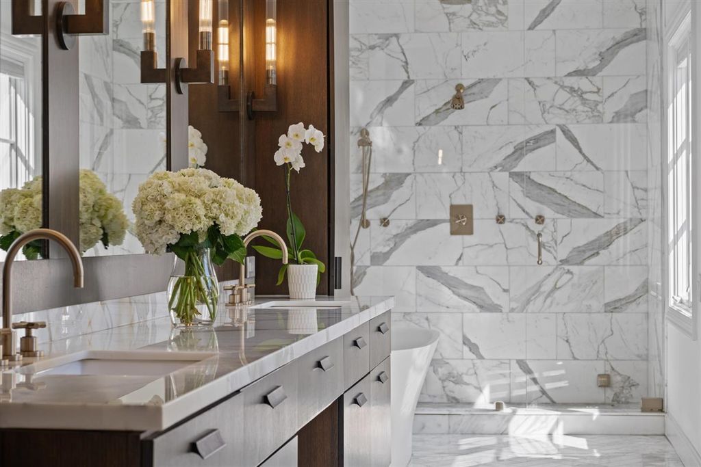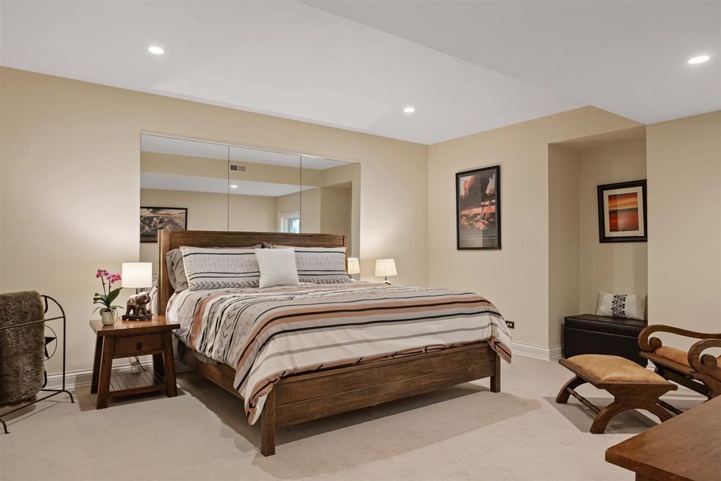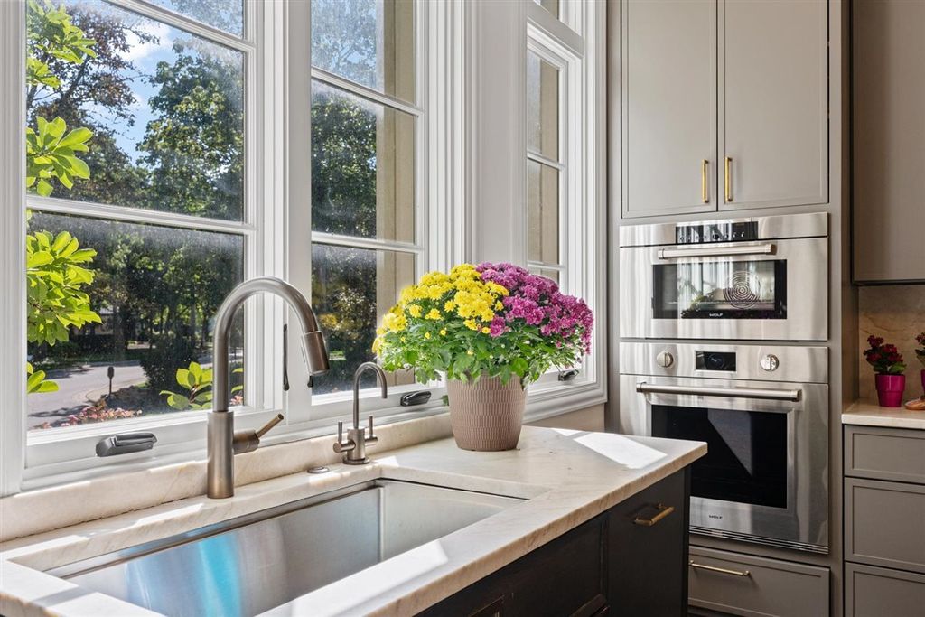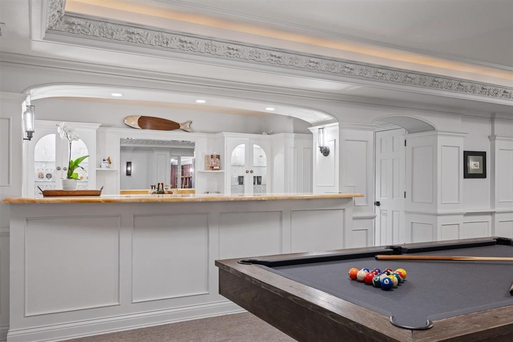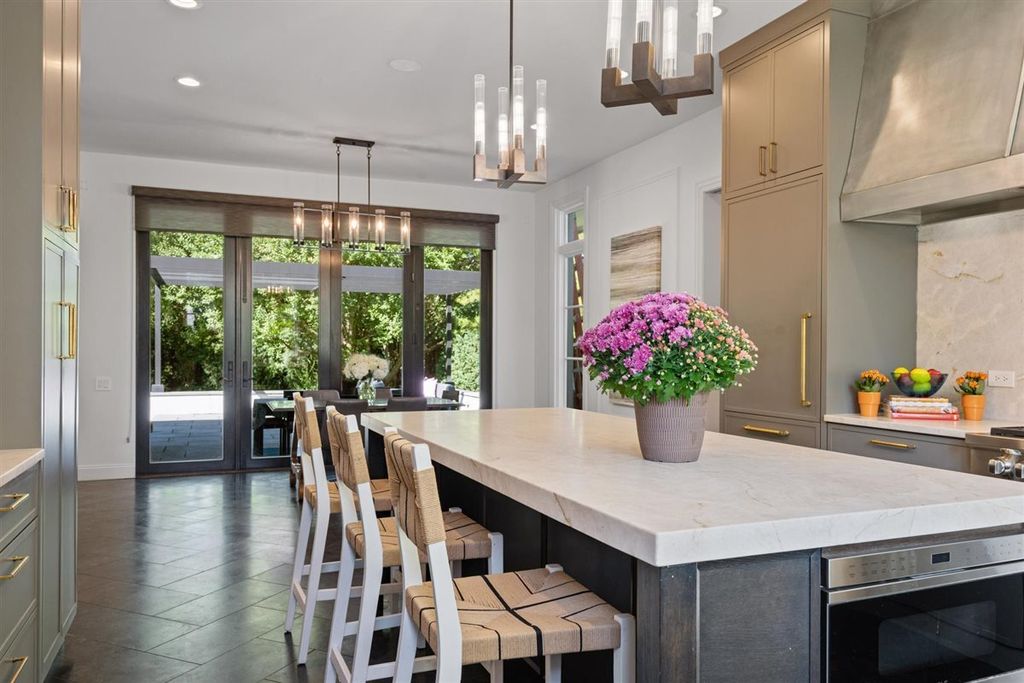 The real "key" to this East Glencoe stunner is its rare balance of fine architectural detail, luxurious lifestyle living, and unbeatable location where every day feels like a getaway with access to your own private association beach just down the block. Set high at the end of a coveted cul-de-sac with lake breezes, this stately white stucco Mediterranean home makes an unforgettable first impression. Crisp, clean lines, oversized black-inlay custom windows, and manicured landscaping hint at the curated sophistication inside. Step through grand glass doors into a dramatic two-story foyer, where 13.5-foot ceilings and walls of windows flood the home with natural light, creating an immediate sense of volume and calm sophistication. A Spanish pied-a-terre vibe flows throughout layered with character and craftsmanship: artisanal plaster trim, reclaimed wide-plank hardwood floors & full-height sliders that dissolve the boundary between indoors and out. Off the foyer, the formal living room offers the perfect spot for intimate fireside evenings, while the paneled office-wrapped in Farrow & Ball Hague Blue with bespoke built-ins-can easily flex into a first-floor bedroom thanks to an adjacent quartz-clad full bath. At the heart of the home a massive dining room bridges casual and formal living framed by arched millwork openings and oversized windows. Family room custom painted in serene monochromatic tones with Restoration Hardware style is anchored by a wall of French doors that open seamlessly to the newly designed backyard oasis-making indoor-outdoor entertaining effortless. The Chef's kitchen pairs beauty and function: dark grey custom cabinetry with Newport Brass hardware, a sculptural oversized range hood, high-end stainless appliances, and a large island with seating. Adjacent, the sunny breakfast room opens through a retractable Nano glass wall to a resort-level backyard featuring a built-in outdoor kitchen, dining pergola, cozy fire-pit lounge, and lush landscaping designed for year-round enjoyment. Practical luxury continues with a fully equipped mudroom featuring custom lockers, secondary laundry, a large walk-in pantry, powder room, and direct access to the attached three-car garage with electric-car charging. Upstairs volume and light continue along the extra-wide hallway leading to four spacious bedrooms. The primary suite is a sanctuary with dual walk-in closets and a Four Seasons-level marble bath wrapped in Calcutta Gold-complete with double vanity, soaking tub, steam shower, heated floors, and fixtures by Waterworks and Phylrich. A guest suite with private marble bath and walk-in closet sits nearby, while two additional bedrooms share a sophisticated Jack-and-Jill bath. A second laundry room adds daily convenience. The fully finished lower level offers endless recreation and entertainment with a full theater area, playroom, custom bar, and temperature-controlled wine cellar-plus a 5th bedroom with full bath for guests or live-in arrangements. Set on a half-acre of beautifully landscaped grounds, just one block from Harbor Street's keyed gate to your private beach, this residence captures the very best of North Shore living-award-winning New Trier schools, charming downtown nearby, and a 25-minute train ride to the city. Full of character yet aligned with every modern must-have, 320 Keystone stands apart for buyers who crave refined design, authenticity, and a touch of everyday magic-not another cookie-cutter new construction home.