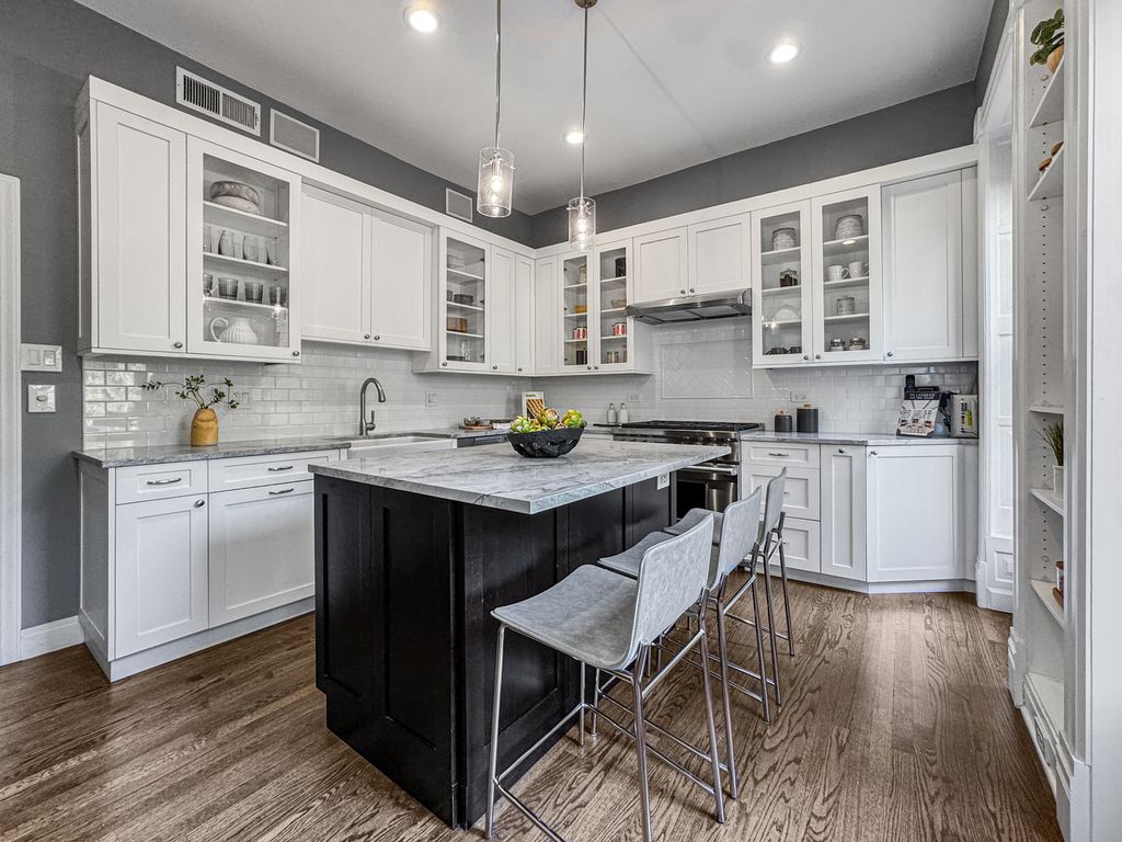 This move-in-ready East Lincoln Park row home is a fabulous alternative to a condo. It offers bright living space with nearly 10 ft ceilings on the main level, hardwood floors, two fireplaces, and updated finishes throughout. The main level features a combo living/dining room, a newer white kitchen, a half bath, and laundry. Upstairs, there are three bedrooms with Elfa closet organizers, two full baths, a family room, and an office or playroom. The garden-level apartment offers flexibility, allowing it to provide income to cover property taxes, serve as an in-law suite or home office, or be incorporated into the main living space by adding an interior staircase. This home has a new synthetic deck off the kitchen, an extra-deep landscaped backyard, and an oversized two-and-a-half-car garage. The house is ideally located near the park, zoo, nature museum, lakefront recreation, public transportation, and exceptional schools, including Lincoln Elementary.