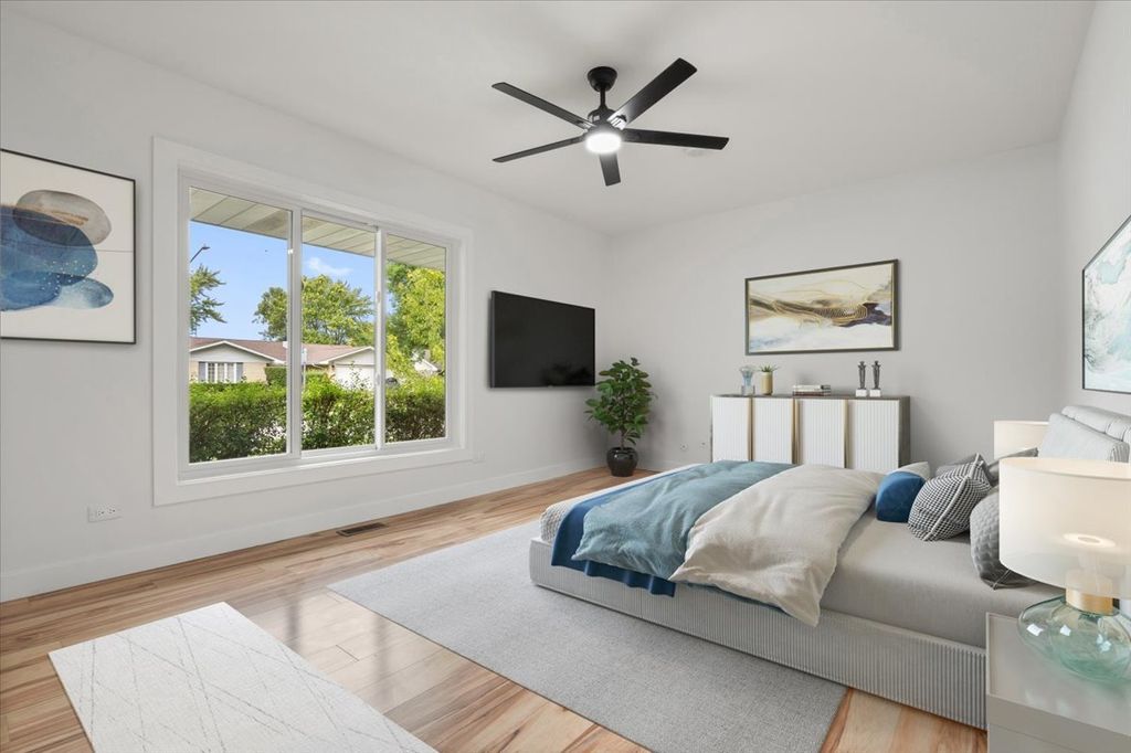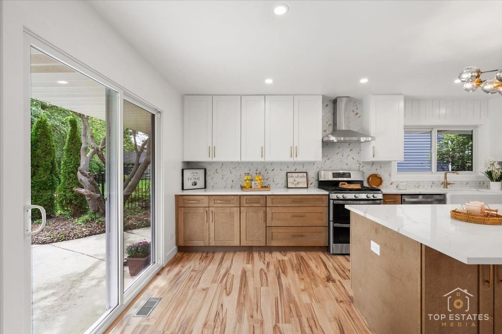 Start your next chapter here! Nestled in peaceful and highly desired Churchill neighborhood, this beautifully remodeled property at 1327 Churchill Rd, boasts a perfect blend of comfort and style. As you enter, you're welcomed by a spacious foyer that leads into the bright and airy open-concept layout featuring a Dream kitchen with two tone 42 inch cabinets a massive quartz island, stainless-steel appliances and upscale finishes true out. Living room with plenty of natural light and electric fireplace is perfect for family gathering. This home features 4- generously-sized bedrooms with 2-full bathrooms, including a master suite with an ensuite bath. Step outside to your private backyard oasis, complete with a concrete patio perfect for entertainment and gatherings. RECENT UPDATES include: New front door(2025) New Anderson windows and patio slider(2025) New flooring(2025) New designer kitchen(2025) New stainless steel appliances(2025) New wine fridge(2025) New washer and dryer(2025) New electric fireplace( 2025) New interior doors(2025) New siding(2025) bathrooms remodeled with designer touches and whole house freshly painted true out. Don't miss out on this opportunity to own this fully remodeled gem in one of most desired Schaumburg neighborhoods. Top rated schools with easy access to shopping, restaurants, parks, golf courses and mayor highways.