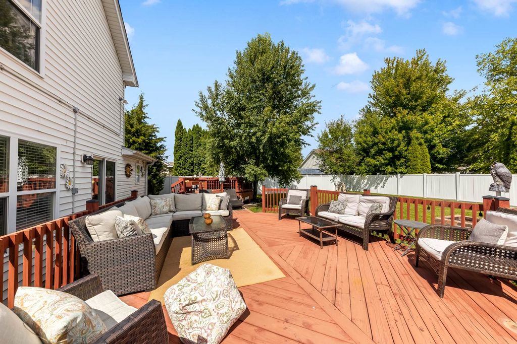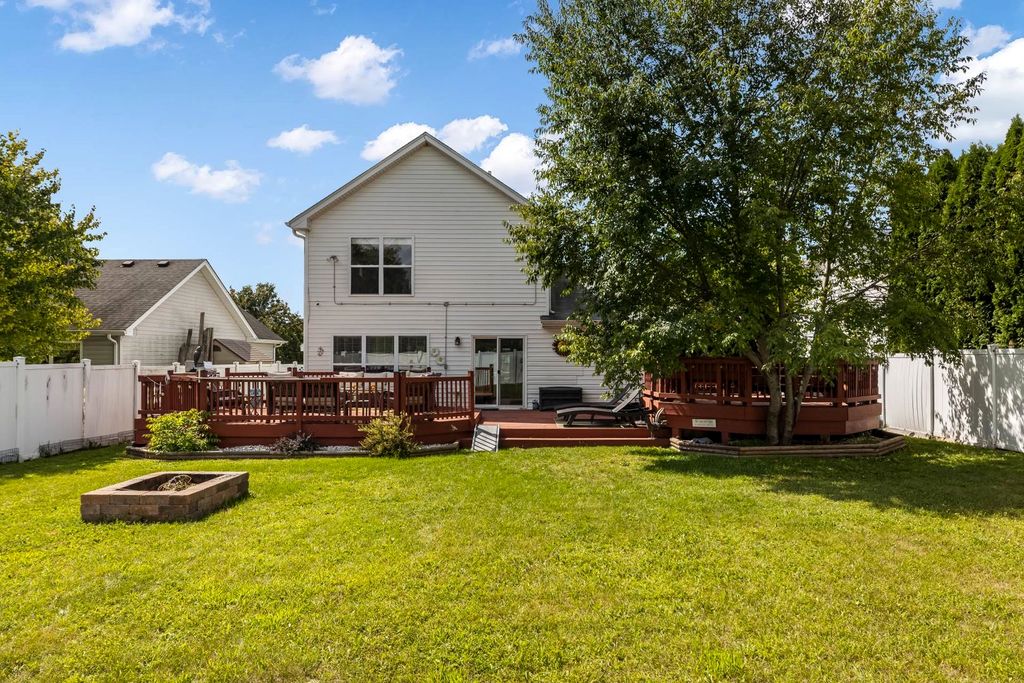 ****BACK ON THE MARKET, BUYER COULD NOT OBTAIN FINANCING .This beautiful 4 bedroom,3 bath home is located in the desirable Kensington Point neighborhood, offering both charm and comfort. Step inside to find gleaming hardwood floors throughout and a welcoming living room featuring a cozy gas-log fireplace.The formal dining room, accented by a large picture window, creates the perfect setting for gatherings.The recently updated kitchen boasts quartz countertops, stainless steel appliances, mini beverage refrigerator and a new sliding door that opens to the backyard. The primary suite impresses with a vaulted ceiling, ceiling fan, spacious walk-in closet, and an updated bathroom complete with double sinks and a sleek glass shower door. Bedrooms 2 & 3 are ample size with nice closet space. Additional bathrooms have also been thoughtfully upgraded with granite vanities, tiled showers, and modern fixtures.Convenience continues with a mud/laundry room that includes a sink along with washer and dryer. Fully finished basement with hardwood floors,leisure area,fully remodeled bath and private bedroom is perfect for teens or out of town guests. Outdoors, two expansive decks overlook the generous backyard with a fire pit, all fully enclosed by white vinyl fencing. The oversized two-car garage provides heavy-duty shelving and a pull down attic for additional storage. Ideally located near the tollway, shopping, dining, and more, this home truly has it all. Schedule your showing today and discover why this one is a must-see. Welcome home!