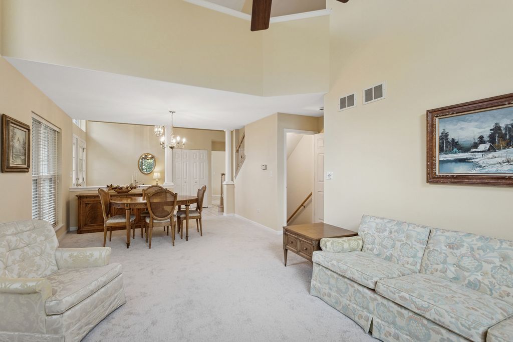 One-of-a-kind end unit with a desirable first-floor master suite and basement. This 2-bedroom, 2.1-bath home features an open and airy floor plan with new carpeting throughout. The eat-in kitchen offers generous cabinet space, a large pantry closet, ceramic tile flooring, and a vaulted ceiling. The second floor has a bedroom, full bath, and a loft overlooking the living room and entry, enhancing the spacious feel while providing some separate living space. Enjoy plentiful storage, oversized closets, first-floor laundry, a cozy fireplace, and a freshly stained private deck perfect for relaxing or entertaining. Abundant windows fill this home with natural light. Association covers lawn care and snow removal, giving you more time to enjoy the home's prime location near the Great Western Trail, Metra, highways, waterpark, library, shopping, and dining. Quick close possible