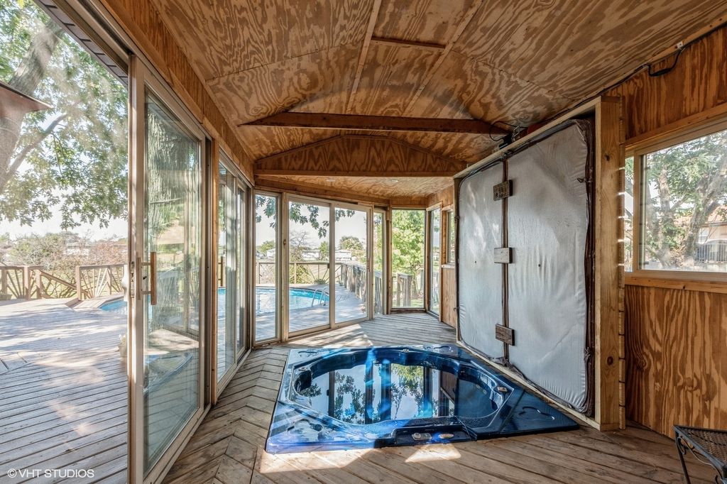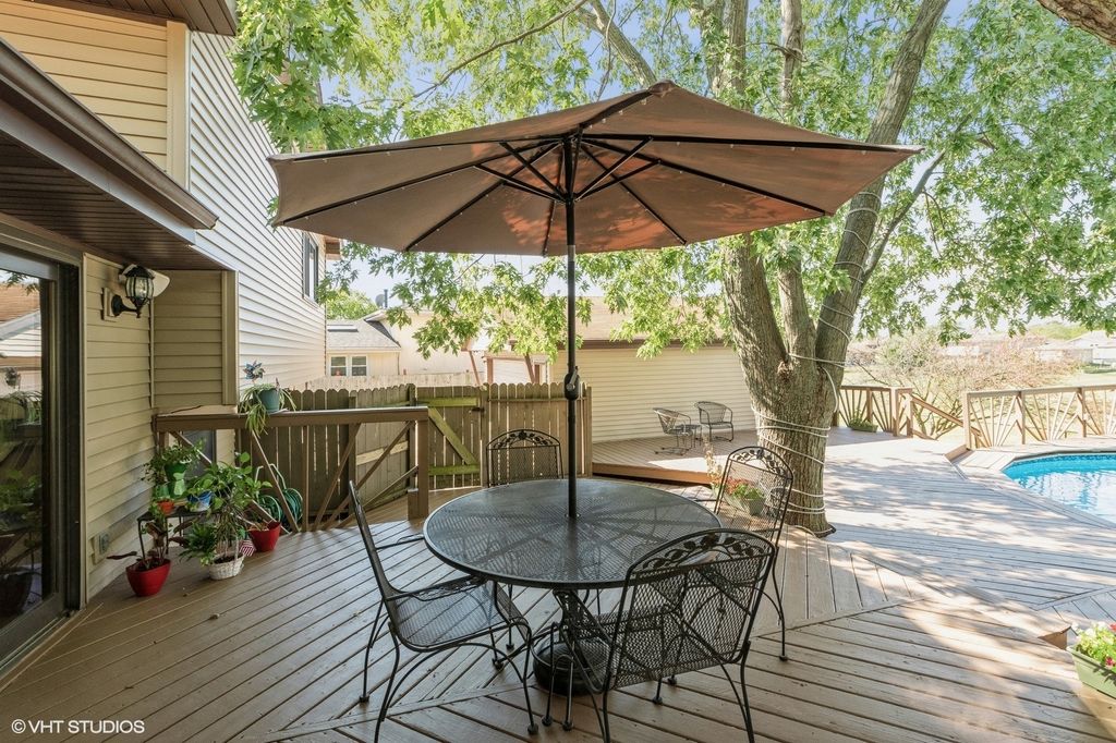 Tri-Level home on one of Westwood Subdivision's largest lots. Features include: updated kitchen with custom cabinets, granite counters, designer backsplash; updated bathrooms; second bedroom currently used as an office (easily converted); three seasons room with in-floor hot tub; large deck and pool with 6' center depth; private setting with retention pond behind property. Finished lower level with wet bar for entertaining. Newer siding, soffit, fascia, furnace, A/C, and newer roof and windows. 2.5-car garage with extra side driveway, shed, fully fenced yard. Located in top school districts.
