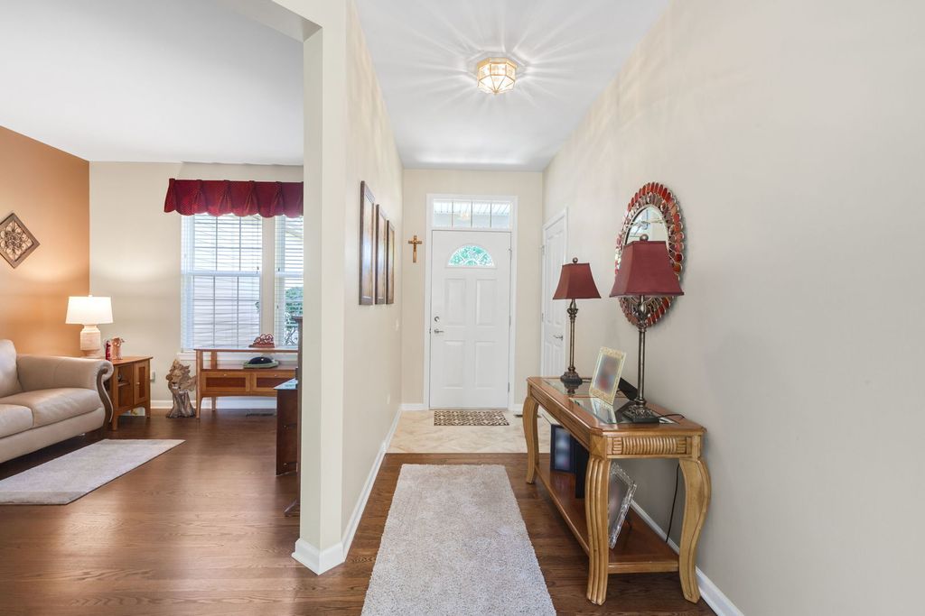 Welcome to your next chapter in the highly sought-after Del Webb 55+ community! This beautifully maintained ranch-style home offers the perfect blend of comfort, style and low-maintenance living. Updates include: Roof (2014), newer carpet, Brand new refrigerator, newer kitchen appliances, washer/dryer (2022) with a 5 year warranty, brick patio and new sod in front yard. Featuring 2-bedrooms, 2-full baths, the thoughtfully designed open floor plan showcases gleaming hardwood floors throughout the main living areas and new carpet in the bedrooms for added comfort. The updated kitchen is equipped with newer appliances and a brand-new refrigerator, and offers a convenient layout perfect for daily living and entertaining. Additional features include a washer and dryer, extra storage space in the garage, and a charming brick patio where you can relax and enjoy the outdoors. Fresh new sod in the front yard enhances the home's curb appeal. Nestled within a vibrant, active adult community, you'll enjoy access to top-notch amenities and a welcoming neighborhood lifestyle. This move in ready home combines modern updates with the ease of low-maintenance living-making it the perfect place to call home. Don't miss your chance to experience the Del Webb lifestyle, schedule your showing today!
