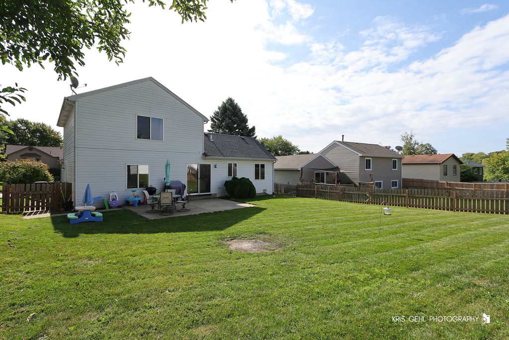 Winding Creek Living at Its Best! This charming 3-bedroom, 2-bath home features an open floor plan, hardwood flooring throughout the main level, and vaulted ceilings with beautiful custom woodwork. The kitchen boasts granite countertops and custom white cabinetry, perfect for everyday living and entertaining. Enjoy a fenced backyard, 2-car garage, and peace of mind with a 2023 Rheem water filtration system and water softener. Conveniently located just steps from the well-maintained community playground and open field. This well-cared-for home is being sold As-Is - come see the value it offers!