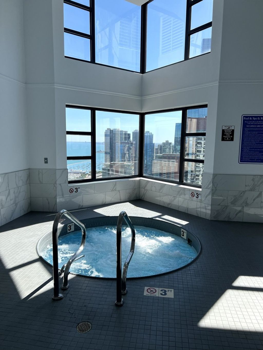 Bright and Clean Streeterville updated Jr. 1 bedroom. Maple hardwood floors thru-out, maple cabinet kitchen, marble bath, large bay windows, 2 good-sized walk-in closets & new dishwasher. Freshly cleaned & painted. Might be the best premium heated parking space in the building, 1st. floor (#HC1), just inside the door, adjacent to garage attendants' desk, higher ceilings. Storage locker & laundry on 2nd. floor. Very popular full amenity bldg. Indoor roof top pool, fully equipped exercise room, 2 sun decks, Jacuzzi, sauna, party room, 24-hour doorman. Great location. Close to Navy Pier, Northwestern Hospital, Restaurants, Shops, Michigan Avenue etc.