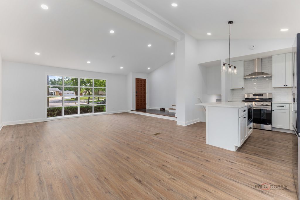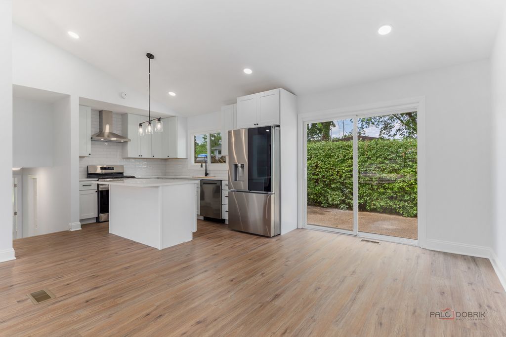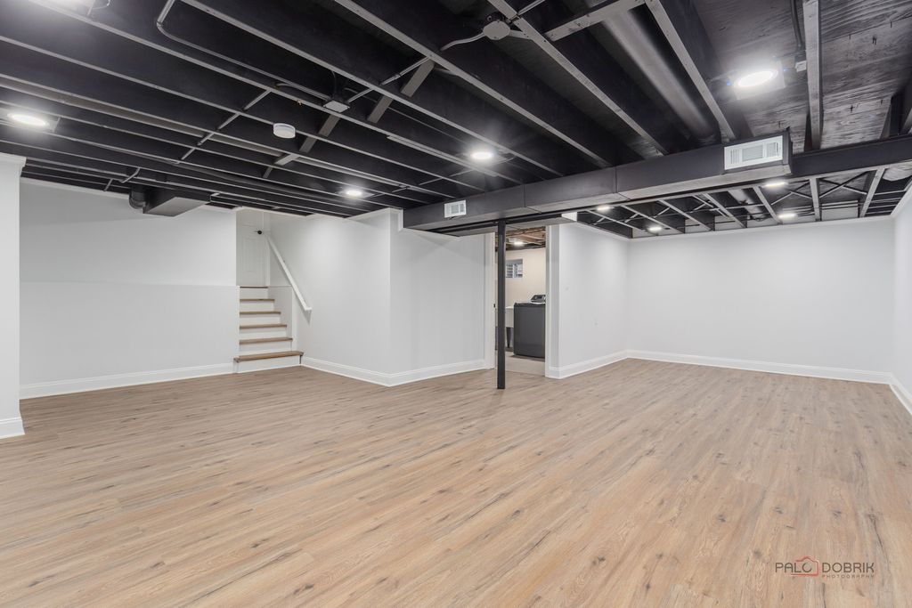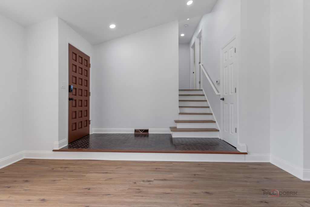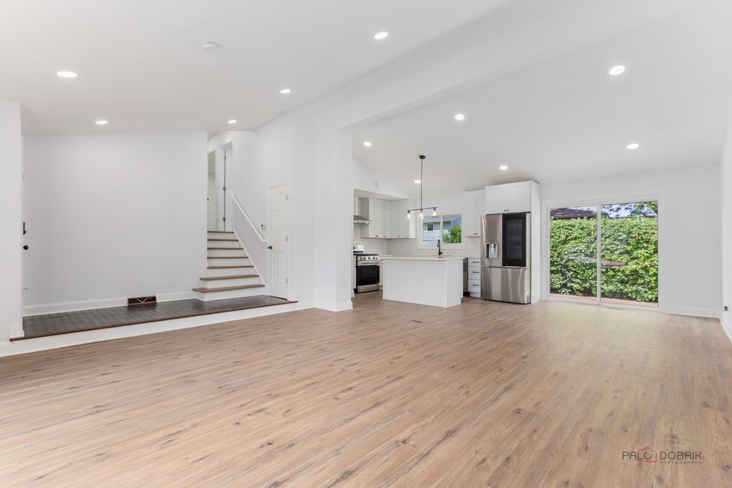 Stunning Fully Renovated Home with Permits & High-End Finishes. This exceptional home has been completely transformed with top-to-bottom renovations completed under city permits and inspections. No detail has been overlooked! Highlights include: All plumbing systems have been completely replaced. All interior and exterior doors and windows are brand new. The central interior wall has been professionally removed with a structural engineer's plan, creating an open-concept living space. Ceilings were reinsulated to meet current code requirements and finished with new drywall. Custom kitchen cabinets and bathroom vanities were specially made to fit the space perfectly. Luxury wood-look waterproof vinyl flooring installed throughout, including the basement. Modern recessed lighting (spotlights) added to enhance ambiance and functionality. The fully finished basement includes a redesigned recreation room with new drywall. Interior walls have been freshly painted using premium-quality paint. The exterior facade was thoroughly inspected and the entire home freshly painted with four coats of high-grade paint. All smoke and carbon monoxide detectors are wireless interconnected in compliance with current safety codes. Both bathrooms were rebuilt from scratch with contemporary, stylish finishes. This home offers peace of mind with quality craftsmanship, modern upgrades, and code-compliant improvements - making it truly move-in ready.