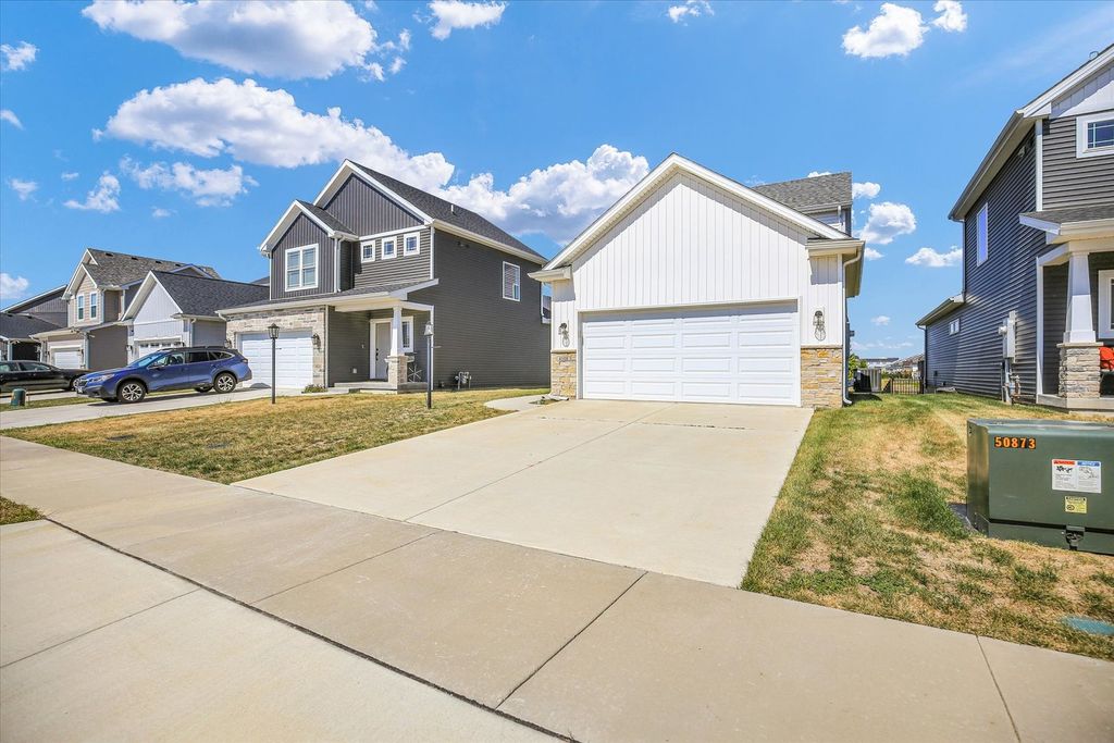 This beautifully maintained 3-year-old home feels like new and offers both style and space. Step into the impressive two story foyer and family room, where soaring ceilings create a bright, open, and contemporary atmosphere. The finished basement includes a spacious family room, perfect for entertaining or relaxing. Situated right on the golf course, you'll enjoy sweeping, uninterrupted views with no backyard neighbors. Step out onto the large deck and take in the peaceful scenery that seems to go on forever. Thoughtfully chosen finishes throughout add a touch of elegance and warmth.
