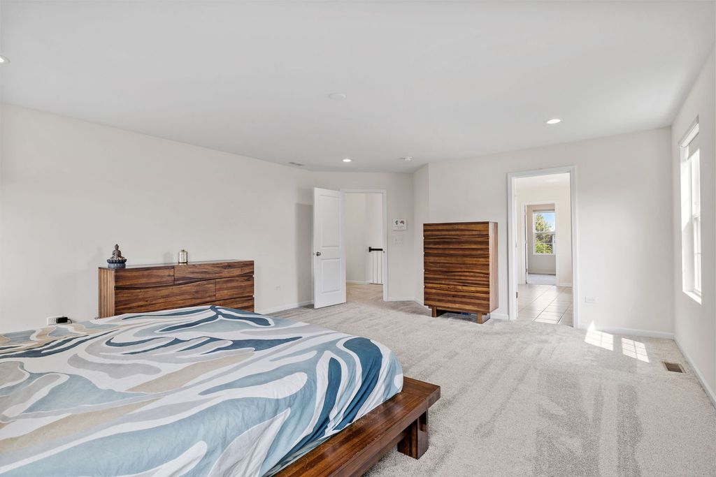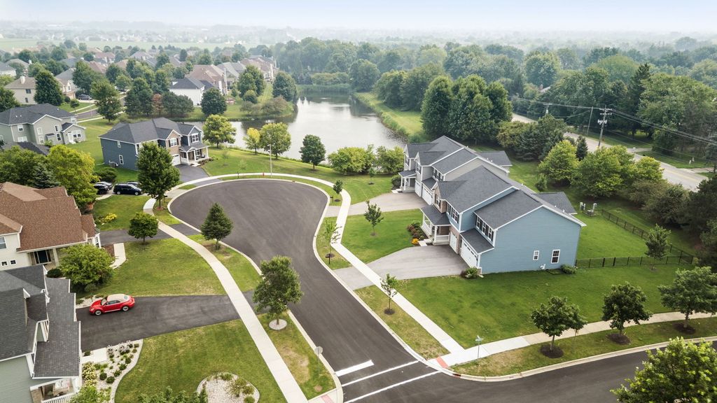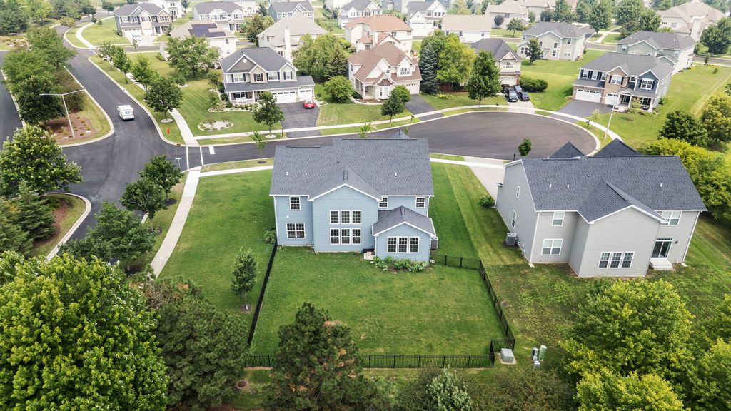 Built in 2023, this like-new home delivers the feel of new construction without the wait! Step into luxury with this stunning 5-bedroom, 3.1-bath Hudson model by M/I Homes, offering modern design, thoughtful functionality, and smart home technology throughout. The main level features prefinished wood laminate flooring, a rare first-floor bedroom with a private ensuite bathroom, and a breathtaking two-story family room with soaring 18-foot ceilings that flood the space with natural light. The gourmet kitchen is an entertainer's dream, boasting an oversized 7.6' x 5.6' island, Carrara Mist quartz countertops, solid maple cabinetry, a WALK IN PANTRY, a Samsung Bespoke 4-Door French Door Refrigerator with Family Hub, and WiFi-enabled appliances. Smart switches are installed throughout for added convenience. The kitchen, breakfast area, and family room flow seamlessly together, and just off the breakfast area is an upgraded morning room, perfect for enjoying coffee or keeping an eye on the kids. Upstairs, the owner's suite is tucked into a private corner and features a spacious shower, separate soaking tub, private water closet, quartz vanity, and a generous walk-in closet. Three additional bedrooms, a full hall bath, and a conveniently located second-floor laundry room complete the upper level. All bathrooms feature quartz countertops for a sleek finish. Additional highlights include a covered front porch, formal dining room, mudroom, and a full basement ready for your finishing touches. Located in Plainfield and feeding into the HIGHLY RATED OSWEGO SCHOOL DISTRICT #308, this home offers countless upgrades and impeccable style-truly a must-see!