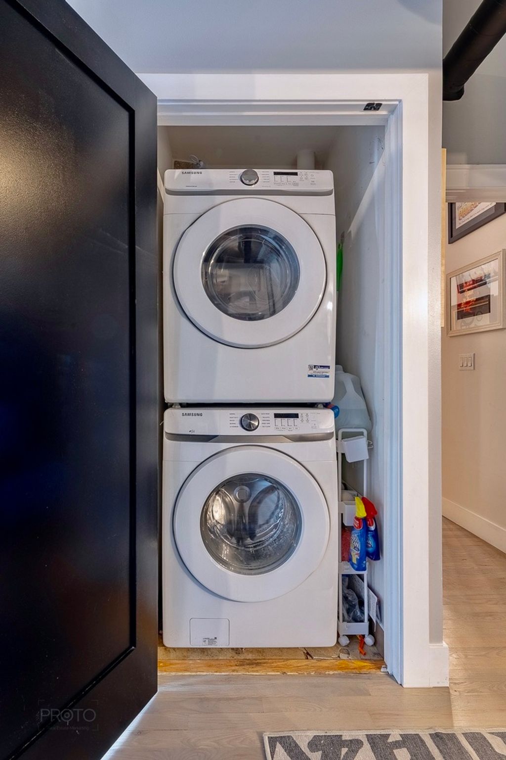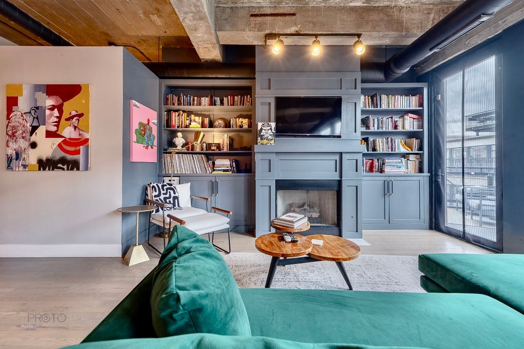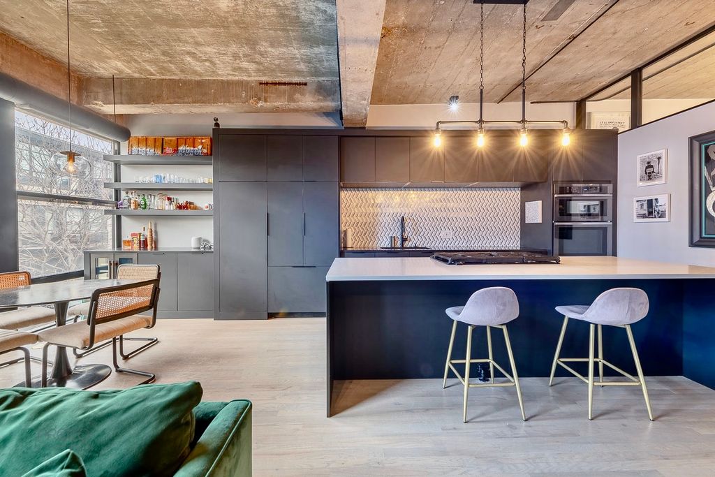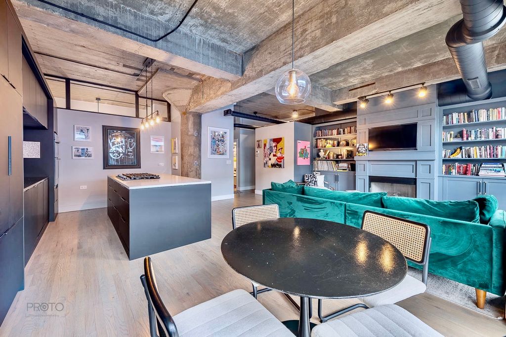 Stunning, spacious and rich in visual appeal, this two bedroom, two bath, luxe loft is bursting with character. Large completely renovated unit, with smart and saavy relocated kitchen to provide perfect flow and maximizes the best qualities of an open-concept living space which ushers natural light into the wide open floor plan from floor to ceiling windows. Top of the line built-in appliances include newer Fisher Paykel, Samsung and Kitchen Aid, a massive white quartz waterfall 9' center island showstopper with tons of storage that contrasts with the black dramatic granite countertops and custom Italian cabinets, in unit washer & dryer, a custom built massive walk-in closet (that could be converted back to a den/wfh-office space) and tons of additional closets, lovely warm honey-grey hardwood planked floors, a private balcony, working gas fireplace, a dry bar with a 36-bottle wine/beverage refrigerator and soaring concrete ceilings, architectural elements and floor to ceiling windows throughout, fully enclosed spacious bedrooms and additional storage in the basement, and a heated, secure premium located garage parking spot is included. Retreat to the private primary suite through a hallway of quadruple closets. Embrace the carefree lifestyle, the amazing history and full amenities that the University Commons, has to offer. Heated outdoor pool, award winning grounds, pet friendly sidewalks, common rooftop wrap around decks with iconic skyline views, workout facilities, party room, rentable theatre and on-site management office. Short stroll to Pilsen, West Loop, South Loop and UIC. Conveniently located to numerous public transportation options. Easy access to all expressways. This is the definition of turnkey and this one-of-a-kind luxury home awaits as you step into unparalleled elegance in University Commons, where historic architecture meets cutting-edge luxury. Once part of the iconic terra-cotta-clad Water Street Market, this truly one-of-a-kind residence boasts the building's most desirable custom layout, reimagined with dramatic flair and designer precision. Investor and very pet friendly!