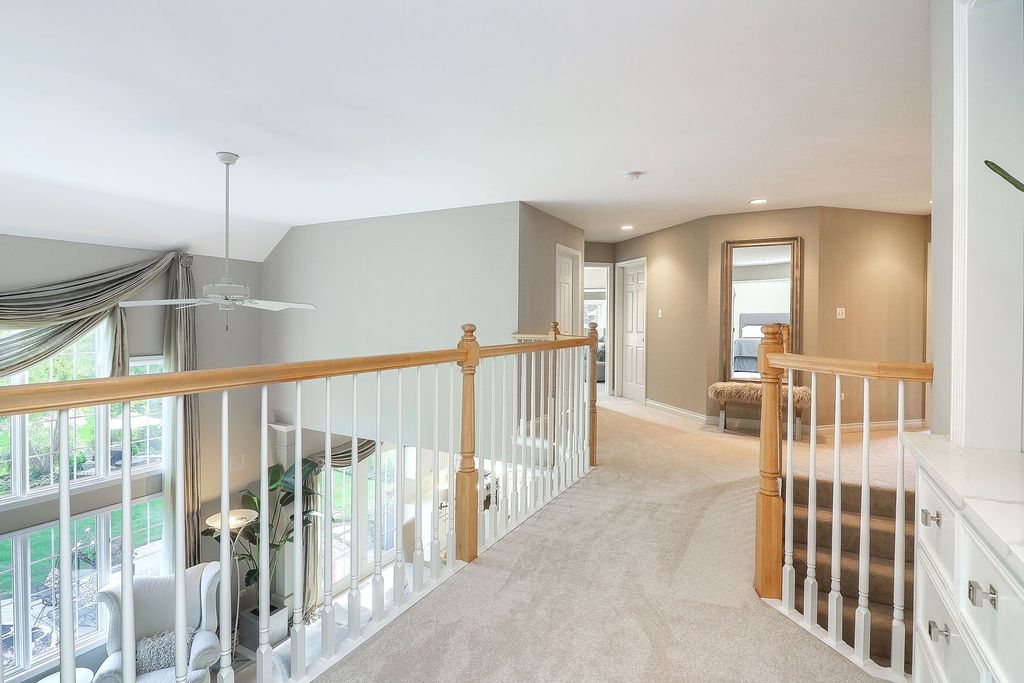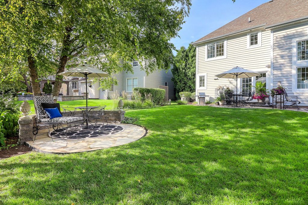 Looking for a pool/clubhouse community with top rated schools? Look no further. This gorgeous home is situated in the highly sought after neighborhood of Stillwater in Naperville school district 204. Welcome to this beautifully updated 6-bedroom, 3.5 bath with 3 car garage, luxury home offering 3,377 sq ft of elegant living space. Recently refreshed with refinished hardwood floors, new carpet, and soft neutral greige tones, this residence seamlessly blends timeless charm with modern comfort. Step inside to find a dramatic two-story family room anchored by a cozy gas fireplace, crown molding throughout, and a thoughtfully designed first-floor en-suite. The gourmet-inspired kitchen features a spacious island, white cabinets, with stunning quartz countertops and flows effortlessly for entertaining, while a spacious first-floor laundry adds convenience to daily living. Enjoy entertaining in the luxurious living room dining room off the kitchen space. Upstairs, the expansive primary suite is a true retreat, featuring a private sitting room, two oversized walk-in closets, and a spa-like bath with a jetted tub and separate shower. Three additional bedrooms complete the upper level; each filled with natural light and generous space. The fully finished basement expands the lifestyle possibilities with a 6th bedroom, wet-bar featuring quartz counters and built-in shelving, an office, spacious rec room, and game room-perfect for gatherings or quiet escapes. Outdoors, discover a backyard oasis designed for relaxation and entertaining. Multiple seating areas include a brick paver patio, a flagstone patio, and a pergola with a hammock retreat, all surrounded by lush professional landscaping. This exceptional home balances elegance, comfort, and lifestyle in every detail-ready for its next chapter. Stillwater subdivision features an in neighborhood elementary school, clubhouse, pool, tennis and basketball. Nearby you will find tons of shops and dining options.
