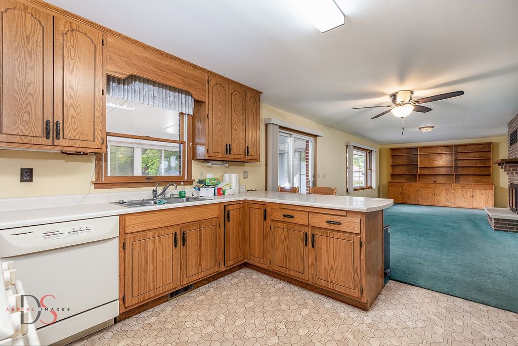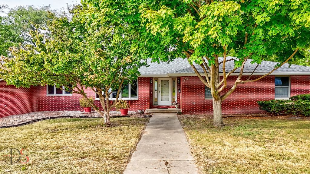 This classic and very spacious all brick 3 bedroom, 2.5 bath ranch-style home stands proudly on two full lots (132' x 140') The huge backyard is fully fenced. The home is nearly 2200 square feet and offers open living space with wonderful flow from the open kitchen/family room into the living room/dining room. A dual wood-burning fireplace is featured in the center of the living space. Full wall custom cabinetry stands in the family room and dining room. A 12' x 20' enclosed, heated porch is accessed from the dinette area and leads to the back deck and overlooks the private backyard. The bedrooms are spacious and the primary bedroom has a private bath. There is a main floor laundry room. The full, unfinished basement offers wonderful potential for finishing. A spacious walk-in cedar closet and a full (functioning but unfinished) bath are in place. The 2.5 car attached garage is 24' x 27' and features double doors and ample storage. Two storage sheds are nestled in the backyard. One is 12' x 16' with an overhead garage door and the other is 8' x 12'. All appliances are included. Whole house fan. Full blueprints available. The house is listed below assessed value.