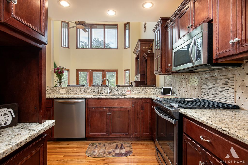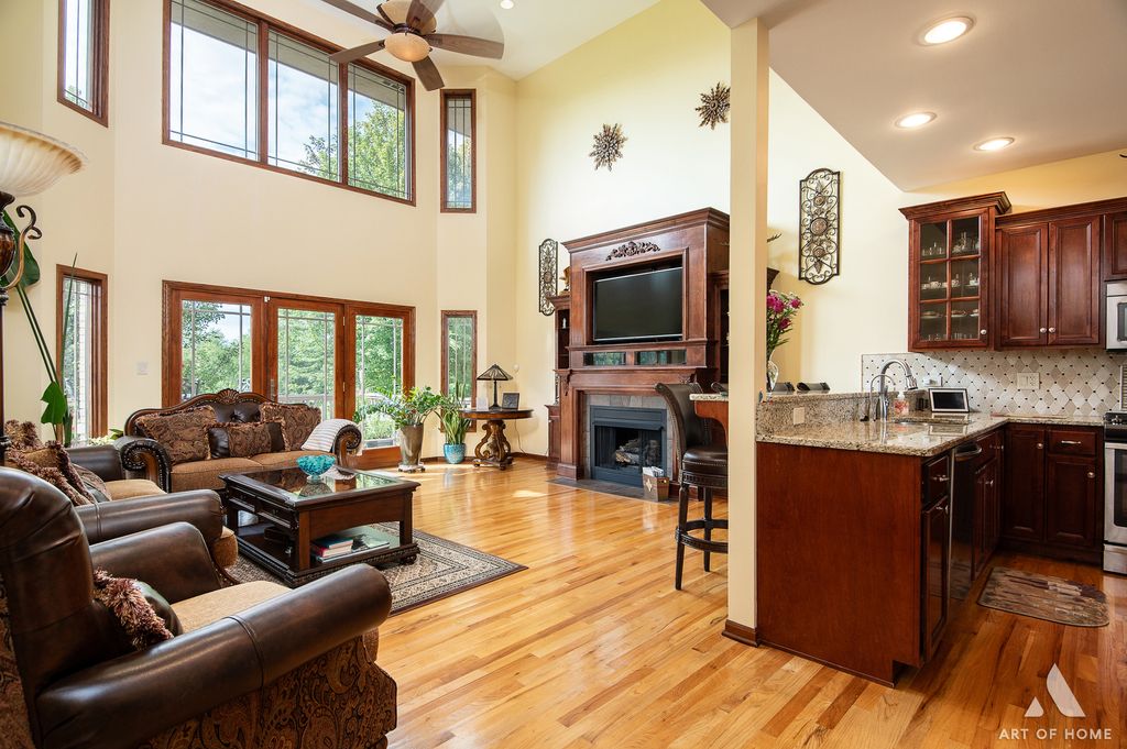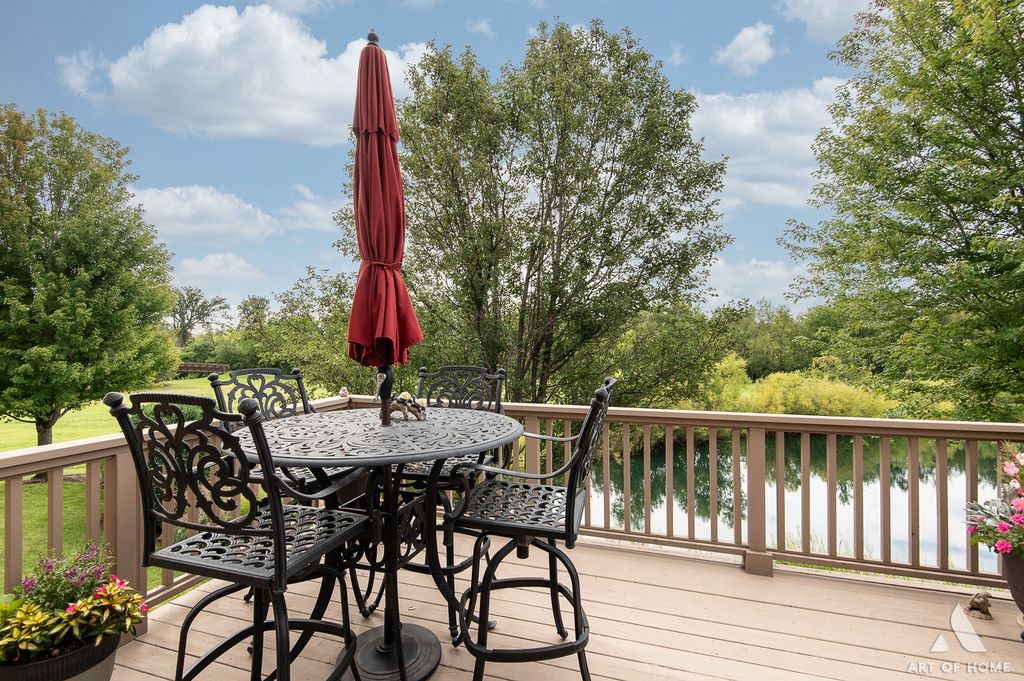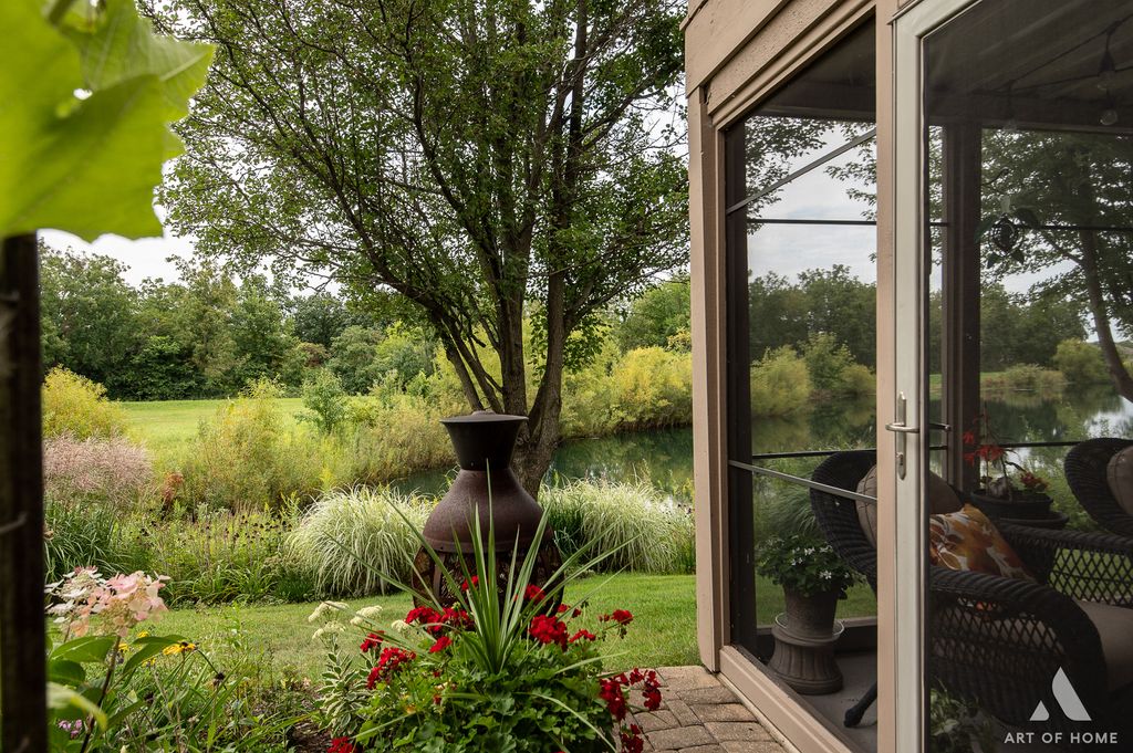 Welcome to this luxury townhome in highly sought-after Prairie Creek Townhomes, offering the perfect blend of elegance, comfort, and space. Situated on a prime lot with a scenic pond edged with reeds, this home provides breathtaking views from almost every room and a private, tranquil setting to enjoy outdoors from the kitchen deck or walk-out basement. Stunning 3 bedroom, 3.5 bath layout features a highly desired main level master suite with serene views, dual custom closets, and a spa-like bath with whirlpool tub, separate shower, and dual sinks. Dramatic two-story great room with hardwood floors, custom fireplace, and floor-to-ceiling windows that flood the space with natural light. Gourmet kitchen boasts newer stainless steel appliances, granite counters, and backsplash, flowing into the elegant dining room with built-in custom buffet with quartz top and glass soft-close doors that complements the dining room table that owners are willing to leave with the home. Finished walk-out basement is an entertainer's dream-complete with a gorgeous dry bar, granite counters, recreation room, newer carpet, full bath, and direct access to the 3 season screened porch overlooking the pond, the perfect spot to relax, unwind, and sip your morning coffee or read book. Upper level features a bright loft ideal for office space plus two spacious bedrooms with an updated Jack & Jill bath. Additional highlights: main level powder room with updated vanity, main level laundry, updated granite vanities, water boiler (2024), roof (2023), driveway (2025), HVAC (2010), and no special assessments! Property backs directly to the pond with fishing, trails, and natural beauty. Extras include washer/dryer (2023), reverse osmosis system, alarm, smart soft-close garage door with backup battery, beverage fridge, sump pump, and sprinkler system. Excellent proximity to walking trails, Frankfort schools, great shopping and restaurants, I-80 Expressway, and all the AWESOME events and nightlife that Downtown Frankfort offers year-round!