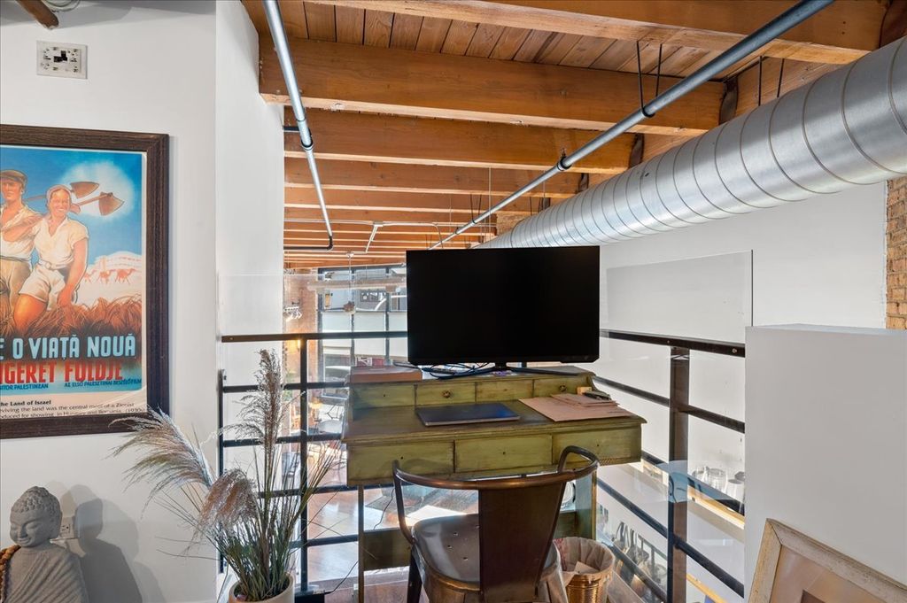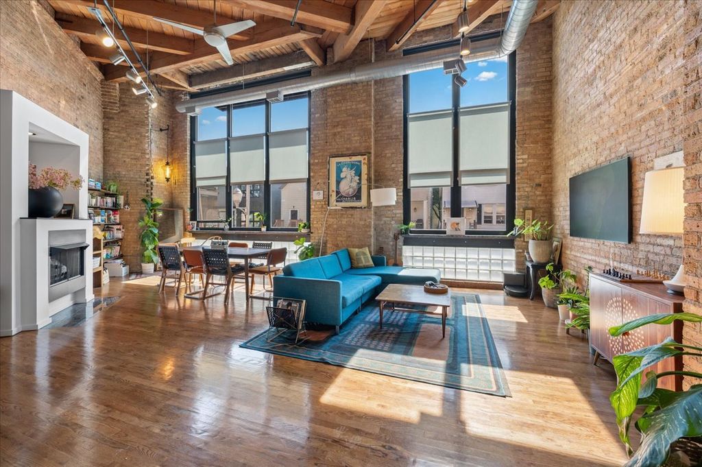 Looking for a loft that checks every box and turns heads? Welcome to this gorgeous 2 bed / 2 bath corner loft in a boutique elevator building where history and modern style collide. Word on the street is that this former perfume factory once filled the neighborhood with fragrance - today, it's all about character and comfort. Step inside and be wowed by 16-foot timber ceilings, exposed brick, and oversized windows that flood the space with natural light. The kitchen makes a bold statement with its labradorite toned cabinetry, a playful homage to the Blue Line, injecting richness and personality into the home. White quartz counters, stainless steel appliances, and a spacious island perfect for entertaining round out the design, opening seamlessly to the dramatic living and dining area. Anchored by a fireplace and overlooking quiet St. George Street, it's the perfect backdrop for both entertaining and everyday living. Both bedrooms are generously sized, each offering two closets including a walk-in. The lofted primary suite spans the entire second floor with its own bath and flexible space for an in home office. And here's the kicker: this unit sits in the corner of the building with no neighbors on either side, giving you unmatched privacy in a vibrant community. Additional highlights include in-unit laundry, updated bathrooms, 2 heated attached garage parking spots (1 owned & 1 leased at $120 / month), and a location that puts you steps from the Blue Line, Logan Square and Bucktown's best restaurants, bars, shops, and the 606 Trail. This isn't just a home - it's a showstopper loft with a story as unique as its design.