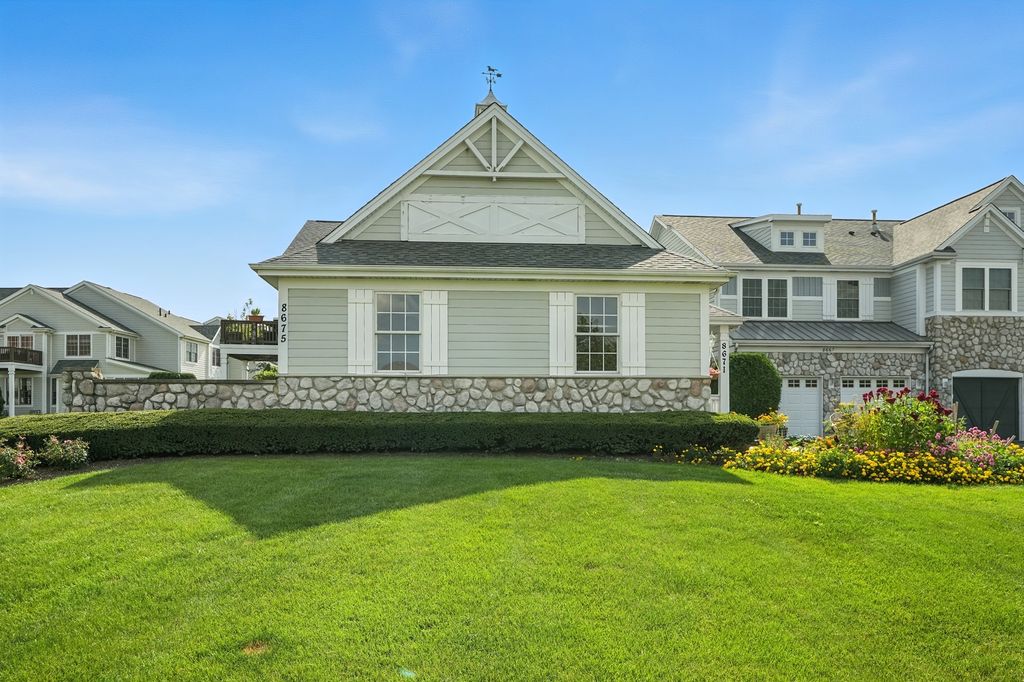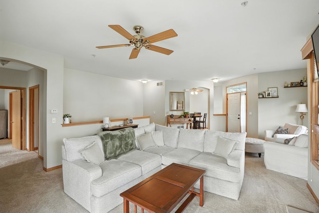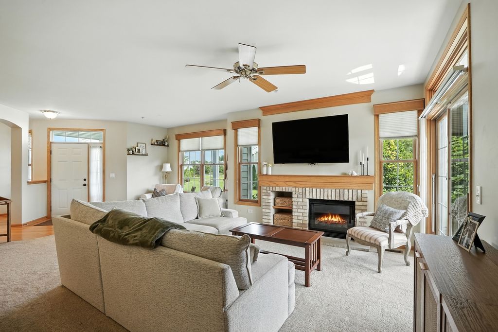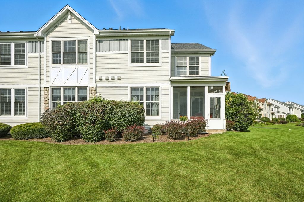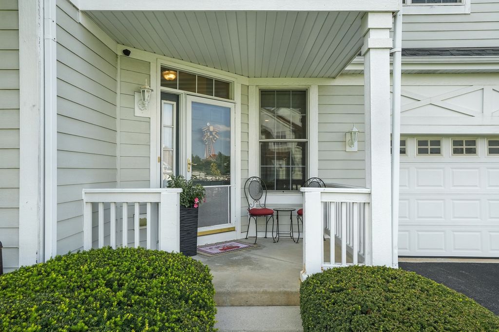 This beautifully presented ranch-style townhome in Windy Hill Farm is a rare find, featuring a spacious end unit layout with convenient single-level living. The property consists of two bedrooms and two full baths, with 9 ft ceilings throughout the main floor. The bright living room includes a gas log fireplace, and there's a formal dining area with an updated fixture. The large eat-in kitchen showcases hardwood floors, canned lighting, granite countertops, a breakfast bar, a ceramic tile backsplash, and new stainless steel appliances. The master suite is spacious, offering a walk-in closet and an updated private bath with double sinks, neutral ceramic tile floors, and a recently remodeled walk-in shower. A nicely sized spare bedroom and an oversized guest bath with neutral ceramic tile complement the living space. Additionally, the main floor laundry includes a sink and storage, making daily chores easy. The full unfinished basement provides ample storage or the potential for future living space, and the 2-car attached garage adds convenience. Outside, there's a serene screened-in patio with a ceiling fan, perfect for enjoying morning coffee or evening sunsets. Recent upgrades include a new AC unit (2020), a new furnace (2015), a new water softener (2021), and new kitchen appliances (stove, microwave, and dishwasher in 2023; refrigerator in 2018). All roofs were replaced between 2018 and 2021, and new driveways have also been added. This move-in ready townhome is available for immediate possession, making it a must-see before it's gone!