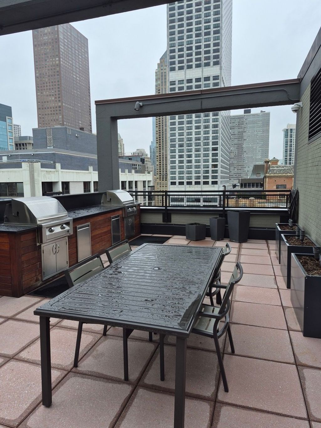 Highly desirable boutique bldg. E of Michigan Ave, right behind Water Tower. Sunny spacious SW corner 1 bdrm w/great floorplan. Upgraded granite kitchen, maple cabinets,SS appl. and hardwood flooring through out. Blinds will be either replaced or a credit will be given at closing. Heat, air, basic cable, Internet & gas included in HOA. Gorgeous Rooftop deck w/skyline views, gas grills & flowers. Remodeled lobby and has 24hr Doorman.