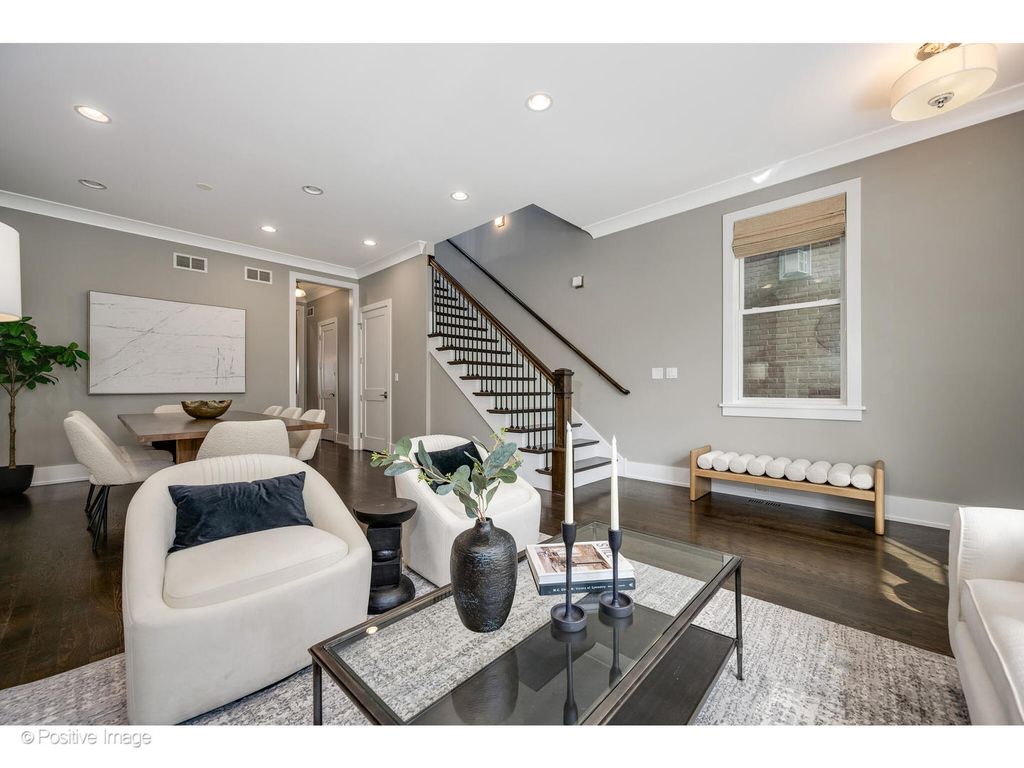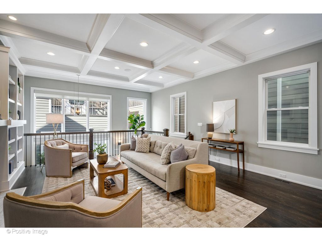 Thoughtfully designed and pristinely kept, this 4000 SQFT, two-story single-family home is located on a quiet, tree-lined street in the sought-after Burley School District in West Lakeview. Clean lines and sophisticated detailing create a neutral, yet elegant design throughout this incredible home. The graciously sized living room welcomes you home and features a gas fireplace with marble surround and large, picture windows ushering in an abundance of natural light. The large dining area can easily accommodate a large dinner party, making this shared living/dining space the perfect place to entertain. A conveniently located powder room is located just off the dining room, across the hall from a huge pantry. The cook's kitchen is a warm and inviting space to gather, entertain, cook, and relax. It features Sub-Zero, Wolf, and Bosch appliances, custom 42" cabinets, gorgeous countertops, an oversized island with breakfast bar, and a breakfast nook with a built-in banquette. Just off the kitchen is a family room, clearly delineated by coffered ceilings and a wall of built-ins with a cozy, gas fireplace. The backyard is easily accessible from the family room and offers a brick patio. Above the detached, 2-car garage is a grand roof deck with pergola, a fireplace, and ample space to relax and enjoy the sunshine. Atop the staircase on the second level, three large skylights flood the space with warm, natural light. Three bedrooms occupy this level including a sumptuous primary suite with cathedral ceilings, two walk-in closets, and a luxurious, spa-like ensuite bath with heated floors, a steam shower, separate soaking tub, dual vanity, private commode. The secondary bedrooms both have ample closet space and a Jack-and-Jill bath. A laundry room with oversized Samsung washer/dryer, sink, cabinetry, and counterspace completes this level. A recreation room in the fully finished lower level is yet another space to entertain or relax. It offers a wet bar with built-in cabinetry, tiled backsplash, wine fridge, and a sink. Two large bedrooms with a Jack-and Jill bath, an additional half bathroom, and storage can also be found on the lower level. 1712 W Fletcher is situated within Chicago's West Lakeview neighborhood within close proximity to several parks and playgrounds, restaurants, gyms, grocery stores, and public transportation. Welcome home!