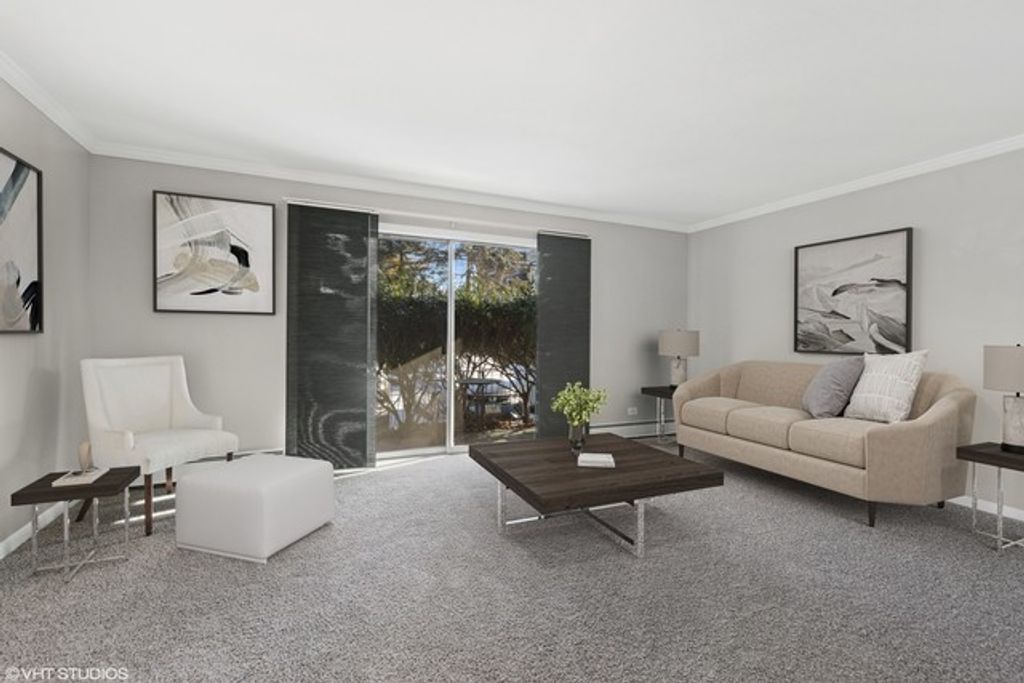 Amazing value with an enviable central location in this updated two bed, 1 AND 1/2 bath condo in La Grange. This home was recently repainted and new carpeting. Plenty of room in the large living room which opens up onto a private patio. The nicely-sized kitchen has generous cabinets and a large island which can accommodate three stools as well as room for a small eat-in table and chairs. The spacious primary bedroom has a southern exposure and is large enough for a king-sized bed and bedroom furniture. The second bedroom can also be used as an office. The full bath is accessed by both bedrooms while the primary bedroom has an additional half bath which was just updated with new quartz countertops and fixtures. This condo comes with its own private patio as well as a parking space and a large storage room. Just steps to the Stone Avenue Metra station and a pleasant stroll to the best of downtown La Grange--voted one of Chicagoland's top suburban downtowns. This is a non-smoking building and rentals are not allowed.