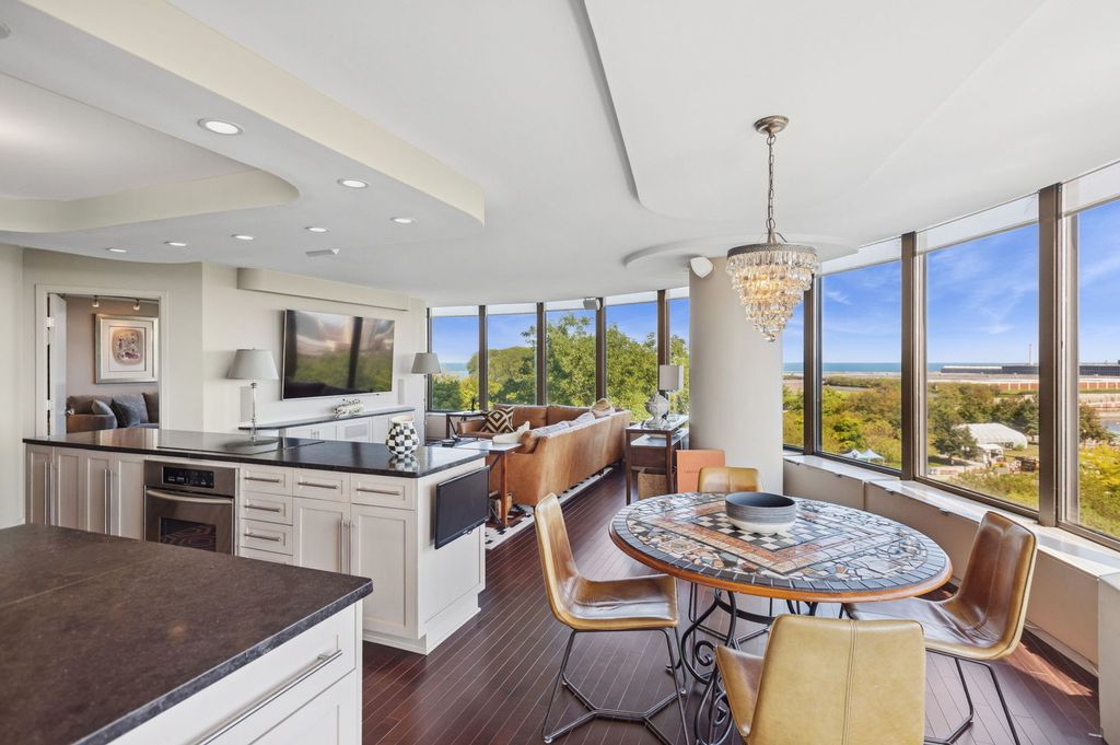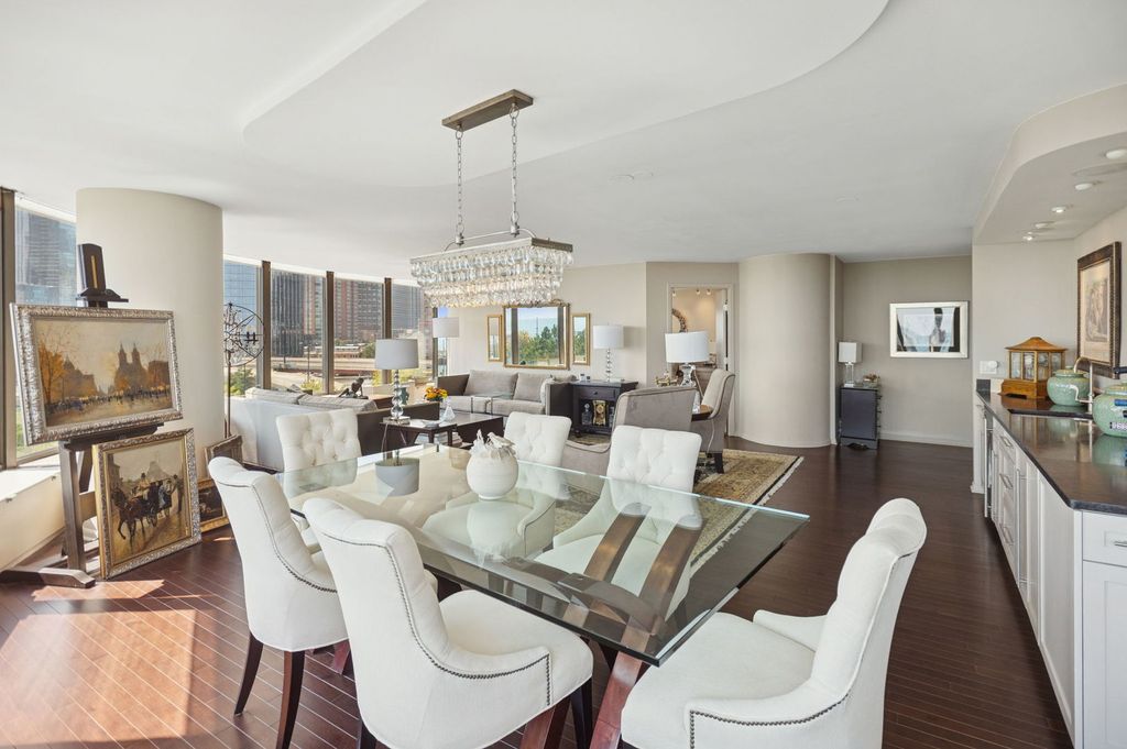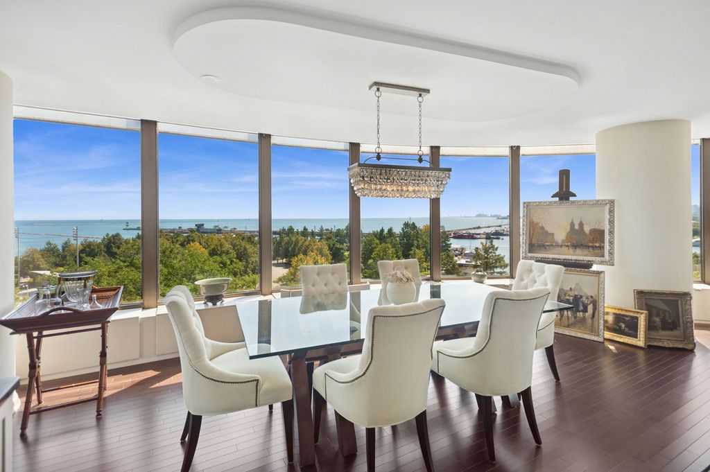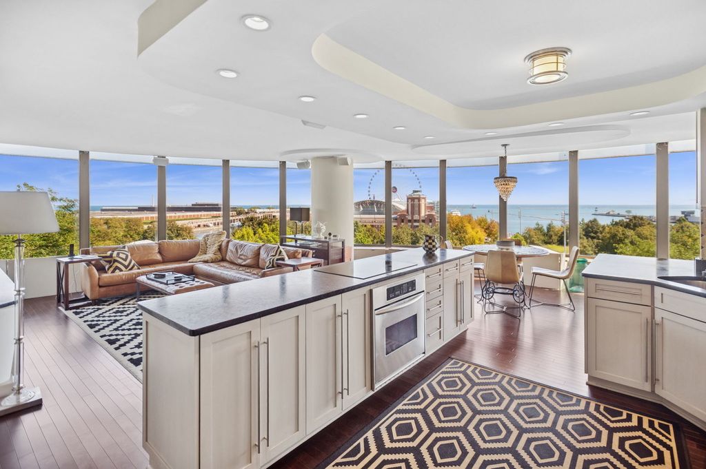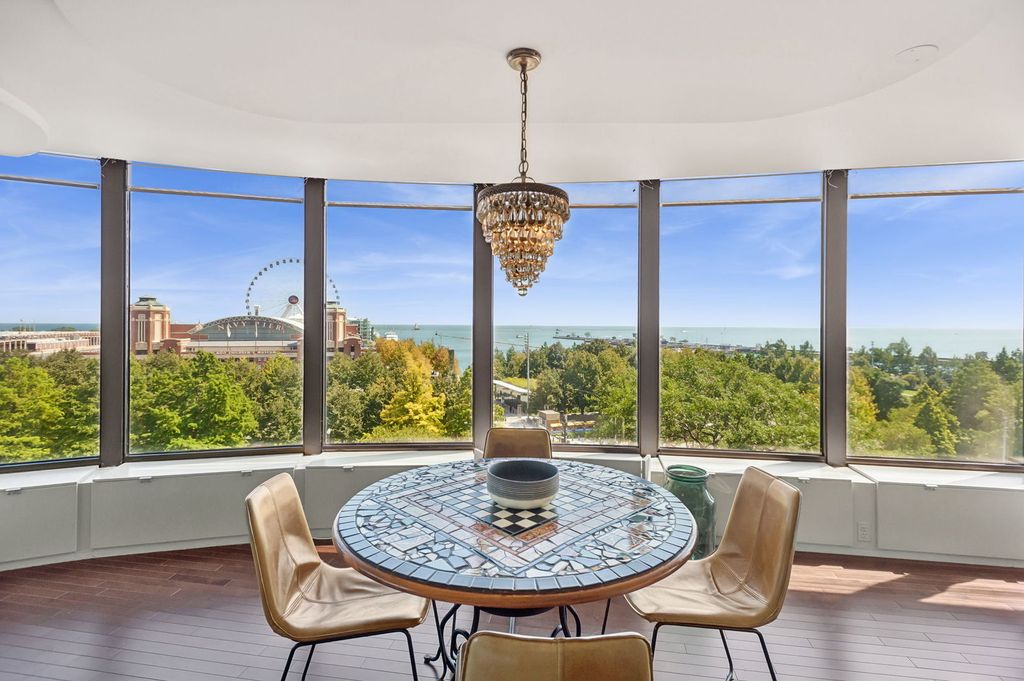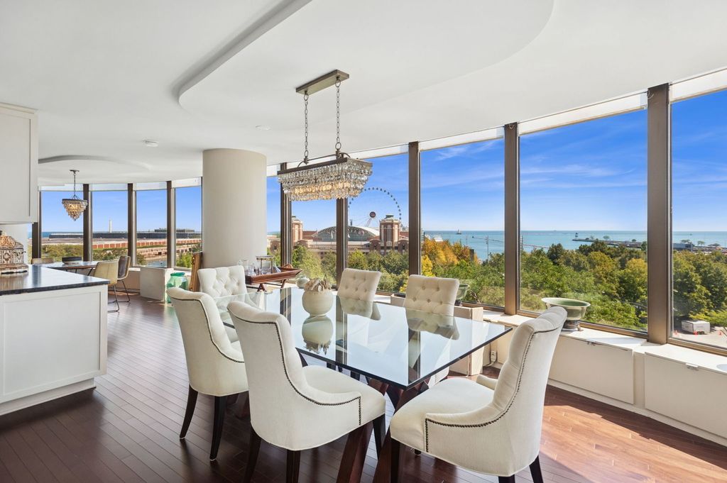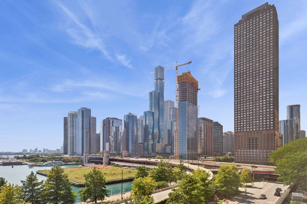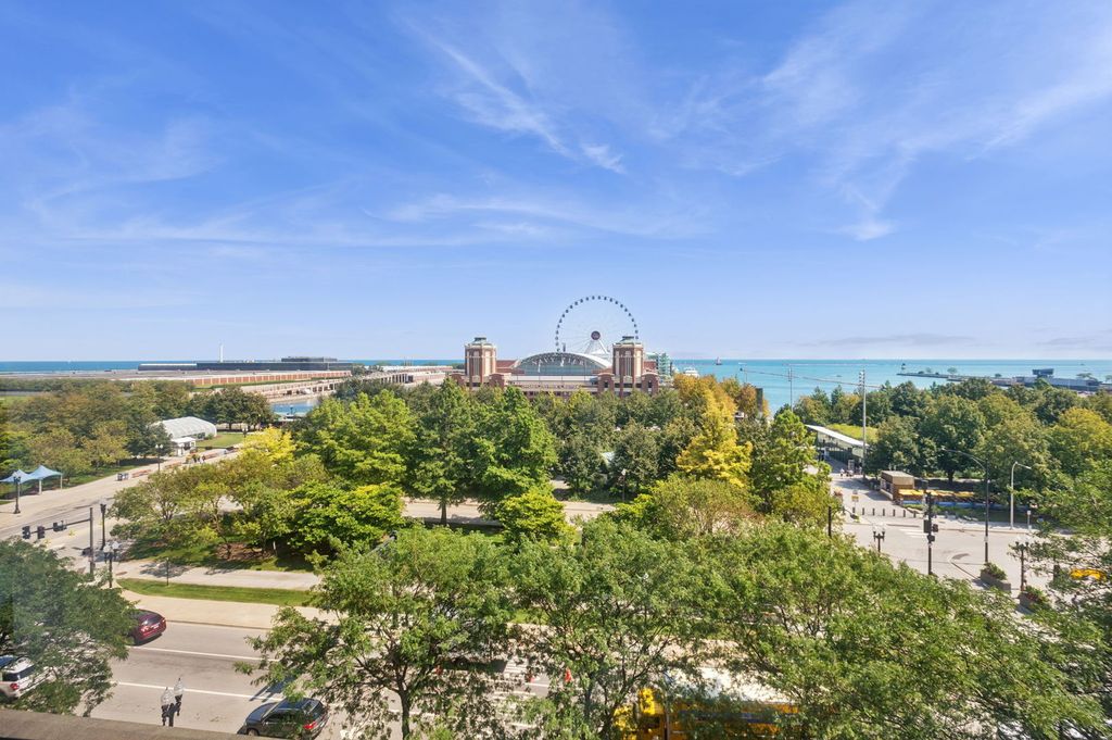 Rarely available, one-of-a-kind, approx. 2300 sf double corner: meticulous details and finest quality throughout, unobstructed epic panoramic 300-degree views of lake, Navy Pier, City, fireworks, DuSable/ Lake Shore Drive, city skyline, and vistas of three States. This impressive split floor plan has stained maple wood floors throughout. Elegant soffits grace the main room and add a subtle, multi-level look with the most sophisticated chandeliers and light fixtures. State-of-the-art kitchen with stainless steel appliances: Thermador fridge, induction cook top, KitchenAid stove, microwave, and dishwasher. Honed granite countertops with a stone backsplash give an elegant touch that flows throughout the property. There is an additional bar area with stone counter, sink, and wine chiller. Two luxurious bathrooms with marble showers and floors. Plenty of closet space, elegant light fixtures, custom electric blinds throughout, in unit front loading Bosch washer/dryer. This is a 5-star full amenity building, which features 24 hr. doormen, 2.5-acre park on 3rd floor with lagoon/waterfall, indoor and outdoor pools, health club with steam/sauna, racquetball/basketball court, barbecue area, outdoor playground, indoor children's playroom, indoor dog run. Walk to Navy Pier, Michigan Avenue, restaurants, shops, museums, dog park, and a lot more. A must-see!