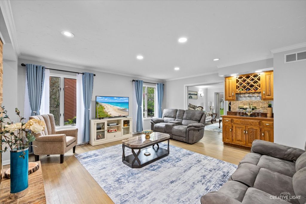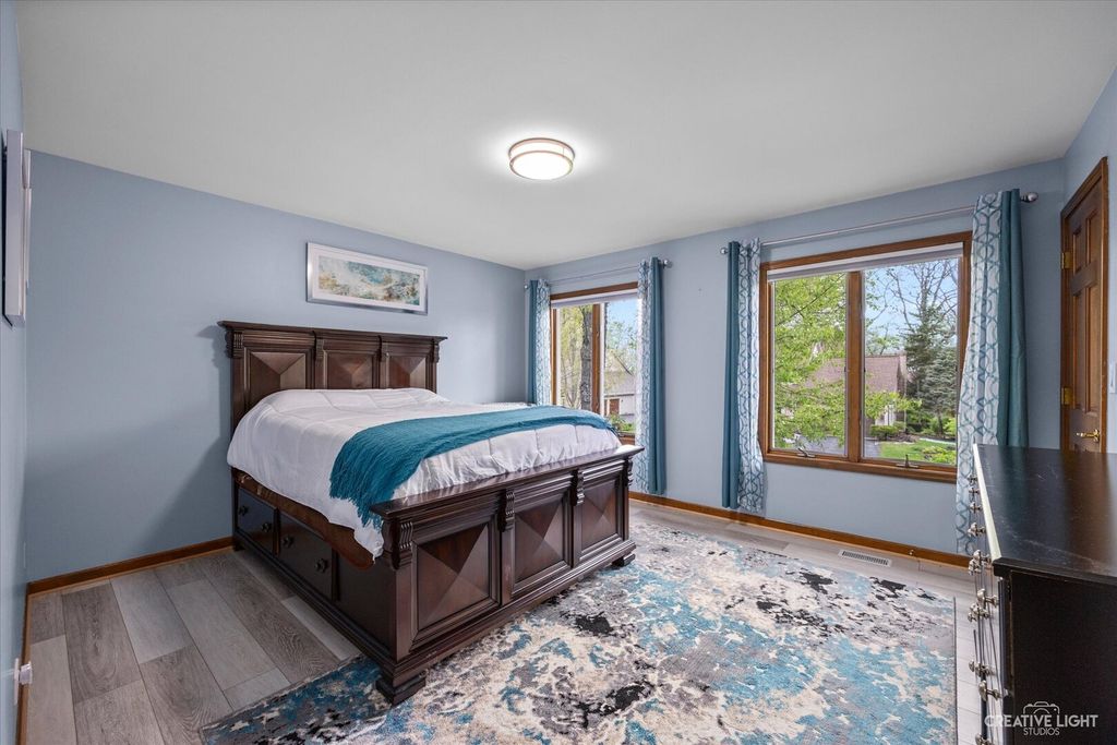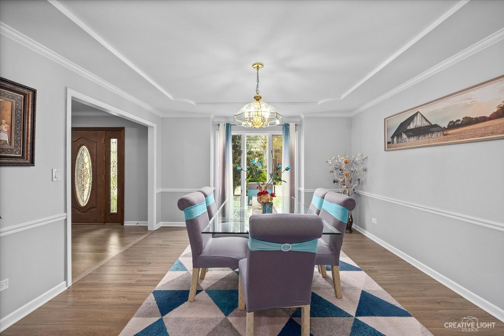 Welcome to this spacious home nestled in the established Forest Trails neighborhood, just blocks from Wheaton Academy. Step into a two-story foyer and enjoy the beauty of newly refinished hardwood floors and new luxury vinyl plank flooring. The large kitchen offers ample cabinet and counter space, a butler's pantry, and a breakfast bar for dining. The living room features a double-sided fireplace, while the other side opens to a bright, light-filled area-ideal for a reading nook or additional seating. Pocket doors can be closed for privacy or left open to flow seamlessly into the family room. Upstairs, the expansive primary suite boasts a large walk-in closet and a large bathroom with a soaking tub and separate shower. The serene backyard is beautifully landscaped with mature greenery and a paver patio-perfect for relaxing or entertaining. The basement includes an additional finished bedroom with a closet, while the remaining unfinished space offers endless possibilities.