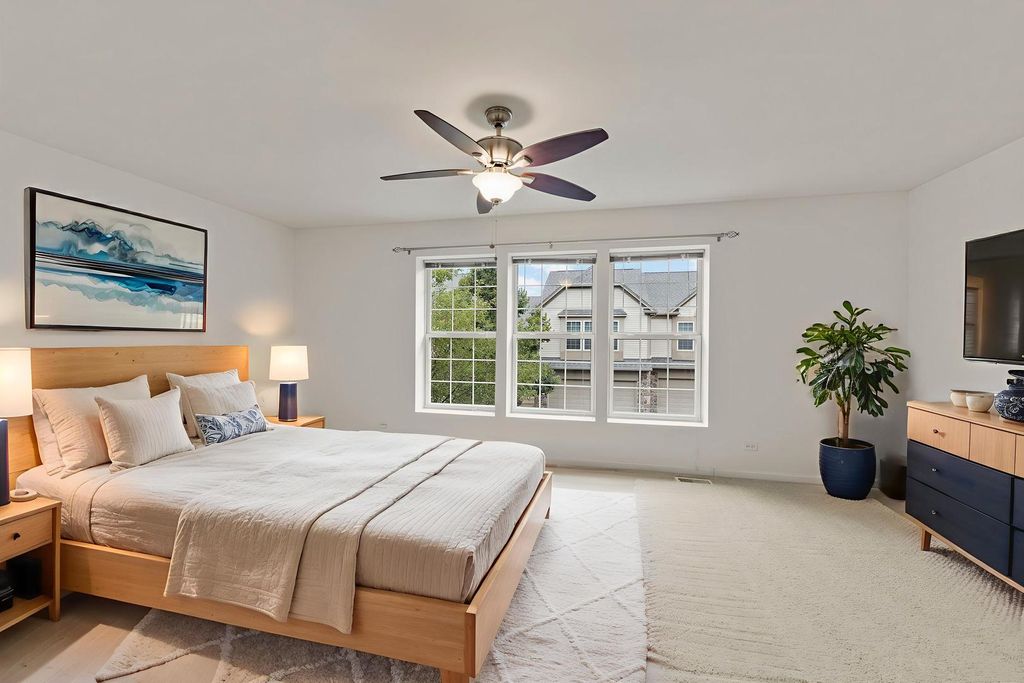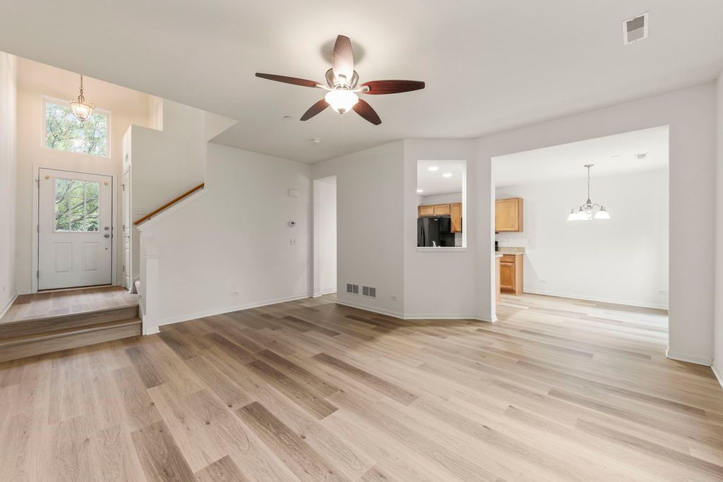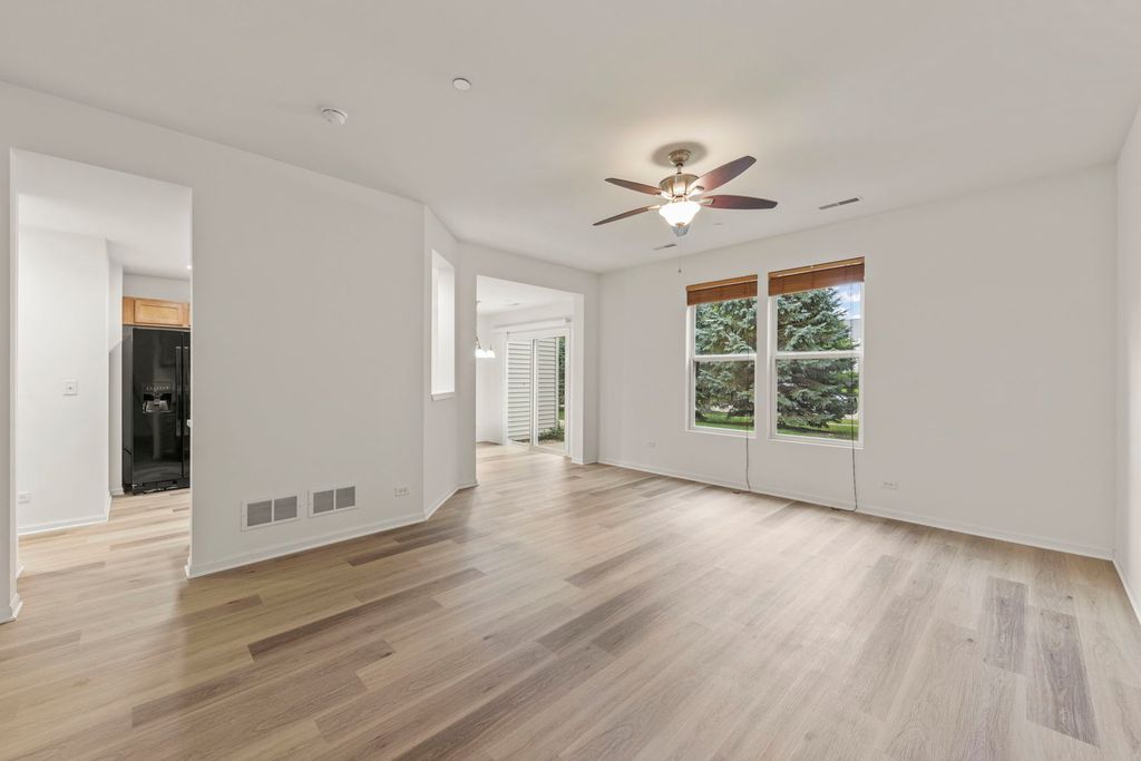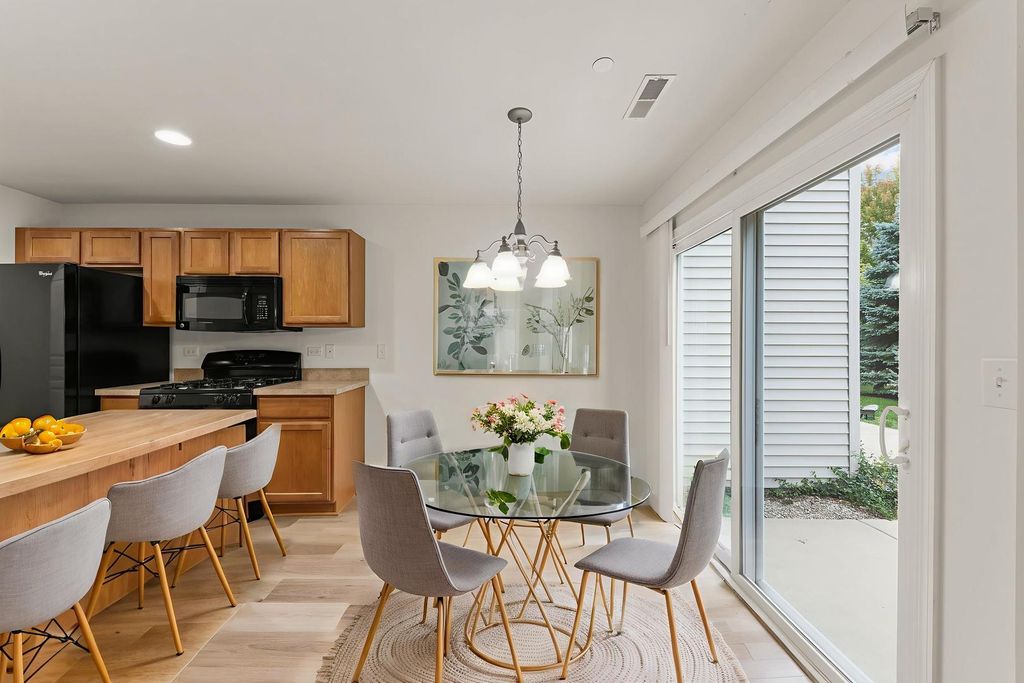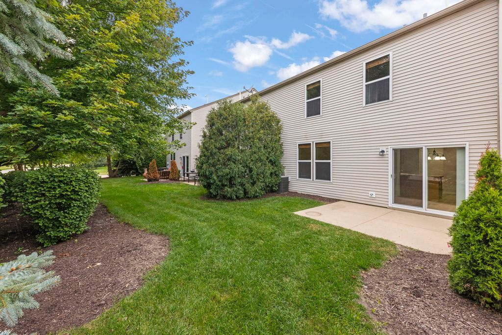 Welcome home to this move-in-ready townhome in the highly desirable Autumn Creek community of Yorkville. Offering 2 bedrooms plus a loft, 2.5 baths, and 1,520 square feet of living space, this property blends comfort, style, and convenience in one. The inviting main level showcases 9-foot ceilings and oversized windows that fill the space with natural light, highlighting the fresh paint, brand-new carpet, and luxury vinyl plank flooring throughout. The open-concept design features a spacious living room that flows seamlessly into the dining area, creating a flexible space for both everyday living and entertaining. The kitchen is equipped with abundant cabinetry, black appliances, and ample counter space, with a sliding glass door nearby that leads to a private patio overlooking green space-perfect for enjoying quiet mornings or unwinding in the evening. Upstairs, the primary suite is designed to be your retreat with a large walk-in closet and private en-suite bath complete with dual sinks and a walk-in shower. The second bedroom and versatile loft area provide plenty of options for guests, work, or hobbies, and a full hall bath serves these spaces with ease. A second-floor laundry room makes daily chores a breeze. Additional highlights include a freshly updated interior, an attached two-car garage, and low-maintenance living with exterior upkeep, landscaping, and snow removal included. Autumn Creek residents also enjoy walking paths, playgrounds, and open green spaces, all within a community that's just minutes from Yorkville and Oswego schools, shopping, dining, and recreation. With thoughtful updates and a prime location, this townhome offers the perfect balance of modern living and neighborhood charm.