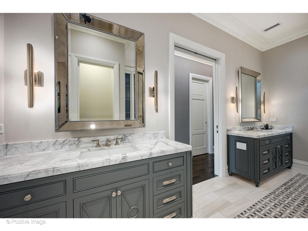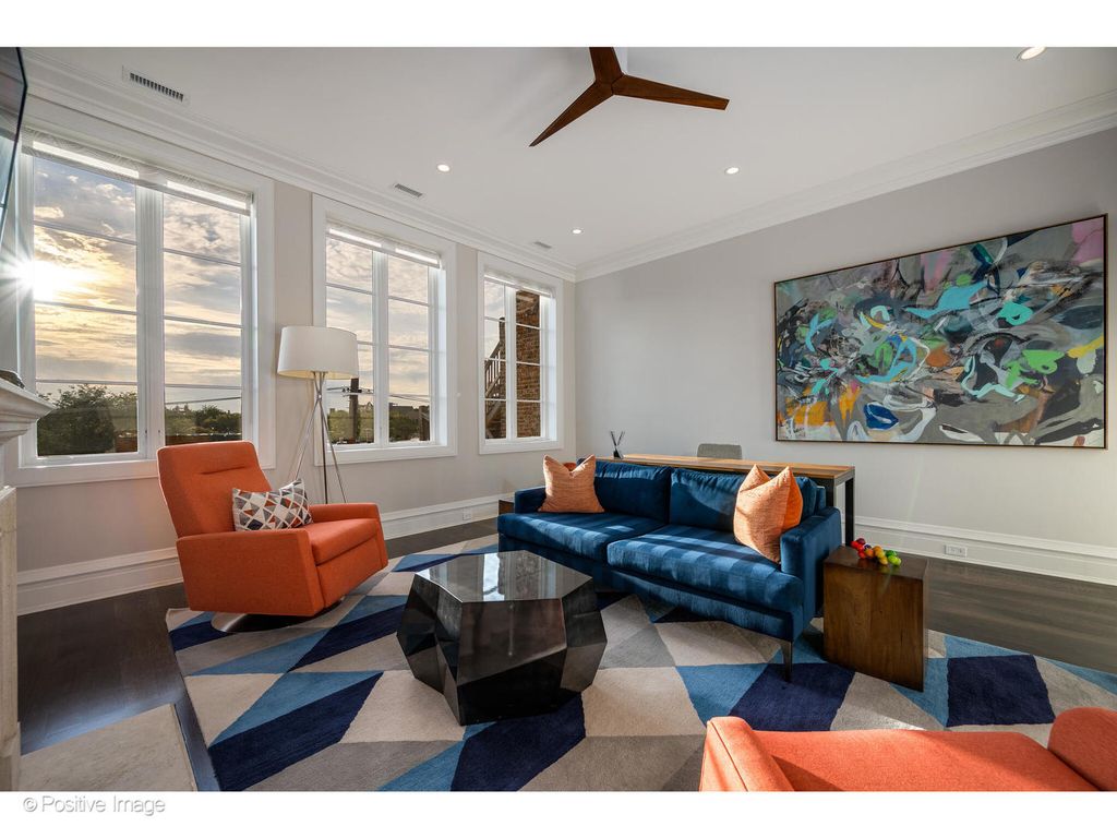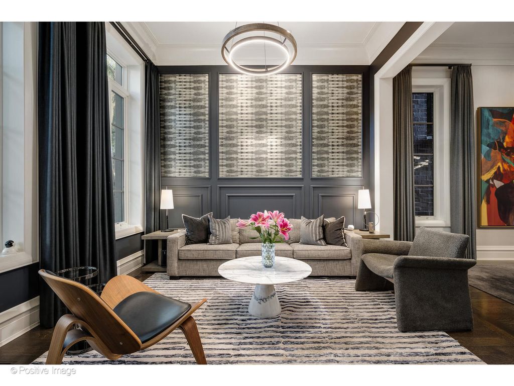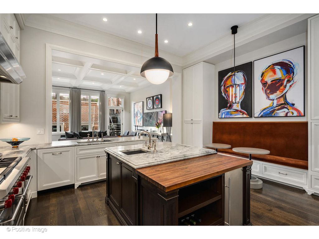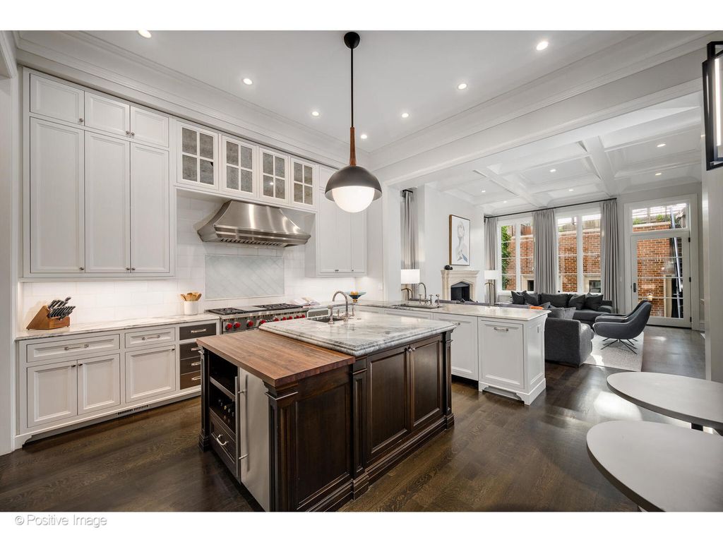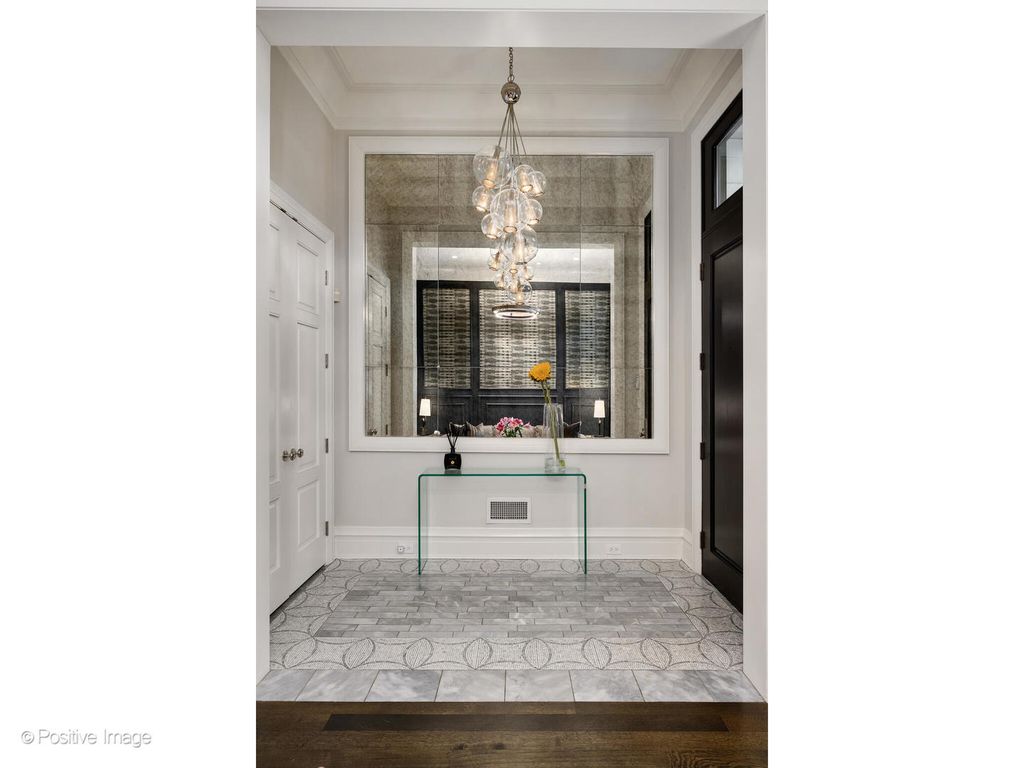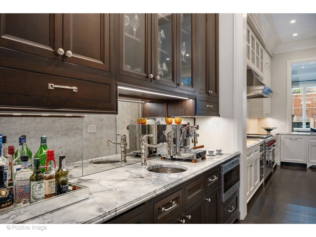 1720 N. Mohawk is a showpiece residence situated on one of East Lincoln Park's most coveted streets. Conceived by award-winning LG Development and masterfully designed by Dan Rak, known for his classically contemporary interiors that are precisely tailored and seamlessly executed. This remarkable 6,000 square foot home with six bedrooms achieves the perfect balance of classical architecture, modern comfort, and high design. From the moment you enter, the soaring 12-foot ceilings and grand custom staircase set the tone. The second and third floors feature impressive 10'6" ceilings, while even the lower level offers over 9 feet of ceiling height, ensuring volume and light throughout every level of the home. Every element speaks to exceptional craftsmanship, exquisite trim and millwork, custom built-ins, rift- and quarter-sawn hardwood flooring, elegant hardware, and dramatic fireplaces. Expansive windows frame tree-lined east views, while a proper entry gallery leads to a paneled living room and adjoining dining room anchored by a statement linear chandelier, creating a refined atmosphere for both everyday living and formal entertaining. At the heart of the home is a chef's kitchen designed for both beauty and performance: top-of-the-line cabinetry, professional-grade appliances, an oversized island, and a butler's pantry. The kitchen opens seamlessly to a large eat-in area and a sun-filled family room with coffered ceiling, fireplace, and direct access to private outdoor spaces, including a roof deck with pergola over the 2.5 car garage. The second-floor hosts two ensuite bedrooms and the primary suite, a serene retreat with dual walk-in closets, fireplace with custom built-ins, and a spa bath clad in marble. This sanctuary includes radiant heated floors, polished nickel fixtures, a double vanity, steam shower, and soaking tub. Multiple laundry rooms provide convenience on multiple levels. A skylit staircase brings you to the top level, where a flexible great room with a wet bar opens to a large roof deck with private tree top views. Additional rooms include a private office, extra bedroom, and bath. The oversized windows throughout the home allow an abundance of sunlight. The lower level offers an extraordinary mix of style and function, with a media room with bar, a gym, and a sixth ensuite bedroom. The home was intelligently designed elevator-ready, with stacked closet space available for future installation if desired. The exterior is secured with a 6-foot wrought iron fence, snow melt system, Doorbird video doorbell, irrigation & custom planter boxes. This location cannot be beat, and no detail has been overlooked at 1720 Mohawk-this residence is the epitome of refined Chicago luxury, designed for grand entertaining as well as intimate daily living.