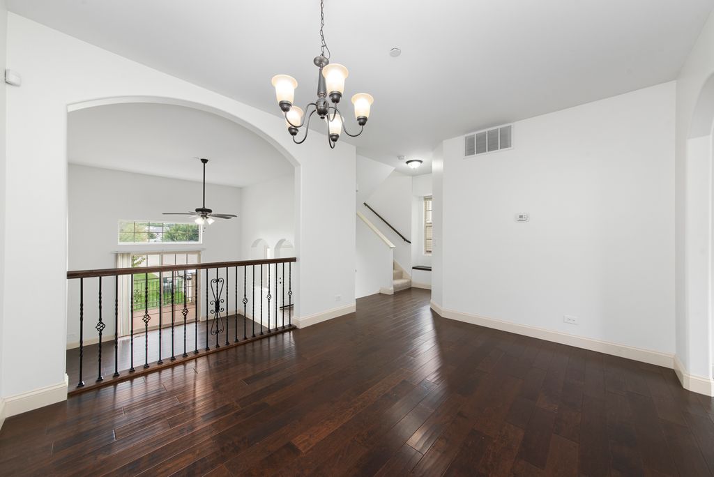 Welcome to this beautifully updated end-unit townhome that combines generous space, modern finishes, and an unbeatable location. With 3 bedrooms, 2 full baths, 2 half baths, and over 2,400 square feet of living space, this home offers room to live, work, and entertain with ease. The family room makes a striking first impression with its soaring ceilings, warm fireplace, and durable hardwood floors that flow throughout the main level. The open-concept kitchen is designed to impress with 42" cherry cabinets, granite counters, and stainless steel appliances, while the adjoining dining area creates the perfect setting for everyday meals or gatherings. A conveniently located powder room rounds out the first floor. Upstairs, the private primary suite provides a retreat of its own with a large walk-in closet and a spa-like bath featuring dual sinks, framed mirrors, and a spacious walk-in shower. Two additional bedrooms and a full hall bath complete the upper level, offering plenty of flexibility for family, guests, or a home office. The finished basement adds valuable living space, ideal for a recreation room, fitness area, or media space, complete with an additional half bath and abundant storage options. Fresh paint throughout enhances the home's move-in-ready appeal, while the oversized two-car garage provides ample parking and storage. Step out onto your private balcony to relax and take in serene pond views-perfect for morning coffee or winding down at the end of the day. Located just minutes from shopping, dining, recreation, and only 2.5 miles to the Metra station, this home delivers the perfect blend of comfort and convenience in a peaceful setting.
