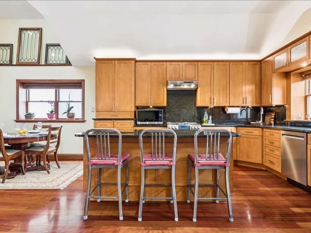 Set on an oversized 8,000 sq. ft. lot in Chicago's Norwood Park, this 4-bedroom, 4-bathroom home combines comfort, character, and functionality in a thoughtfully designed layout. Craftsman woodwork, custom lighting throughout, and heated Brazilian-cherry hardwood floors adds a warm, timeless feel. At the heart of the home is a large chef's kitchen with an adjoining dining and living room area... the perfect place to cook, share meals, and entertain, and features granite countertops and stainless steel appliances. The open concept showcases the Brazilian cherry hardwood and slate tile floors throughout. Vaulted ceilings and abundant natural light create an airy, inviting atmosphere. The primary suite is a true retreat, offering a spacious walk-in closet and a spa-style bathroom with soaking tub and walk-in shower. A convenient main-level in-law suite provides privacy and versatility for guests or multigenerational living. The family room is anchored by a wood-burning fireplace and a built-in wet bar, making it ideal for movie night, or hosting gatherings. Outdoors, the oversized lot offers endless possibilities with space to garden, enjoying the heated pool, or relaxing on the deck. A workshop and loft area presents a perfect creative space and ample storage. The property is completed with a 2-car garage and carport granting generous off-street parking. Don't miss this rare opportunity to own a meticulously crafted home in Norwood Park. A must-see charmer in one of Chicago's most desirable neighborhoods. Close to Norwood Park Metra stop, I-90 and O'Hare.