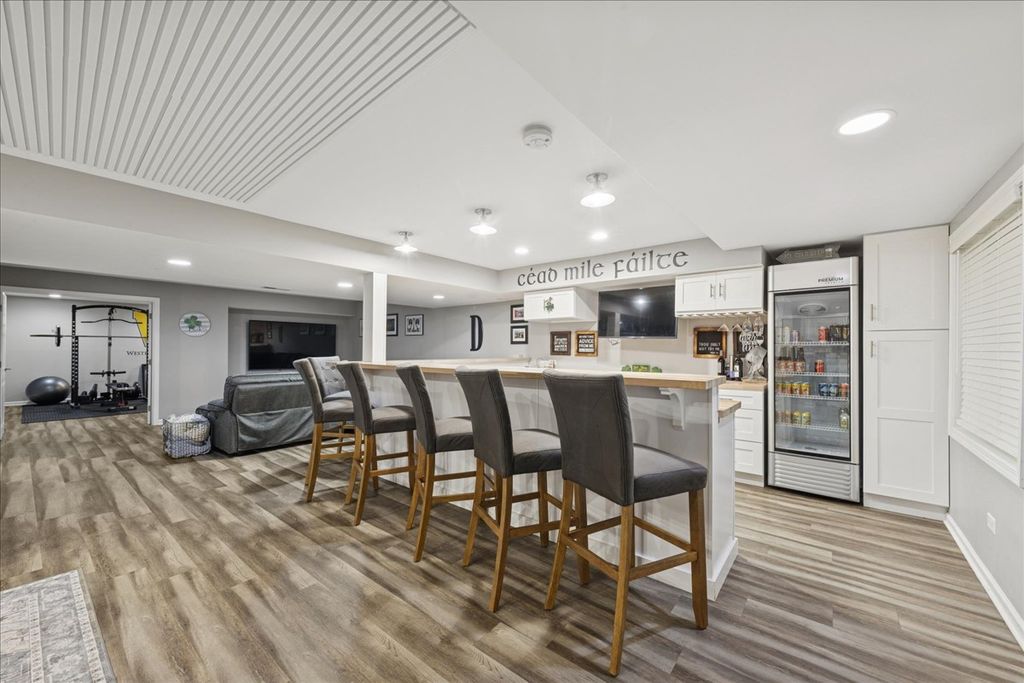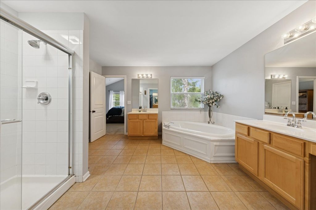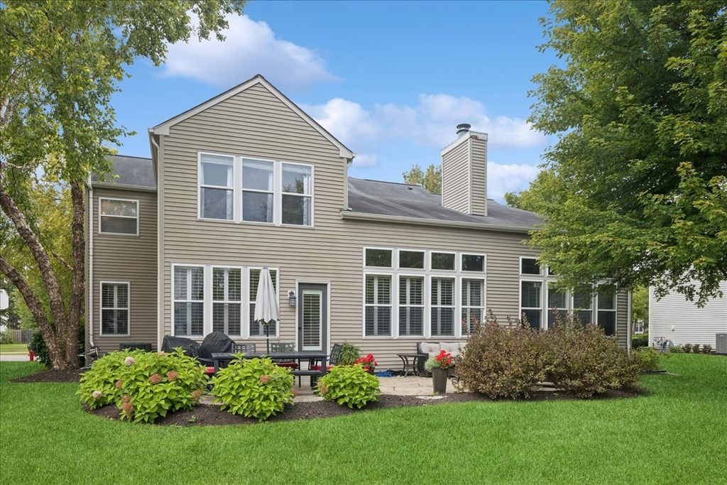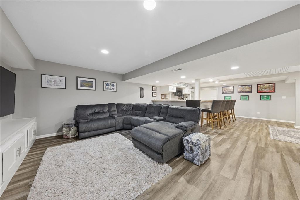Updated and upgraded North Plainfield home in Kensington Club pool/clubhouse community boasts open floor plan. Gourmet kitchen w/42" white cabinets, granite counter tops & stainless steel appliances. Dual sided fireplace separates large family room from separate sunroom, both w/vaulted ceilings. Formal living/dining rooms + 1st floor den. Hardwood flooring & plantation shutters throughout most of 1st floor. Dual staircases lead to 2nd floor w/vaulted primary suite. Large primary bath w/dual vanities, separate soaking tub & shower + massive walk-in closet. Good sized bedrooms share hall bathroom. Full, finished basement is an entertainer's dream features a large recreation room, amazing bar w/glass front refrigerator wine chiller, dishwasher & ice maker, 5th bedroom/gym, game area w/built-in cabinets + oversized laundry room. LVP flooring throughout basement. 1st floor mud room w/access to 2 car garage has custom lockers + add'l laundry hookups behind wall. 9' 1st floor ceilings, newer HVAC. Big backyard w/stamped concrete patio & extensive landscaping. Plainfield North High School boundaries. Walking distance to pool & clubhouse w/fitness center & park/playground. Great location, convenient to everything including highways, shopping & restaurants.