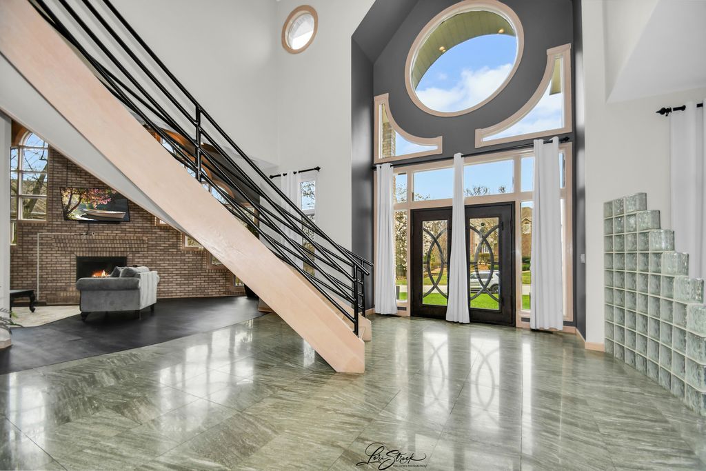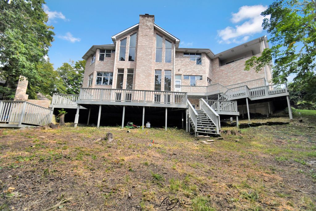 Take a look at this beautiful 7000 square feet of absolute luxury...situated in exclusive Abbey Woods Subdivision! You will enter this emmaculant 3 story home through its massive archway, flanked by copper doors and walk into the jaw dropping marble foyer; which is the venue to take in all the beauty and light of this amazing architectural design! Dramatic room features include beautiful curved and circular staircases, an amazing catwalk and soaring ceilings! There are 2 massive floor to ceiling wood-burning face-brick fireplaces offering warm center piece to the upper living room and the lower open recreational area. The enormous two story deck is the stage for an awesome view of Mother Nature which flanks the back yard grounds! This enormous deck can hosts large family gatherings or serve for cozy romantic evenings. The yard boasts beautiful tree-scape, a lovely light creek which is bridged to cross over to a sizable log cabin structure (a perfect man cave or she-shed). The owner has thoughtfully cleared an area of the backyard to easily accommodate your creative choices with the space. Even more...there is also a decorative pond just waiting for the addition of Koi fish and a large brick barbecue and fire pit for your relaxing enjoyment. The kitchen features double ranges, 2 dishwashers, granite counter tops, in island prep sink, and contemporary cabinetry. The master bedroom gives the feeling of being in a 5-star suite...featuring shaded skylights, covered private balcony and a master bathroom that will leave you breathless with its enormous walk-in shower, extra large center spa tub and there is a bidet). The huge master walk-in closet features lots of custom thoughtful cabinetry; The study is suitable for business, learning or it s library ready featuring sleek built in desk and shelving. (This room is an easy conversion to a 5th 1st floor bedroom). The lower level, which walks out to the beautiful grounds, is open and features separate family room and recreational areas which include an amazing bar with refrigerator, sink and keg dispensers. This is a must see...must have property! Incredibly priced for Abbey Woods! (All furnishings in property are all new and available for sale!). Schedule your showing today!