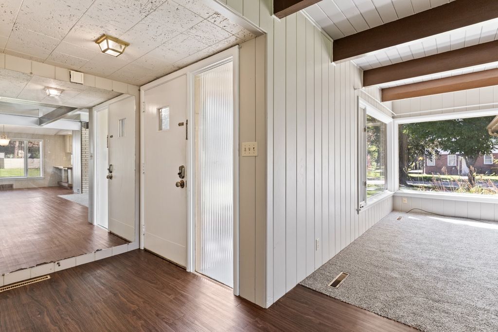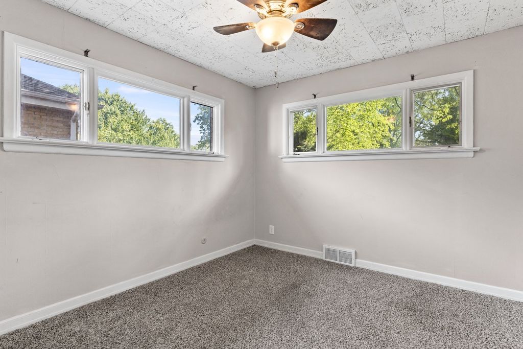 All brick Rockford ranch sitting on 2 lots in the heart of the city. Side load garage. Light & bright kitchen, stainless steel appliances, eating area. Many rooms freshly painted. Some new carpet. Beamed ceiling in living room with walls of windows. Mud room, rear breezeway leads out private rear yard, patio area.
