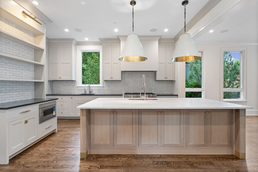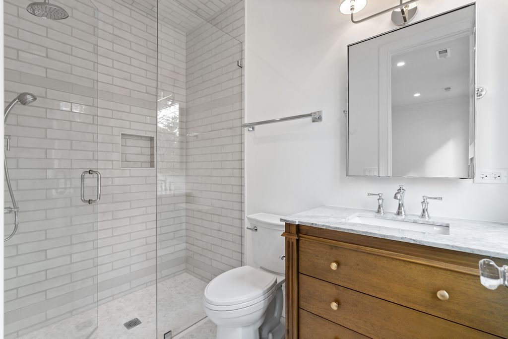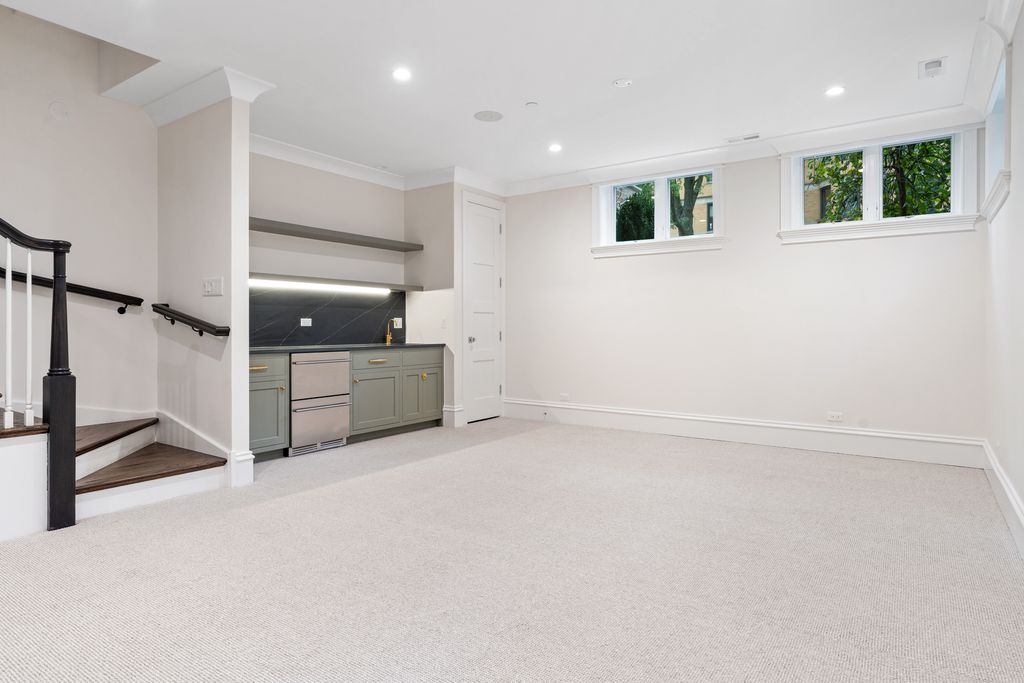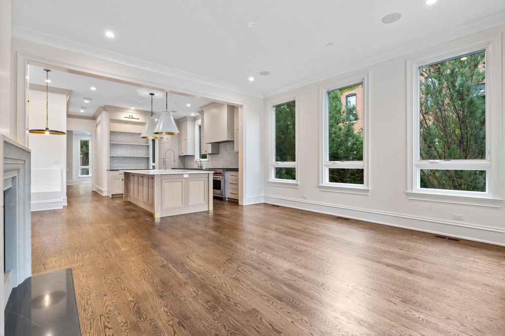 Stunning New Construction in the Southport Corridor. This brand-new 6 bedroom, 5.5 bath home blends timeless design with modern functionality in one of Chicago's most sought-after neighborhoods. A sun-filled living room with oversized windows and floor-to-ceiling built-ins flows into a chef's kitchen with custom cabinetry, Carrara marble island, subway backsplash, built-in banquette, and professional-grade appliances. The kitchen and family room open through sliding glass doors to a raised terrace with fireplace and direct access to the garage roof deck above the 2.5-car garage, creating effortless indoor-outdoor living. The second level features a gracious primary suite with walk-in closet and a spa-quality bath including heated marble floors, dual vanities, a cast-iron soaking tub, and a large steam shower with rain head. Two additional bedrooms with ensuite baths and custom closets, along with a full laundry room, complete this floor. The top level offers a flexible office/bedroom, full bath, and a lounge that extends to a partially covered roof deck with porcelain pavers. The expansive lower level includes a family/media room with wet bar and beverage center, a gym or flex space, guest suite with full bath, second laundry room, and radiant heated floors. Additional highlights include radiant-heated exterior front and rear steps, outdoor spaces on multiple levels, a mudroom with custom storage, designer lighting, and classic trim detail. Located on a prime Southport Corridor street, just steps from boutique shopping, award-winning restaurants, and the Brown Line, this home offers the perfect blend of elegance, comfort, and convenience.
