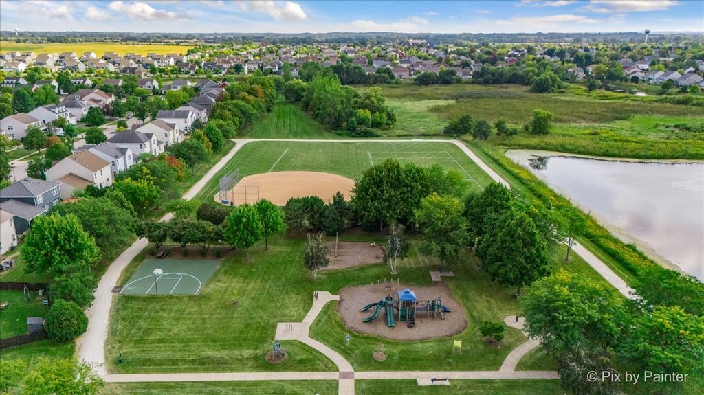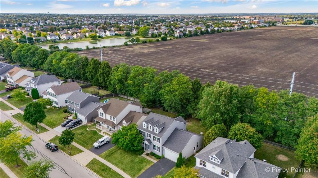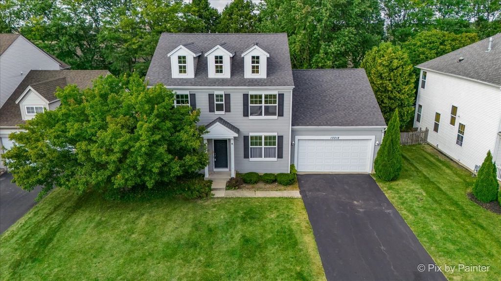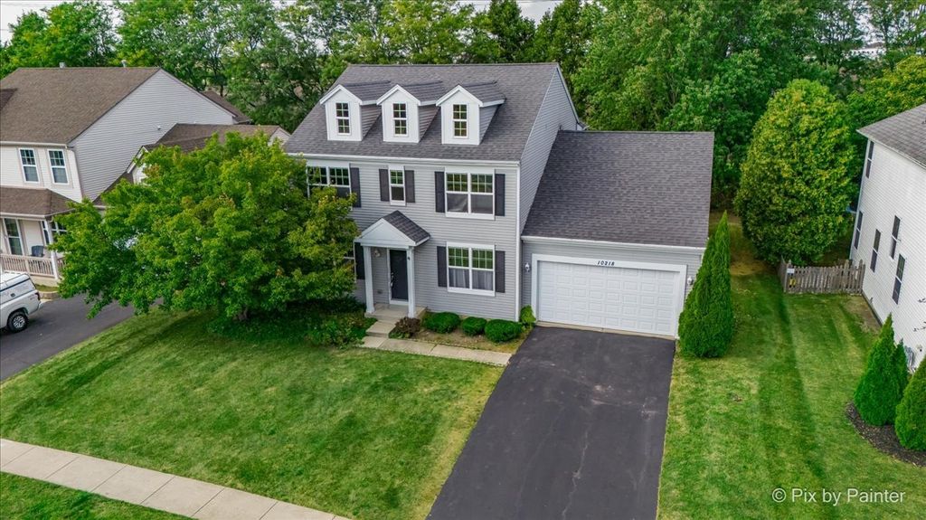 Welcome to this charming two-story home located in the quiet and much sought-after Heritage of Huntley subdivision in Huntley. Boasting over 2500 square feet of living space, this beautiful 5 bedroom, 2 1/2 bath Montclare model home is move-in-ready! The main floor of this lovely home highlights hardwood flooring throughout and features a bright and cheerful living room, a private dining room, a spacious kitchen, a large family room, and a desirable main floor bedroom. The updated kitchen features exquisite 42in cabinets, an eat-in breakfast bar, all stainless steel appliances, a separate casual eating area, and a closet pantry. The second floor features an inviting master bedroom with ensuite complete with double sink vanity, separate shower, a soaking tub, and a large walk-in closet. Three additional spacious bedrooms with sizable closets and a full bath complete the second story. The lower level includes an expansive unfinished basement ready to be completed with your ideas! Enjoy relaxing evenings with friends and family in the peaceful backyard. Conveniently located by the community playground and recreation park directly across the street. Close to upscale shopping, restaurants, and entertainment. Don't miss out on seeing this amazing property!