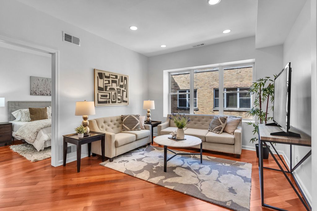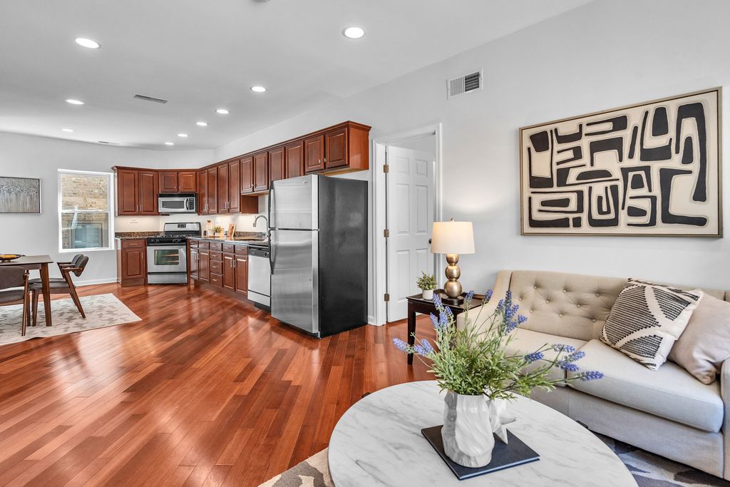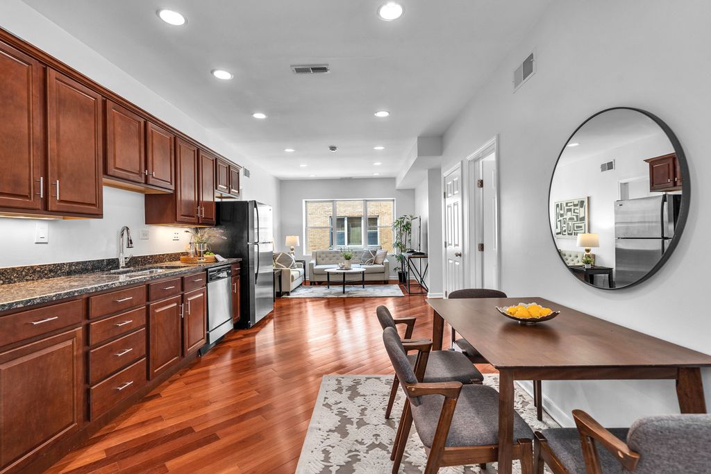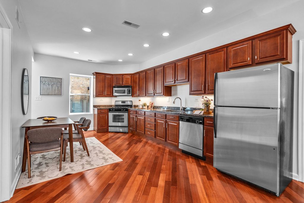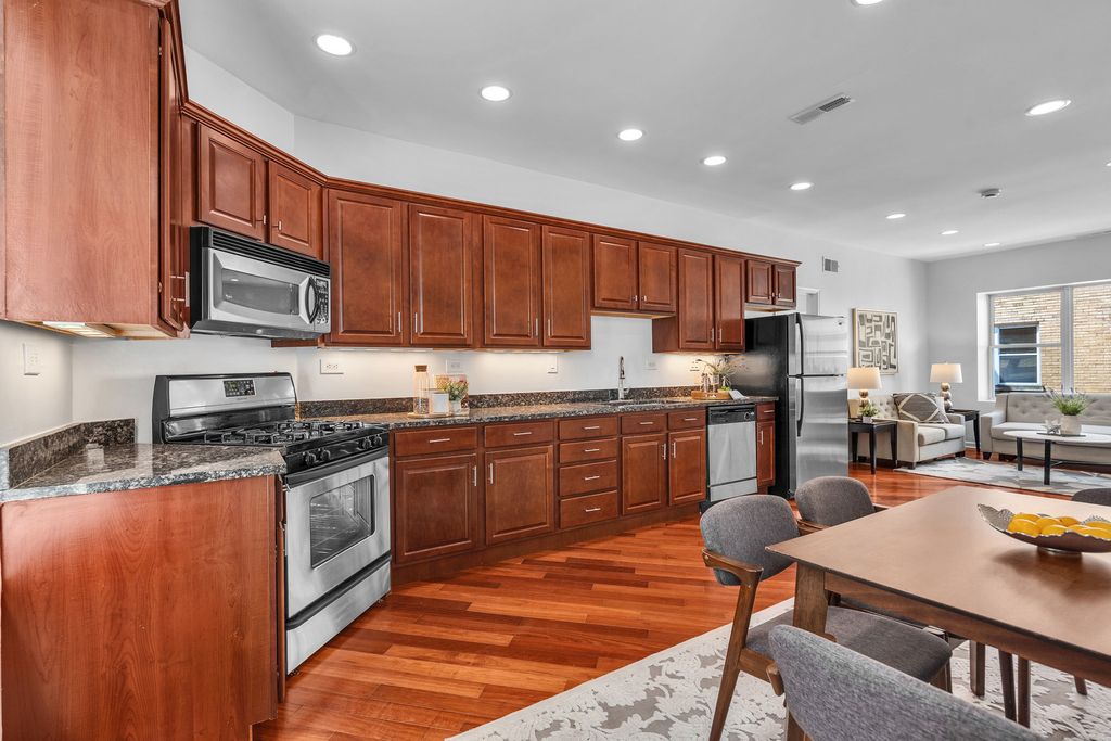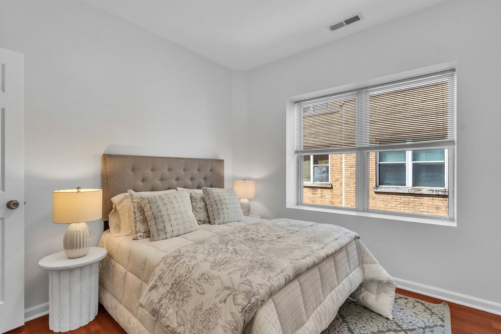 INVESTORS WELCOME! Location, Location, Location! Just 3 blocks to the Brown Line, around the corner from the Riverwalk, 6 blocks to North Park University, and 5 blocks to Northeastern University - all with low monthly HOA fees and low annual property taxes. This beautifully remodeled North Park condo offers 2 bedrooms, 1 bathroom, and a sun-filled courtyard view. The open-concept layout features gleaming hardwood floors, recessed lighting, and an oversized kitchen with 42" cabinetry, granite counters, stainless steel appliances, and a spacious eat-in area perfect for entertaining. The fully redesigned bathroom showcases modern luxury finishes. Enjoy ultimate convenience with in-unit washer/dryer, central air, a separate furnace, and a high-efficiency tankless water heater. Building amenities include a dedicated storage room, bike room, and pet-friendly policies. Walkable to scenic parks, trendy dining, shopping, and top-rated schools including Von Steuben & Northside Prep. Minutes to I-94 and multiple universities. Unit can be rented - making it ideal for both homeowners and investors. Please note: no parking spot is included, but ample street parking is available nearby for residents and guests. This is convenient city living in an unbeatable North Park location - with low carrying costs that make it a smart buy.
