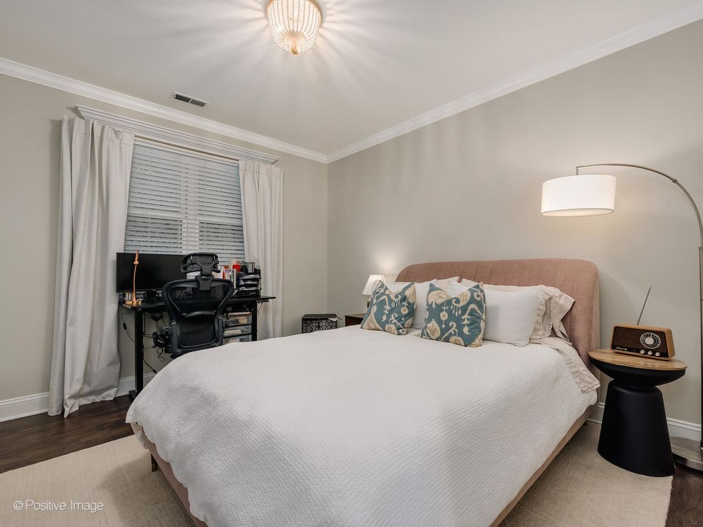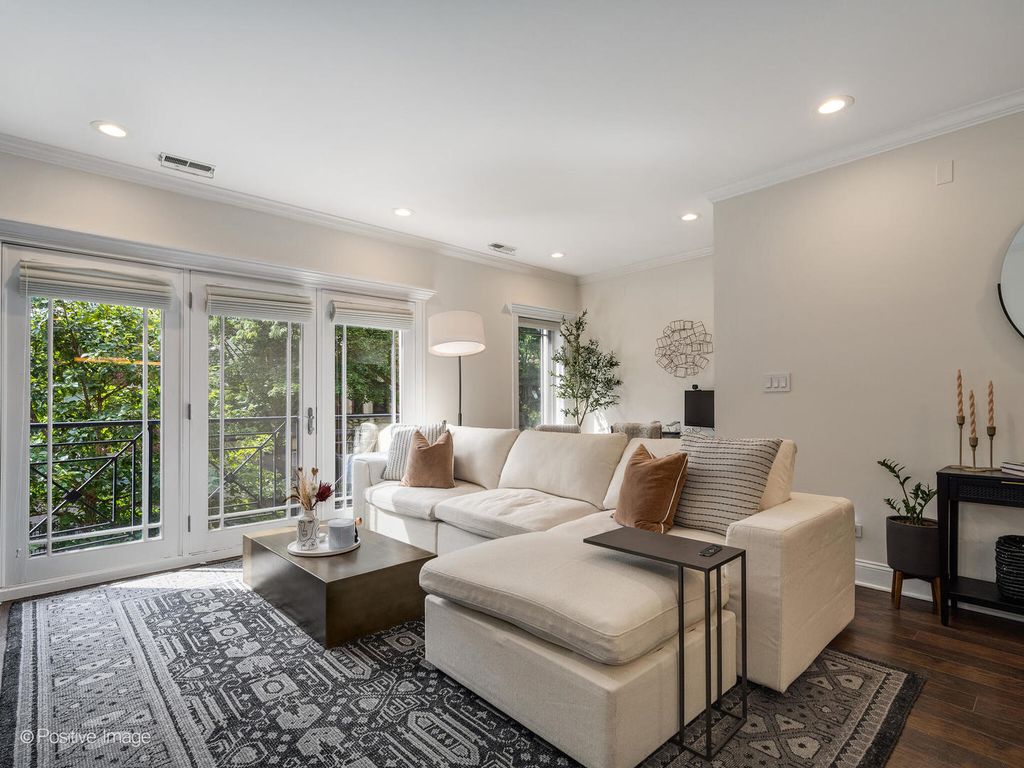 Located in the heart of Wrigleyville on a tree-lined, one-way street, this beautifully updated 2-bedroom, 2-bath home offers classic Chicago living, elevated with thoughtful transitional updates. Step inside and you'll notice rich hardwood floors, crown molding, and a stately fireplace anchoring the living space. Large glass doors open to a Juliet balcony and treetop views creating a sense of calm. The spacious floor plan easily accommodates a dining area plus a cozy nook for reading or a desk setup. The remodeled kitchen is the showpiece of the home, blending modern function with timeless design. Quartz countertops, custom millwork, high-end appliances, designer tile and hardware, and a walk-in pantry make it as practical as it is beautiful. The primary suite is a true retreat with a custom walk-in closet and spa bath featuring a steam shower, heated floors, whirlpool tub, and dual vanity. An adjacent back deck extends your living space outdoors, the perfect spot for morning coffee or winding down after a lively Cubs game. The second bedroom is generously sized and ideal as a guest room or home office. Parking and storage are included, and all four units are owner-occupied in a well-maintained association. Just steps from Wrigley Field, the Addison Red Line, and the energy of Clark Street, this home captures the essence of classic Chicago living in one of the city's most vibrant neighborhoods. Welcome home.