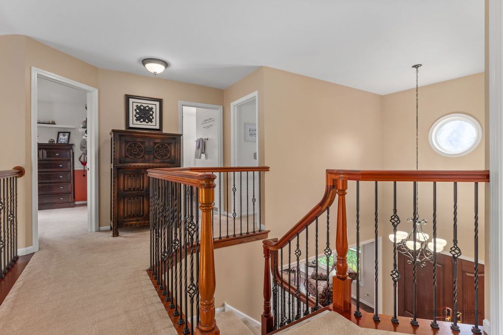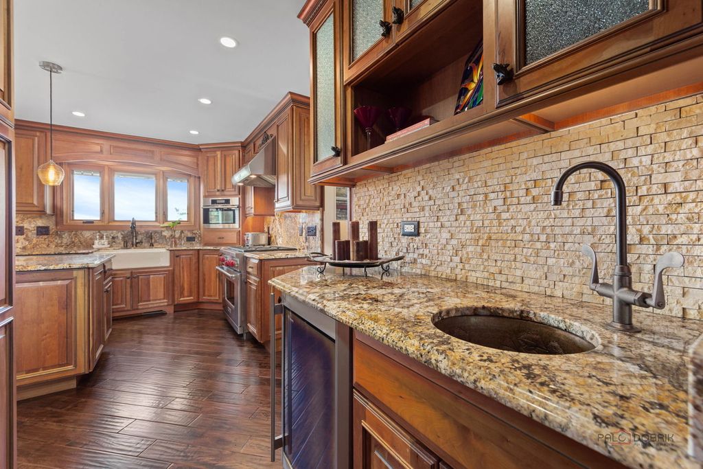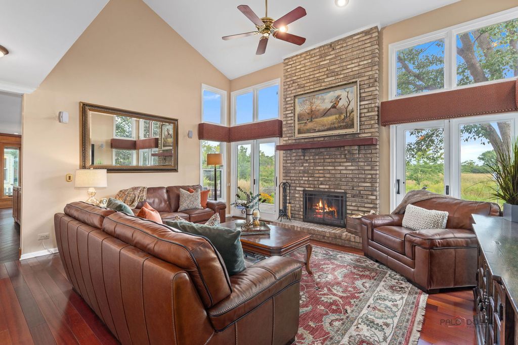 One-of-a-Kind Ambria Home Backing to Federally Protected Wetlands. Welcome to this rare and exceptional home in the highly sought-after Fields of Ambria community. This property stands out for two reasons: (1) it is one of the few homes situated on a premium lot backing directly to serene, federally protected wetlands, and (2) nearly every inch of the home has been meticulously updated with luxury finishes not found elsewhere in the neighborhood. Step inside the impressive two-story foyer, where the updated wood-and-iron staircase sets the tone for the home's refined style. Formal living and dining rooms flank the entry, offering elegant spaces for entertaining. The heart of the home is the fully renovated and expanded chef's kitchen-an absolute dream featuring professional-grade appliances, custom cabinetry with every high-end detail and a light-filled breakfast room surrounded by floor-to-ceiling Pella bow windows with integrated blinds, showcasing breathtaking views of the wetlands. The oversized family room, with its 2-story brick wood-burning fireplace and dual Pella sliders, brings the outdoors in with a stunning wall of windows. A private first-floor office and a practical mudroom/laundry room complete the main level. Upstairs, retreat to the luxurious primary suite. The spa-inspired bath features a heated jetted tub, walk-in shower with rainfall shower head and five body sprays, dual vanities, and recessed medicine cabinets hidden behind custom mirrors. The updated hall bath includes the same recessed medicine cabinets. The finished basement provides additional space for relaxation and recreation, with a media room, wall of storage closets, rec area, and additional crawl-space storage in the utility room. Outside is just as impressive-an oversized stone paver patio overlooks the fully fenced backyard and tranquil wetlands, framed by professional landscape garden with tall prairie grasses and perennials thoughtfully blend into the natural beauty and privacy of the wetlands. Enjoy the ever-changing views of wildlife in your own backyard oasis. Fields of Ambria offers unmatched convenience with direct access to the park district water park (lazy river, pool, spray park), rec center, sled hill, ball fields, tennis courts, and playground via neighborhood walking path. Nearby you'll also find Fremont Library, top-rated schools, shopping, and three Metra stations. Just minutes from downtown Mundelein, Grayslake, and Libertyville, with additional options for dining, shopping, and community events. Families will appreciate Mundelein High School's innovative STEM curriculum with newer laboratory classrooms. The newly approved referendum for expansion/renovation of school facilities will begin construction shortly(see school website for details). This extraordinary home offers a lifestyle of luxury, comfort, and natural beauty-truly unlike any other. NOTE - Dining Room chandelier & workbench and cabinets in garage are excluded from sale. Ask your agent for a complete list of updates and features. HOA is voluntary $100/mo.