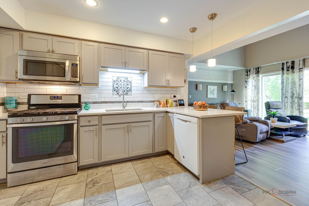 Exceptional Space & Style in This Updated Townhome. Prepare to be impressed! This spacious and stylish townhome offers an incredible layout rarely found in the area. With 3 large bedrooms, 2.1 beautifully updated bathrooms, and a loft with a skylight that opens, this home is designed for both comfort and versatility. The renovated kitchen is a showstopper-featuring light gray cabinetry, white quartz countertops, a white subway tile backsplash with designer inlays, and durable porcelain tile floors. It opens directly to the cozy family room with vaulted ceilings and a modern floor-to-ceiling tile fireplace. Step through the newer sliding glass doors to enjoy the private brick paver patio and lush landscaping-perfect for relaxing or entertaining guests. Need more space? The full finished basement includes new upscale carpeting and a bonus room with a closet-ideal for a craft room, guest space, or 4th bedroom alternative. Great association with low HOA that has replaced the roof, driveways, privacy fence, cement walkway, new mailboxes and freshly painted siding a short time ago. Close to the main beach and golf course. This home truly offers the perfect blend of modern updates and generous living space-all in a townhome setting. Don't miss out! Owner is a licensed broker