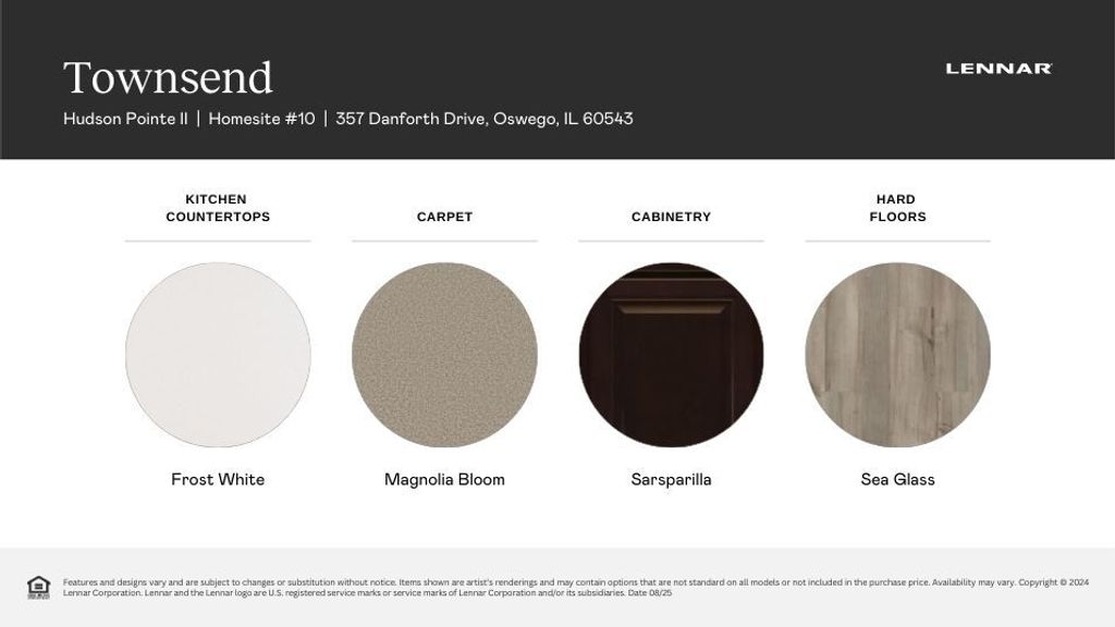 SPECIAL FINANCING AVAILABLE!! READY FOR SEPTEMBER DELIVERY!! Homesite #0010 Take in the beauty of the Townsend, a home where sophisticated design and everyday comfort come together seamlessly. This thoughtfully crafted residence features four bedrooms, two full bathrooms, a powder room, and a spacious living room, providing ample space for both relaxation and entertainment. The first floor boasts an airy, open-concept layout, with luxury vinyl plank flooring unifying the kitchen, dining area, and family room. At the heart of the home, the chef-inspired kitchen impresses with sleek quartz countertops, premium stainless-steel appliances, 42"" cabinetry in your choice of finishes, and a large center island perfect for meal prep and gatherings. Upstairs, the owner's suite is a paradise, offering a spacious walk-in closet and a spa-like en-suite bathroom with double sinks and a deluxe shower, creating the perfect space for unwinding. Three additional bedrooms and a full bathroom are located nearby, while a second-floor laundry room adds convenience to everyday living. With its smart design and premium finishes, the Townsend offers a lifestyle that blends comfort, style, and functionality, perfectly suited for the way you live today. Exterior will be Driftwood color vinyl siding with Sand Dunes color brick. (pic for reference ONLY) *Photos are not this actual home* Welcome to Hudson Pointe II, a beautifully designed master-planned community offering brand-new homes in the heart of Oswego, Illinois. Perfectly blending comfort, convenience, and natural beauty, this neighborhood is ideal for families and individuals seeking a balanced lifestyle. Right within the community, residents can enjoy a well-maintained park for leisurely play and gatherings, as well as a serene pond that enhances the peaceful atmosphere of Hudson Pointe II. Just 10 minutes from the Naperville Route 59 corridor, Hudson Pointe II places premier shopping, dining, and entertainment within easy reach. Access top destinations like Whole Foods, Amazon Fresh Market, LA Fitness, and Costco, along with a variety of local restaurants and entertainment spots. Families will appreciate the top-rated Oswego School District 308, with students attending Southbury Elementary, Murphy Junior High, and Oswego East High School-all conveniently located within a 10-minute drive. Outdoor enthusiasts will love the close proximity to Wolf's Crossing Community Park, offering an array of recreational features including playgrounds, an outdoor fitness area, a splash pad, and more-perfect for year-round family fun. At Hudson Pointe II, you're not just buying a home-you're joining a thoughtfully planned community where modern living meets natural charm and everyday convenience.