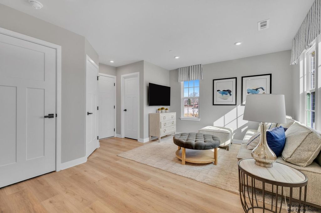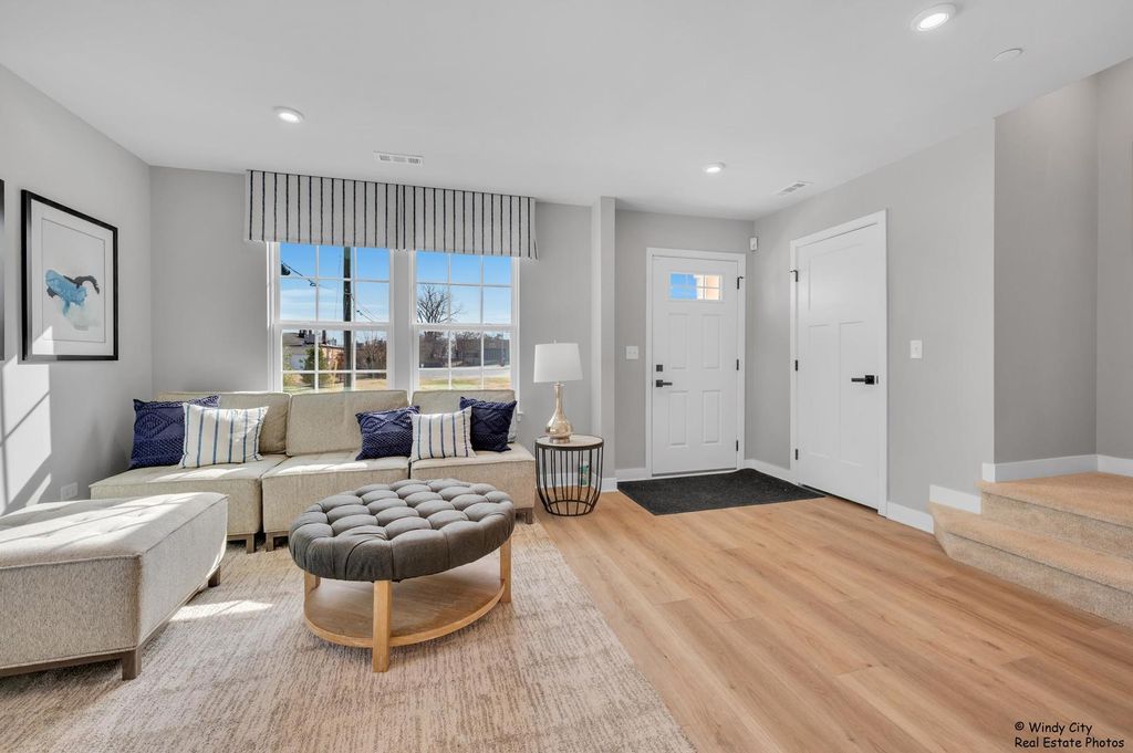 Come see this new construction former model unit and discover the perfect blend of convenience and luxury in this stunning end-unit, 2-car garage townhome in Wheeling! The Mozart offers all the benefits of townhome living with the added features of a single-family home. Step into the spacious first floor recreation room ideal for additional living space or entertaining guests. - the level also offers garage access. On the second floor, an expansive kitchen with a large island seamlessly flows into the bright and airy living room, creating the perfect space for relaxation or hosting gatherings. The kitchen is a chef's dream, featuring upgraded cabinets, sleek stainless steel appliances, and gorgeous quartz countertops. A convenient powder room is also located on this level. Upstairs, you'll find two spacious bedrooms with generous closet space, a full hall bath, and a luxurious owner's suite. The owner's bedroom boasts a huge walk-in closet, while the private owner's bath offers a spa-like experience with a dual vanity and a spacious 5' shower. Located in the desirable London Crossing community, this townhome offers easy access to major roads and is just 1 mile from the Metra, making commuting a breeze. Don't miss your chance to own this low-maintenance home in a prime location!