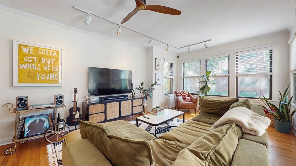 Looking for a condo that feels like a home with a full unfinished basement almost the same size as the finished level above? Or looking for a condo that has it's own private entrance lower level for an entire SEPARATE living space downstairs like a 2 flat? Or just want an insane unfinished lower level for a gym, art studio, flexible living space or even possible DUPLEX DOWN? Then come see this MOVE-IN READY unique 2bed/2bath in a picturesque professionally landscaped ANDERSONVILLE courtyard building a block off Clark and 5 mins from the new Metra station! Beautiful EXTRA WIDE interior blends classic vintage charm with a modern split bedroom floor plan for a hard to find NON COOKIE CUTTER layout! Spacious, SUNNY south/east facing living room has a wall of windows that flood the space with light all year and opens onto an adorable covered front balcony ready for your grill, plants and cafe table. Chic seller freshly painted the entire unit and added a touch of contemporary luxury with a Gucci wallpaper accent wall and new modern fixture in kitchen. Classic white eat-in kitchen with granite countertops and SS appliances + tasteful backsplash. IDEAL HOME OFFICE space tucked away for your work from home setup right off kitchen! Super bright main bedroom with wall of east facing windows has ample closet space. Guest bedroom has it's own en-suite bath and overlooks lovely common green space. Hardwood floors throughout. Custom closets in both bedrooms and TONS OF STORAGE in basement! In-unit washer dryer (2023). Walk to Clark St.'s cafes, shops and dining. Or ride your bike or jog along the lake, Hollywood Beach and the lakefront trails! One deeded gated parking space included! Well managed, established condo assoc. with 100K in reserves!